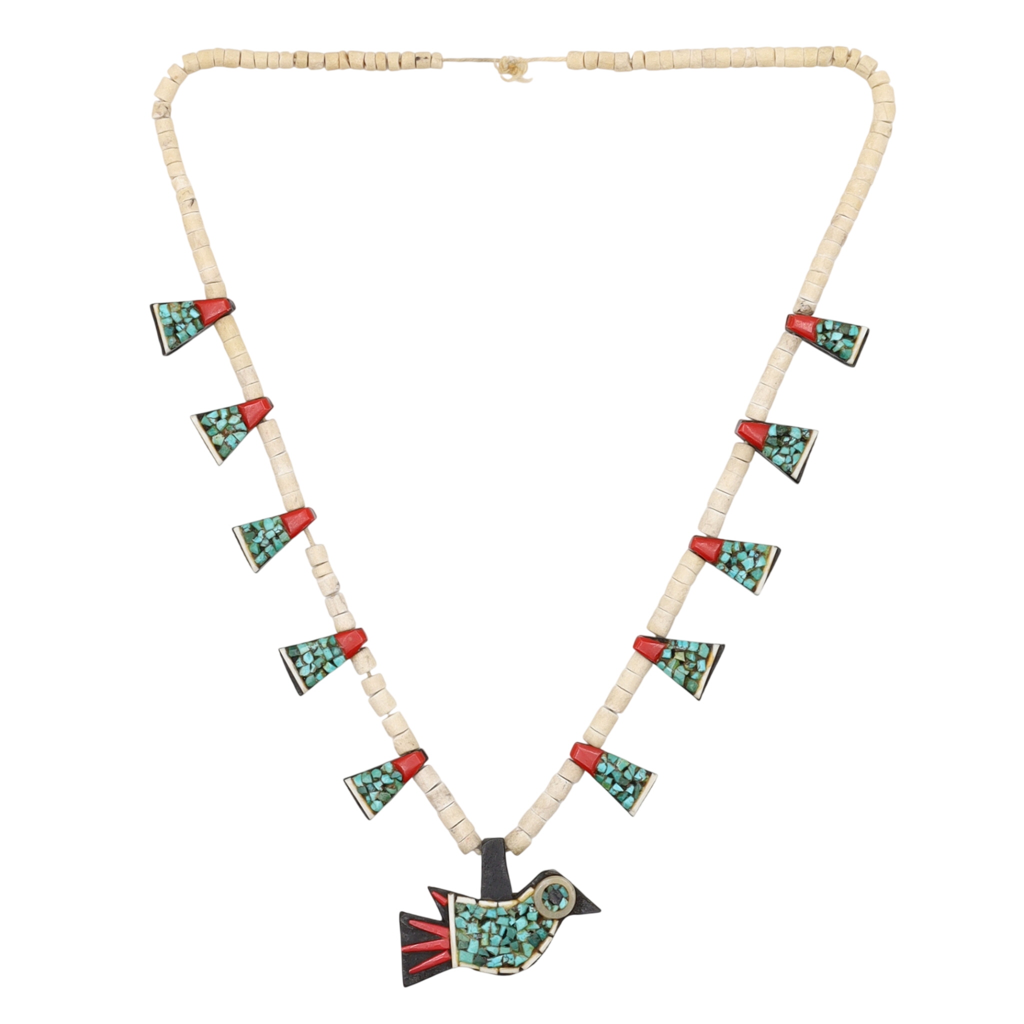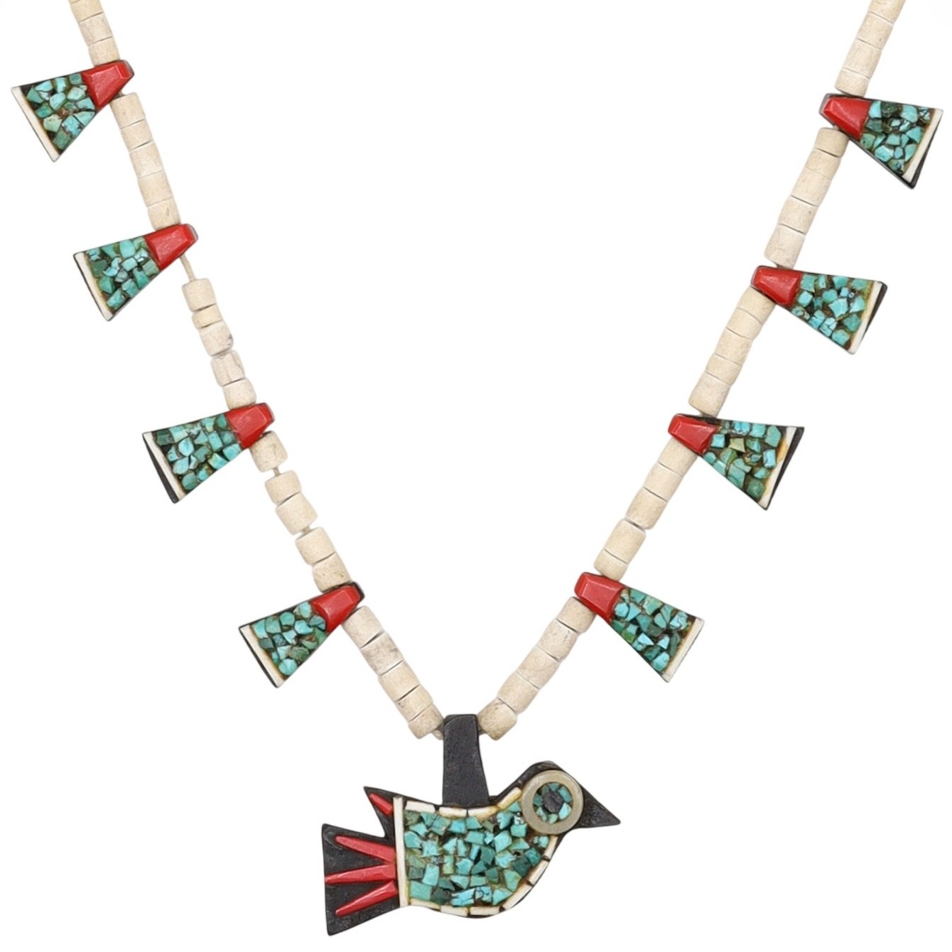 Vintage Santo Domingo Crushed Turquoise Coral Bird Necklace