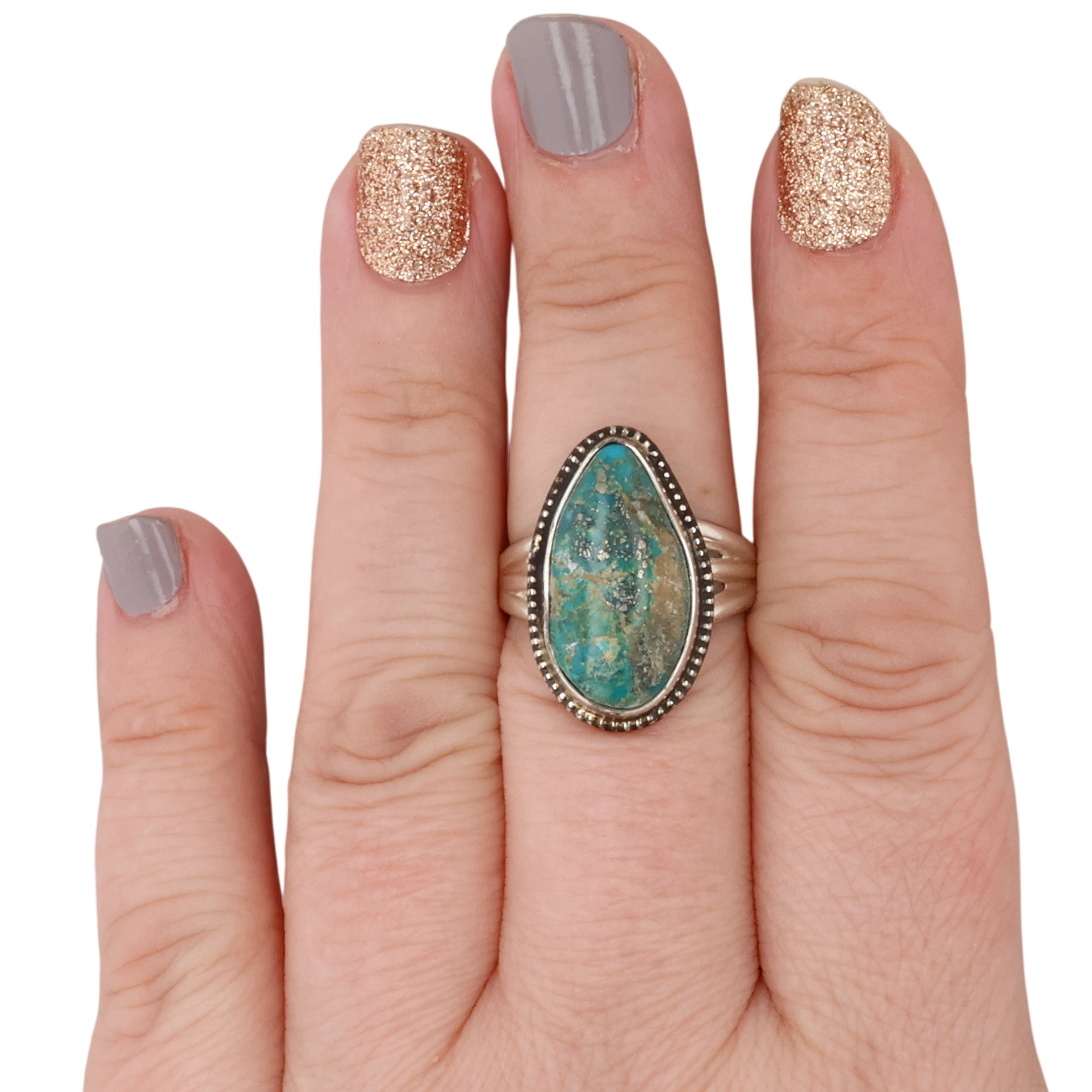 Signed Navajo Sterling Turquoise Ring Sz 8.25