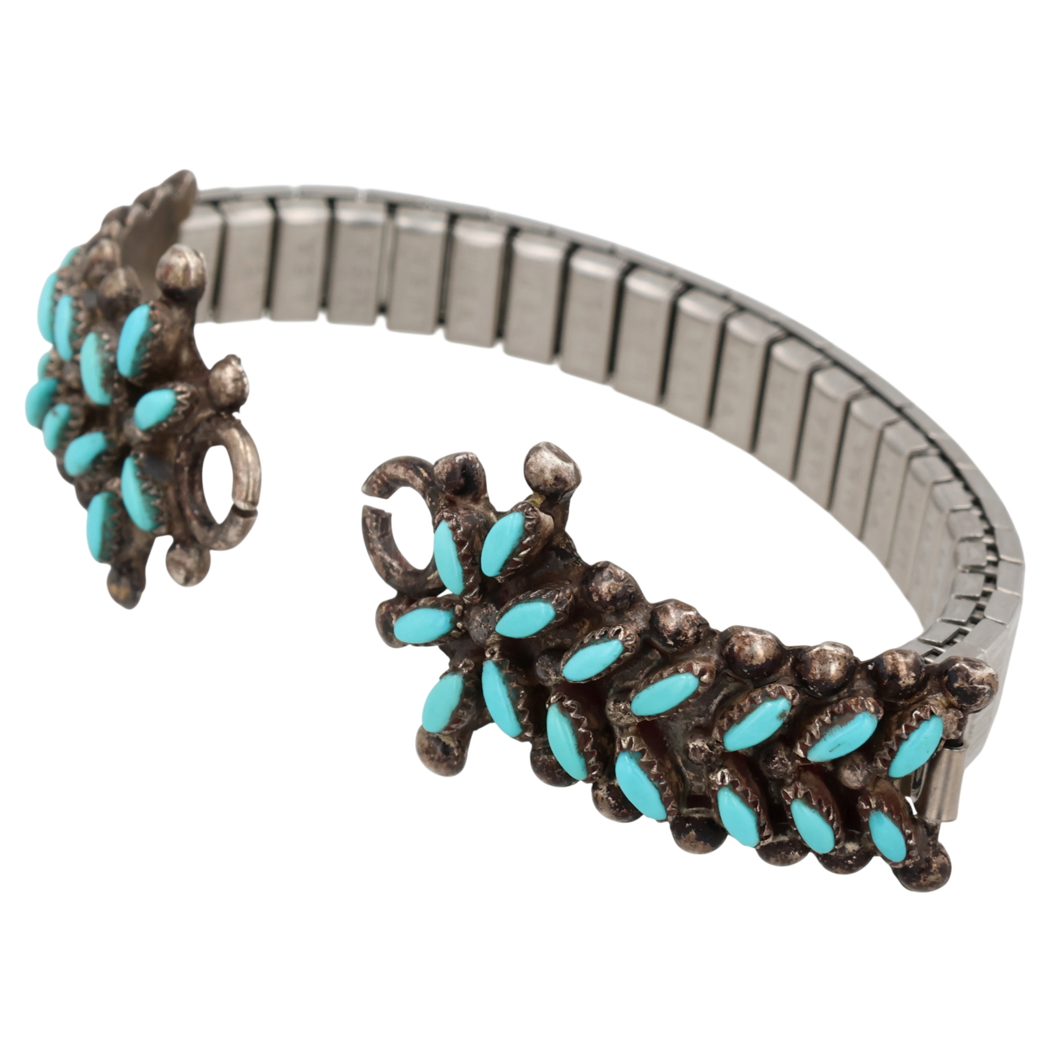 Navajo Sterling Turquoise Needlepoint Watch Nibs, 10.5g (weighed with band)
