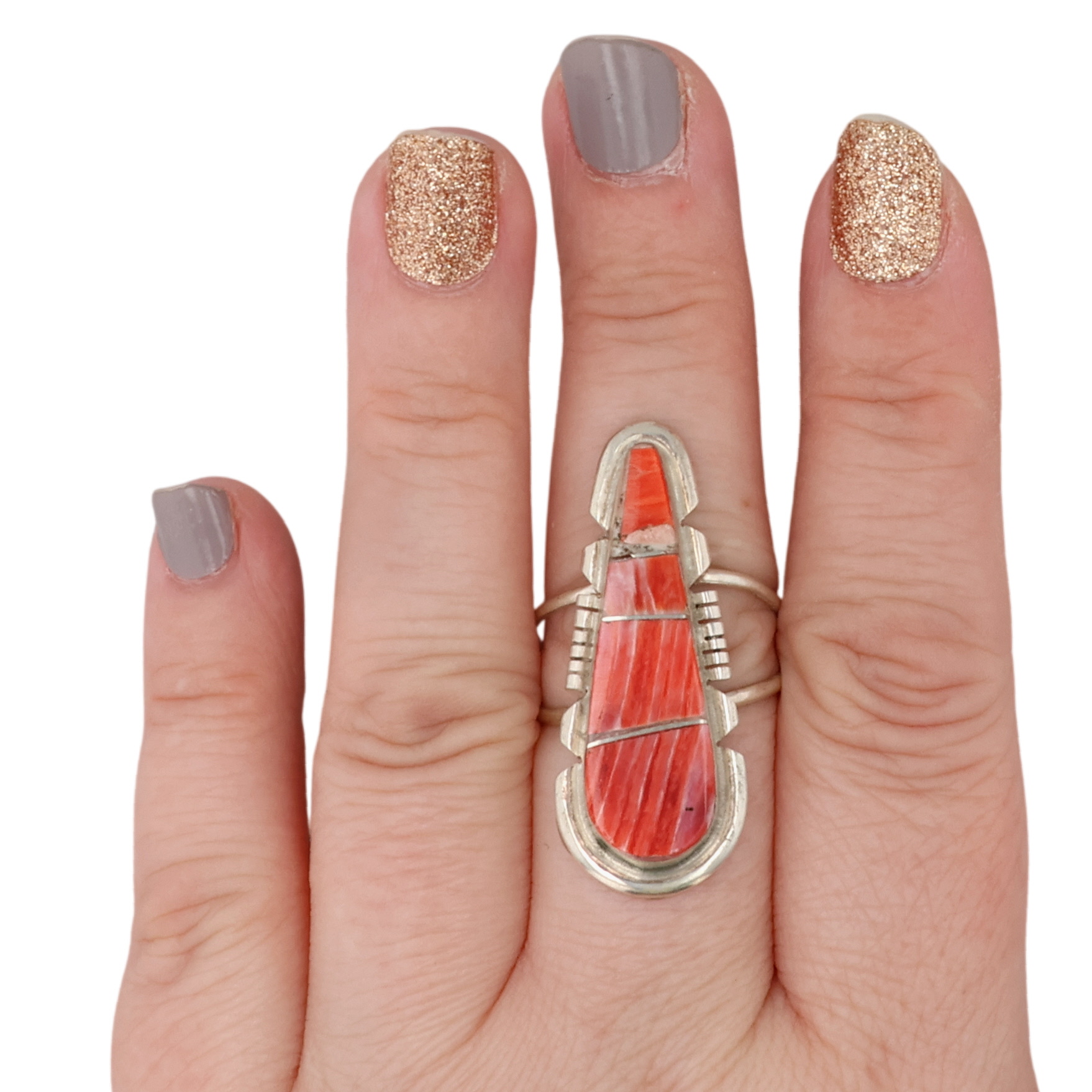 Brandon Etsitty Navajo Sterling Spiny Oyster Ring 8g Sz 10.75