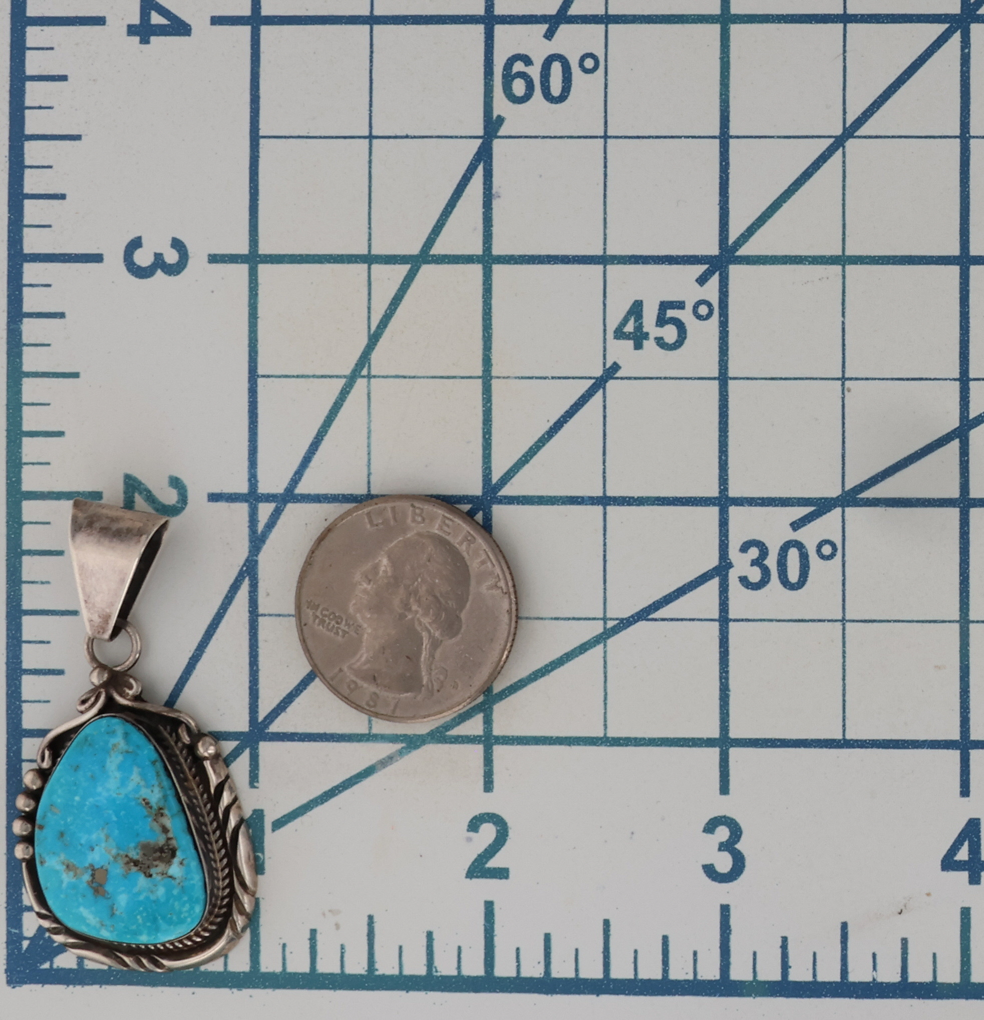 Signed DA Navajo Sterling Turquoise Pendant 10.5g
