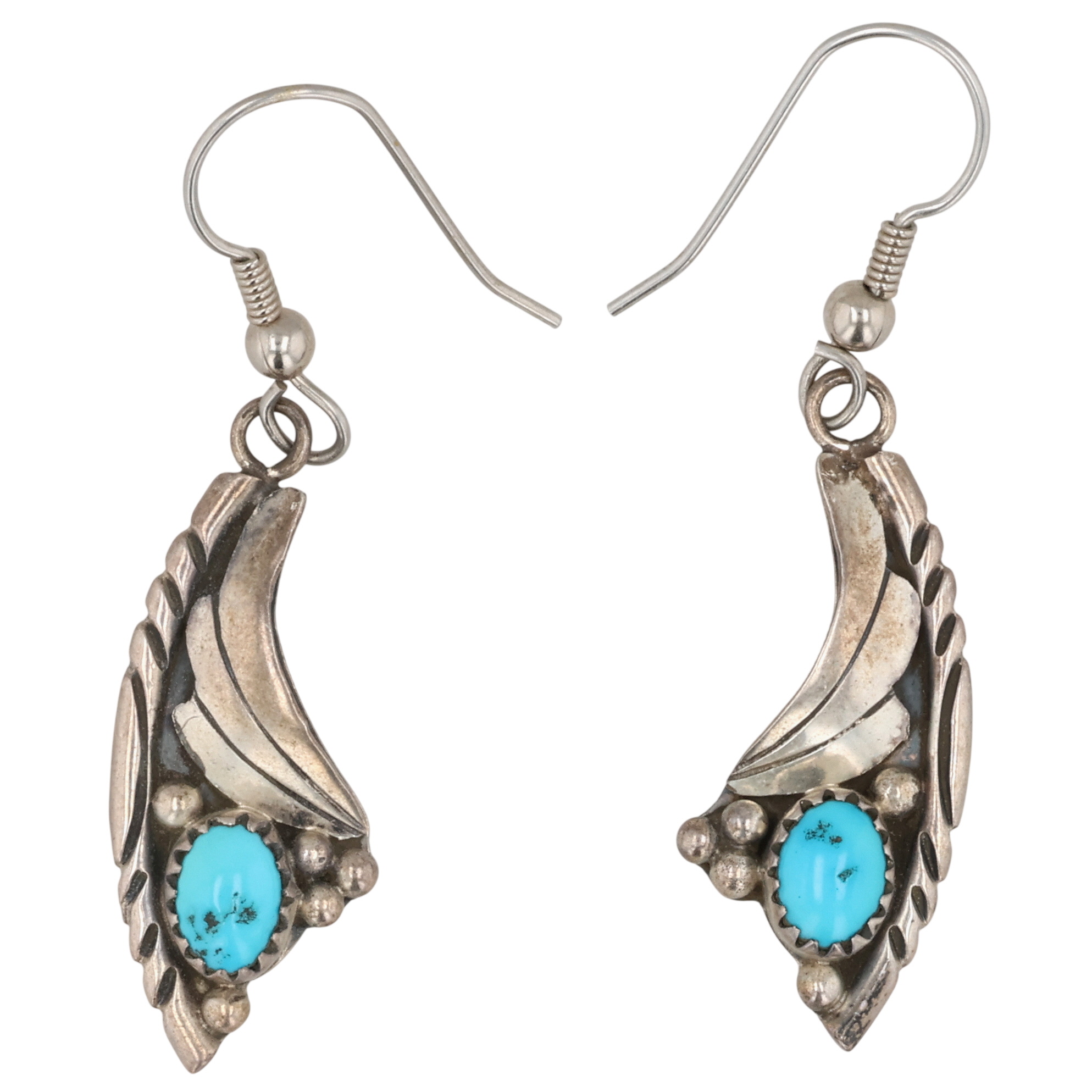 Navajo Sterling Turquoise Leaf Earrings 5g