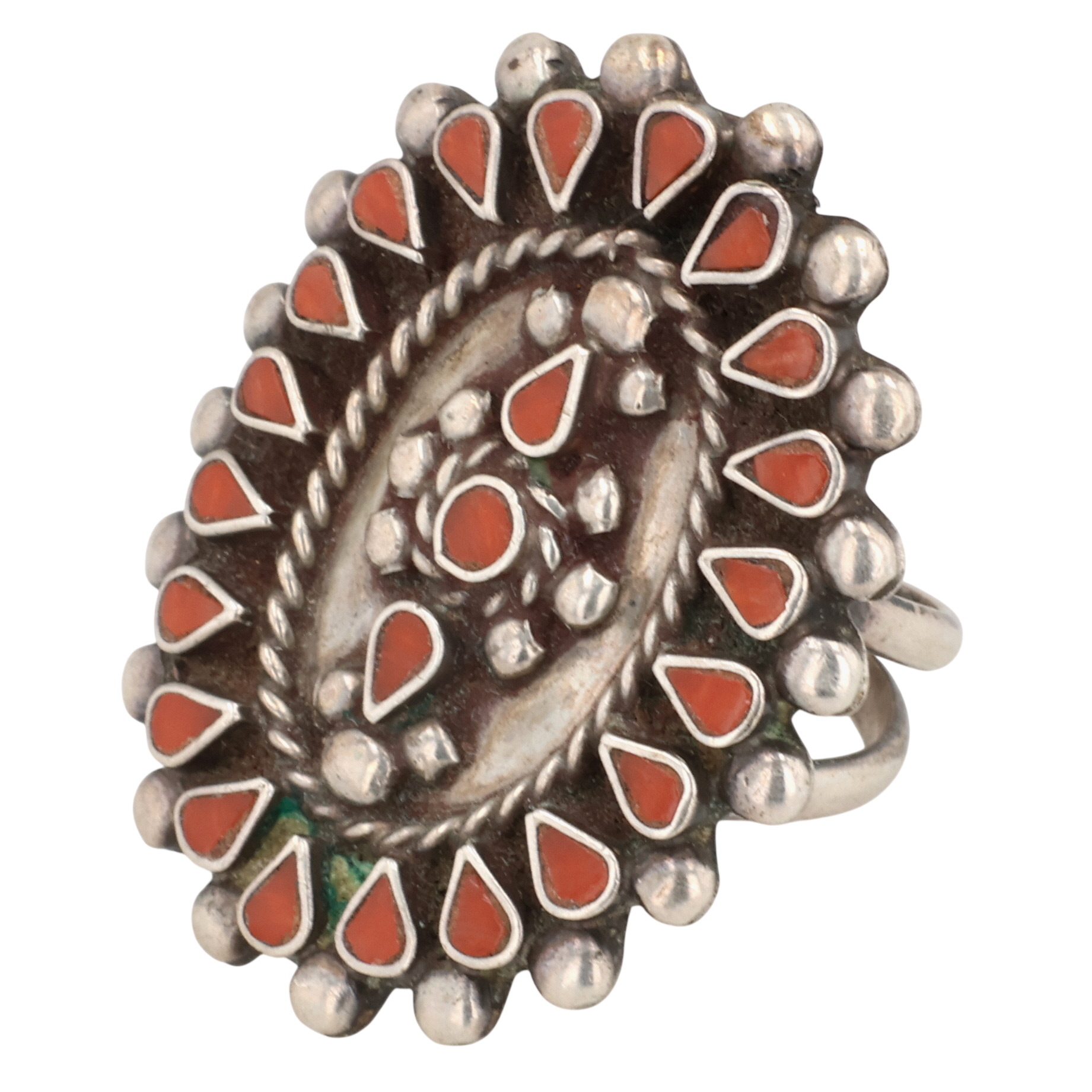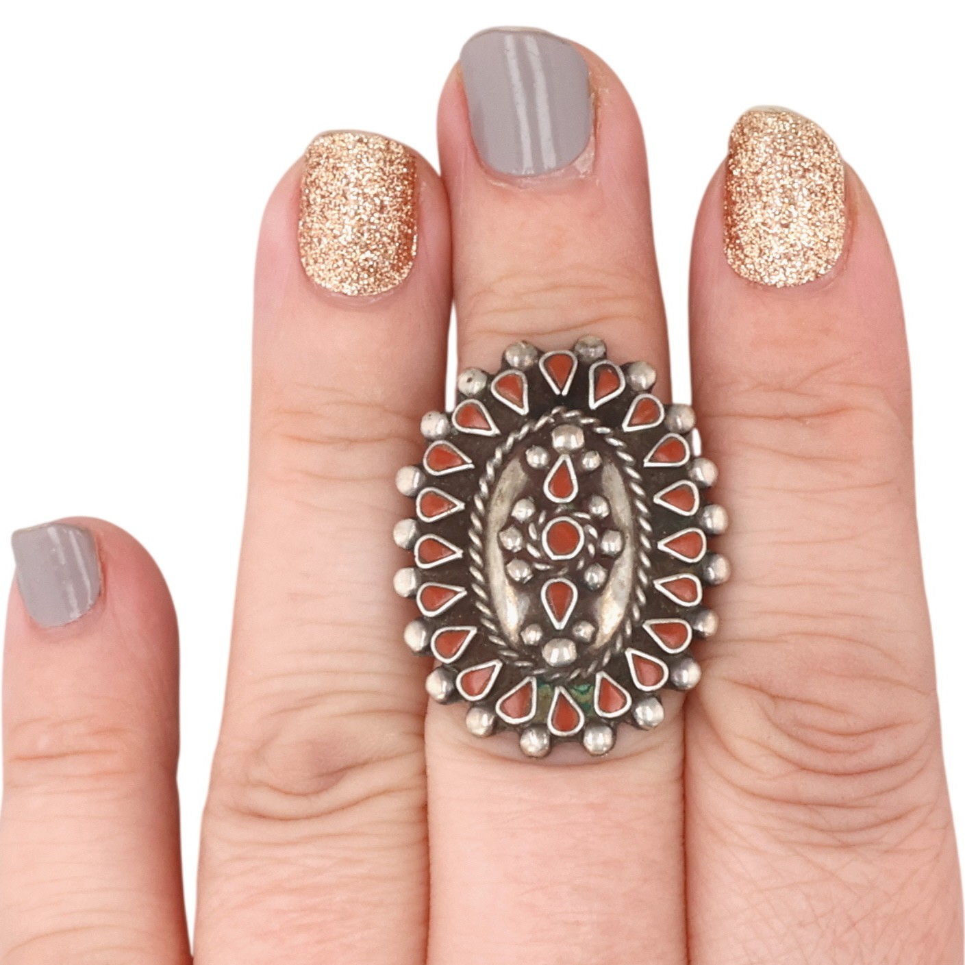 Navajo Sterling Coral Ring 8g Sz 7.25