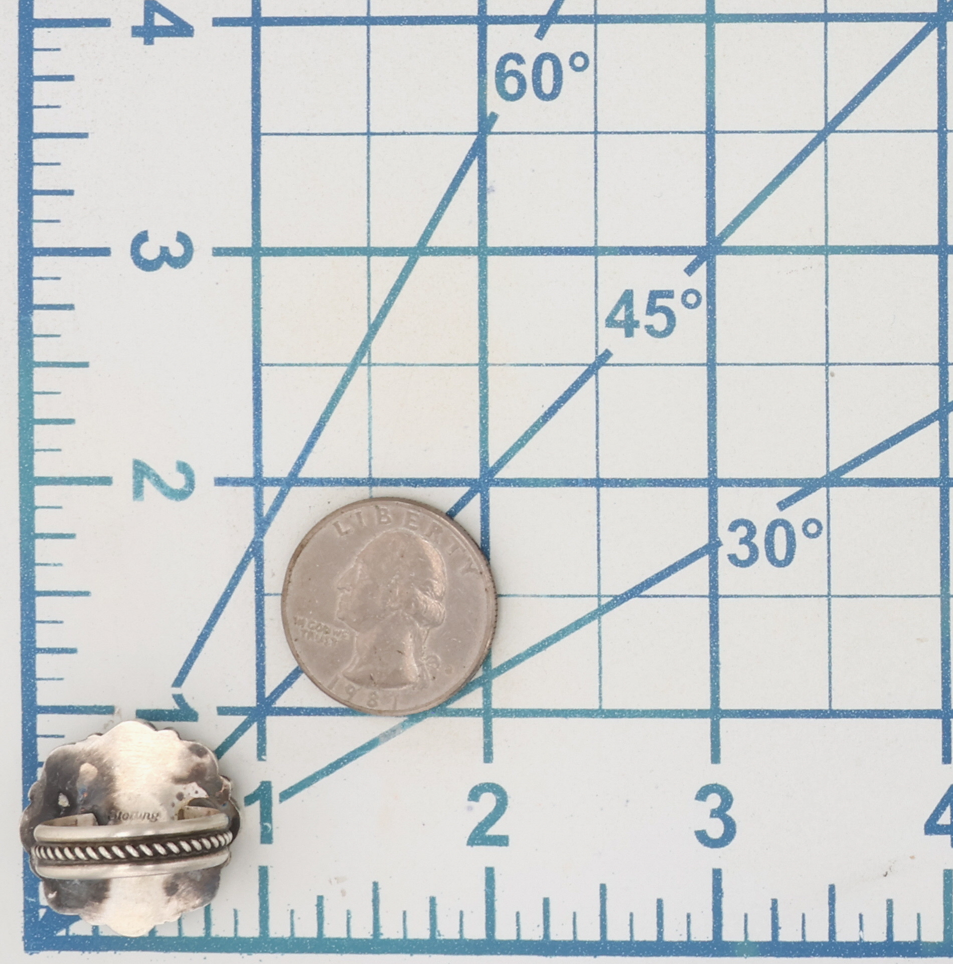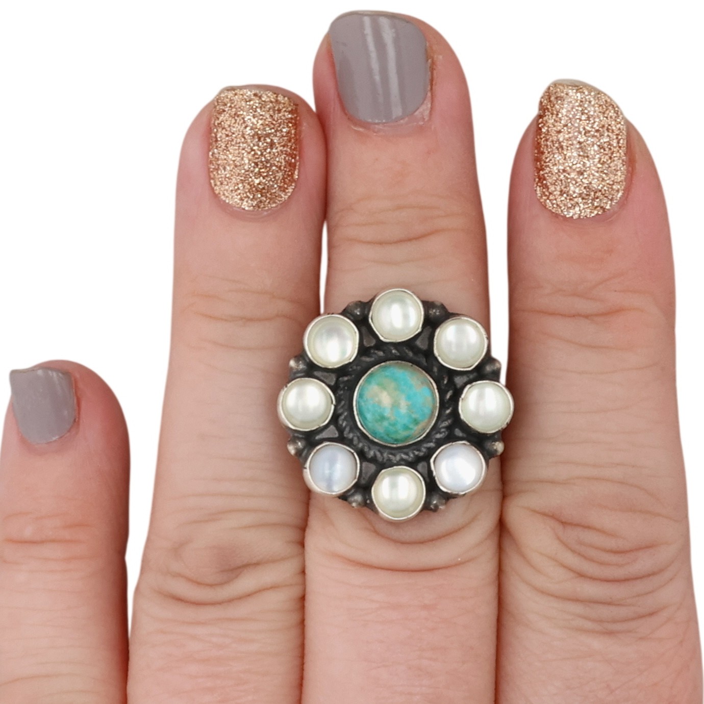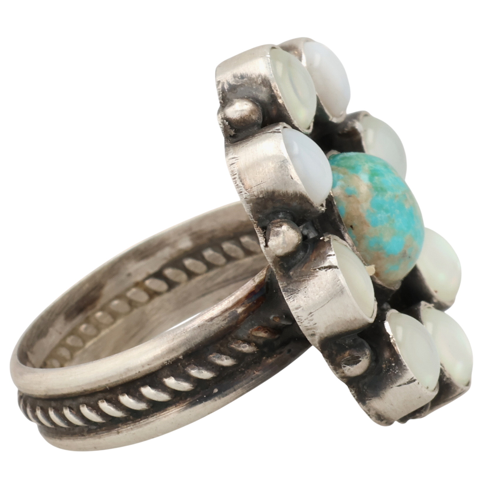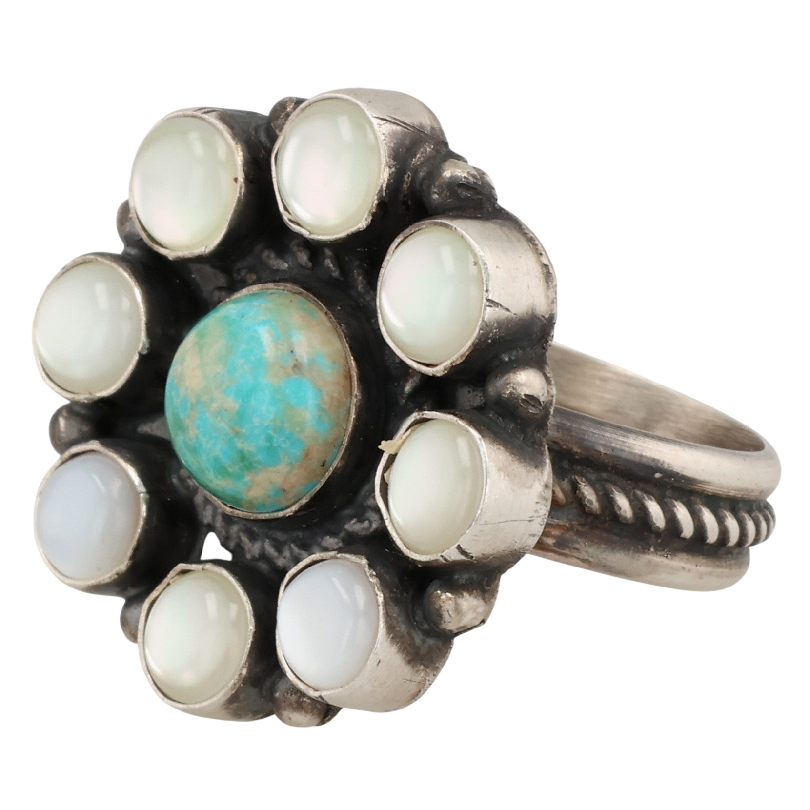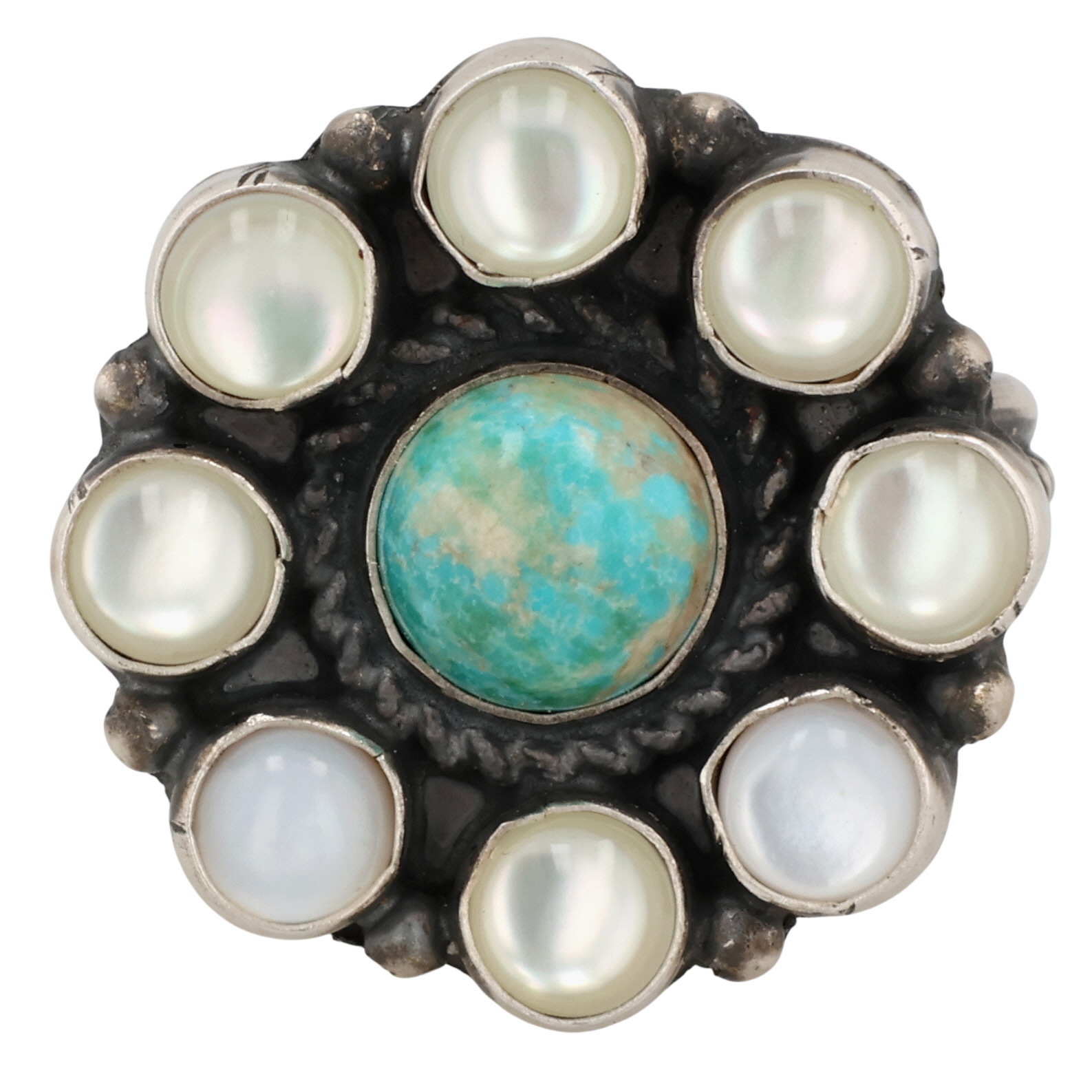 Devin Brown Navajo Sterling Turquoise Mother of Pearl Adjustable Ring 7g Sz 7.25
