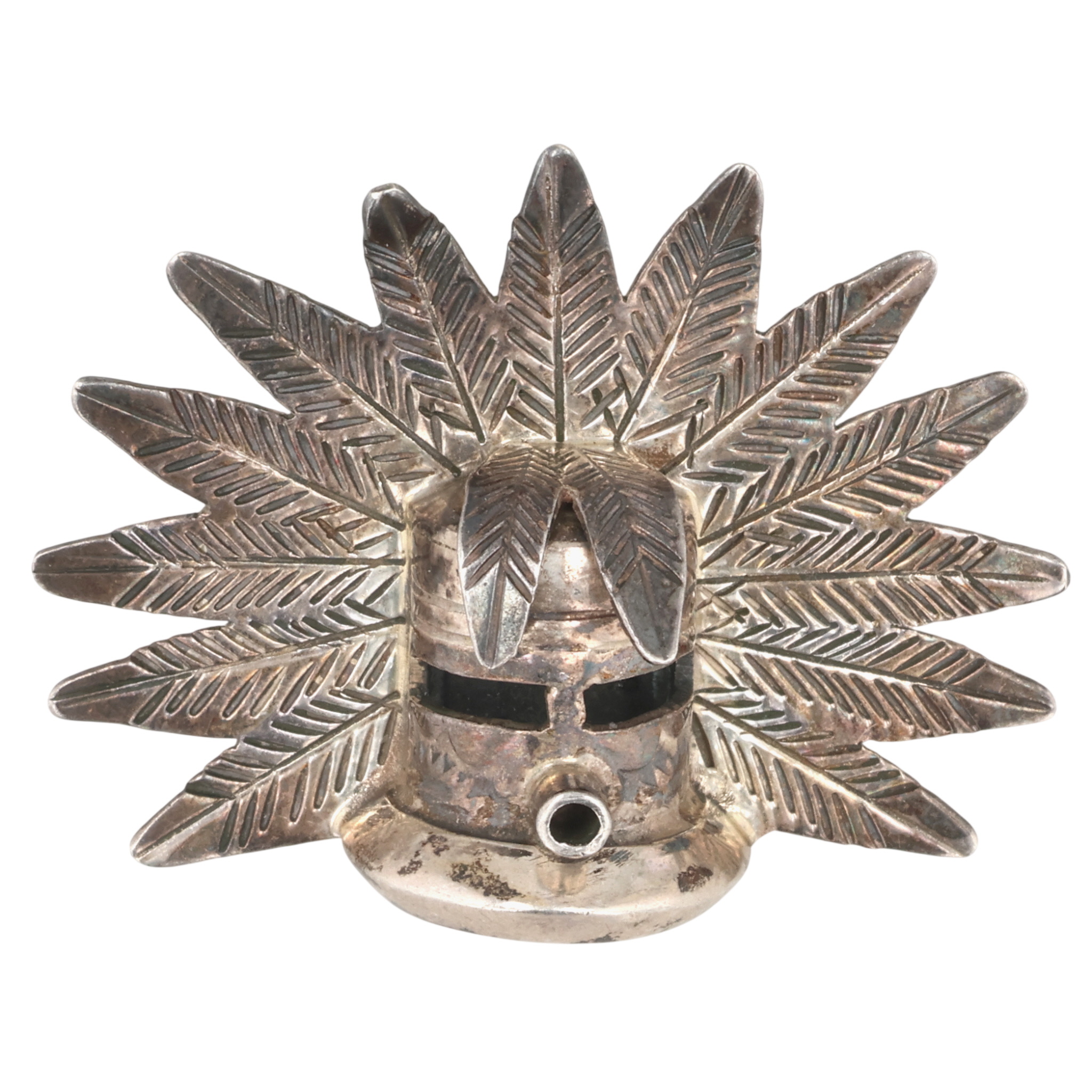 Signed WB Navajo Sterling Kachina Head Brooch Pendant 10.5g