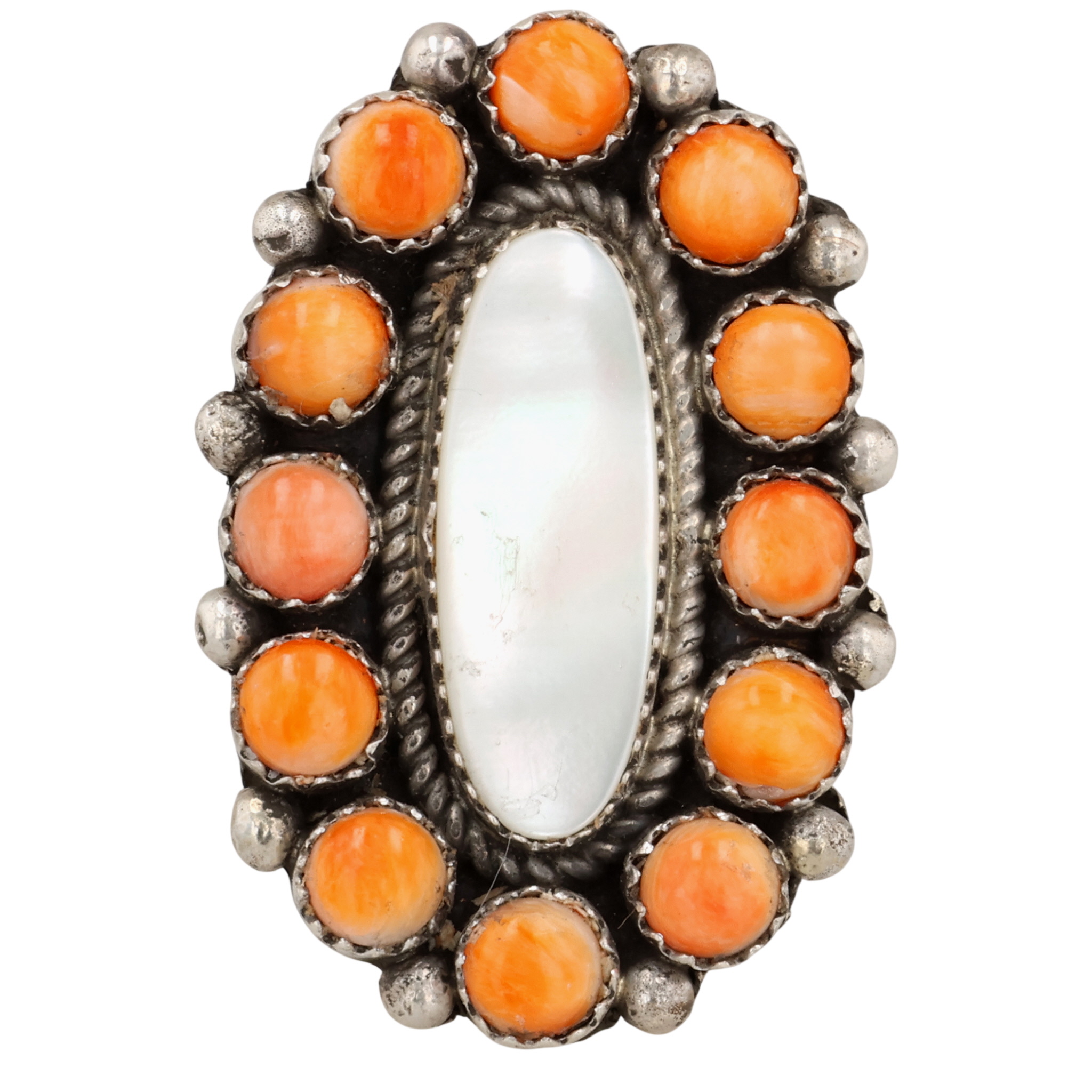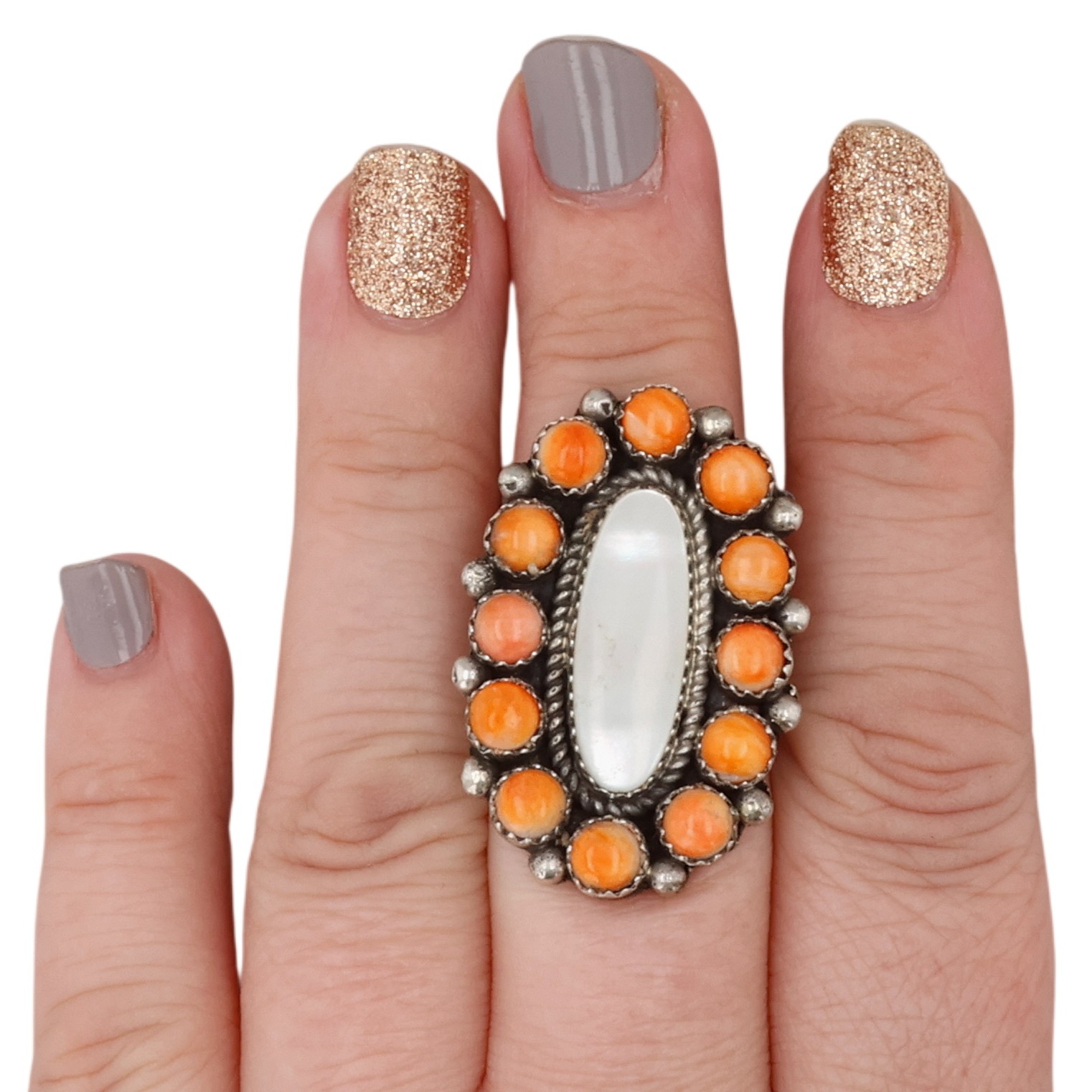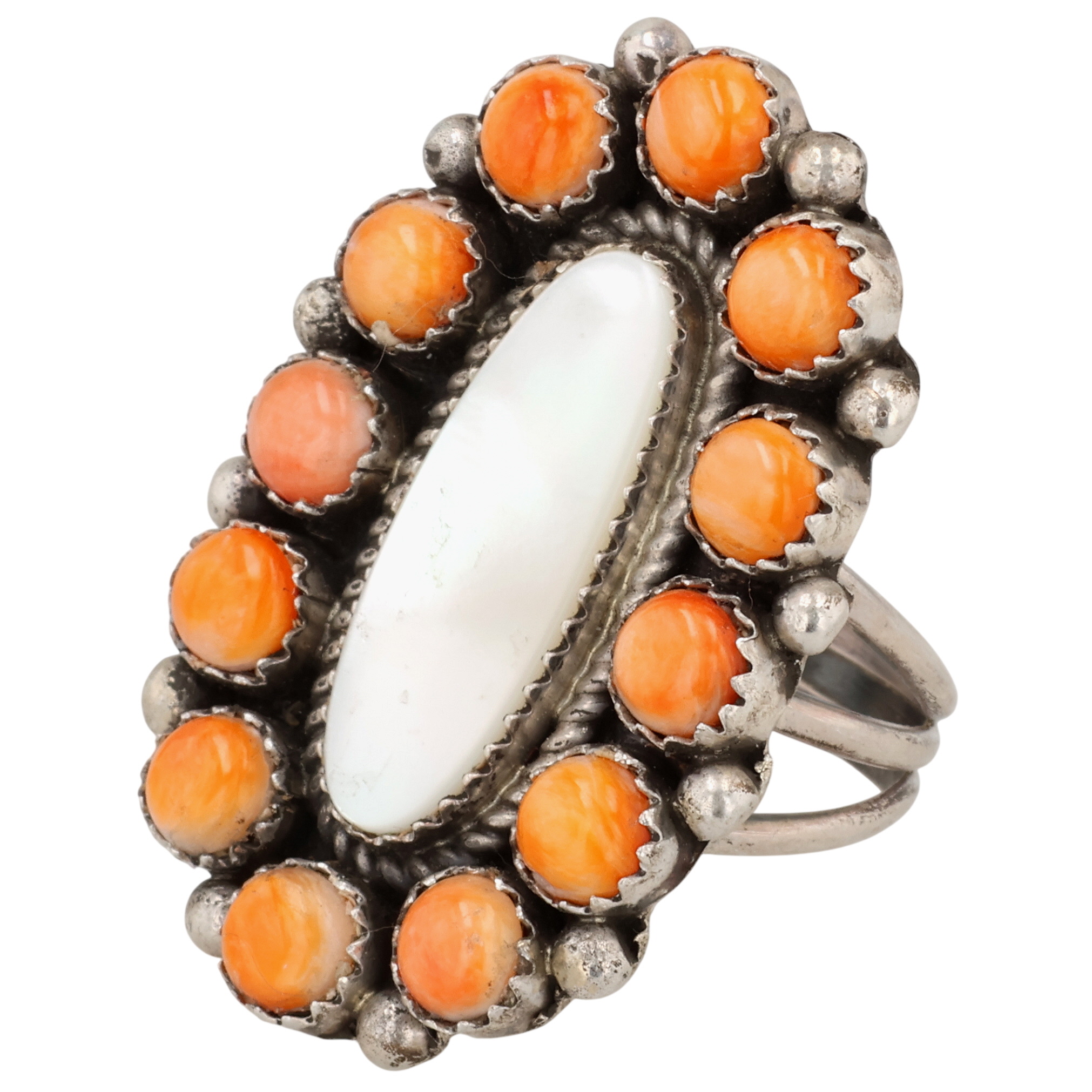Ella Spencer Navajo Sterling Spiny Oyster Mother of Pearl Ring 10g Sz 8.5