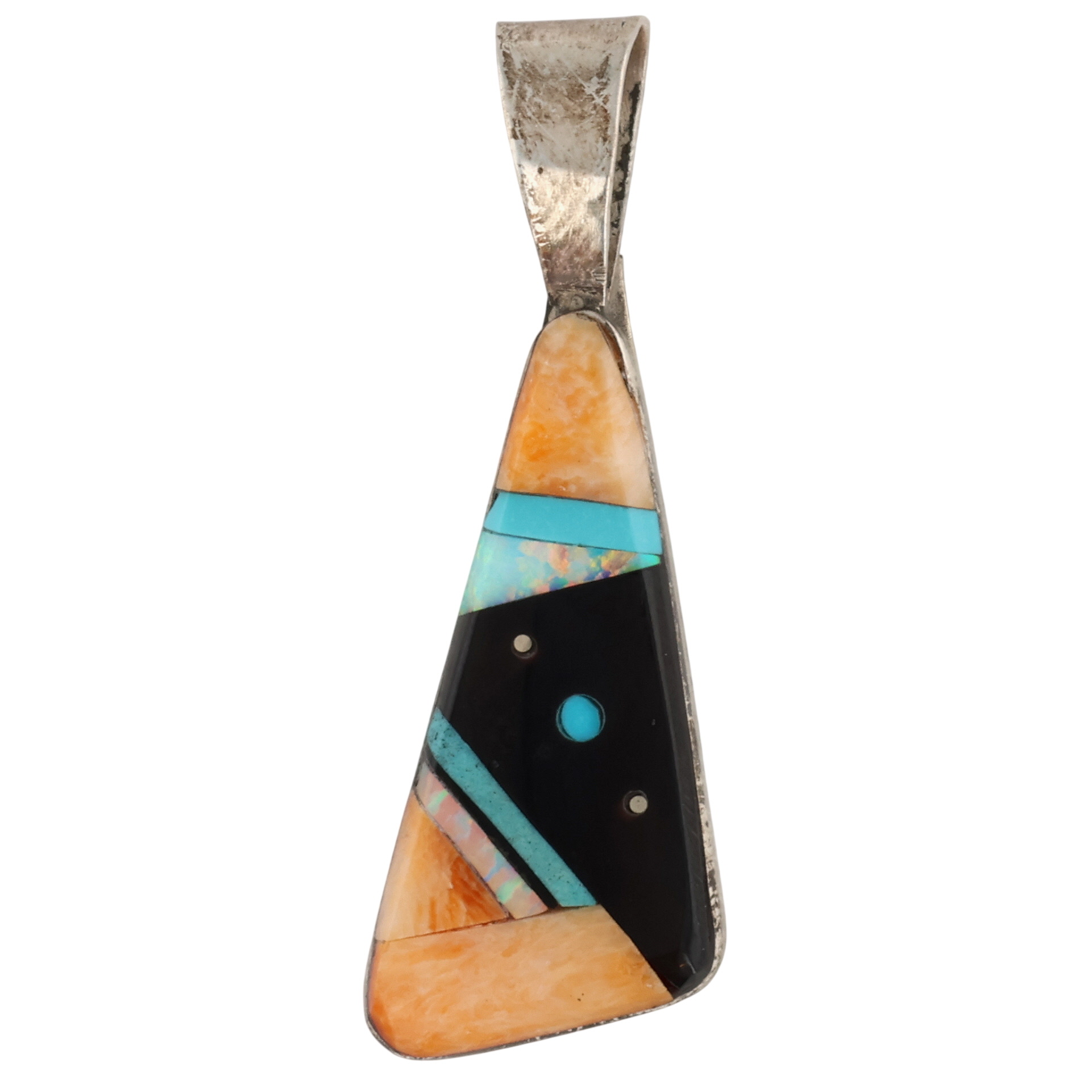 Germane Smith Navajo Sterling Turquoise Spiny Oyster Onyx Opal Pendant 3g