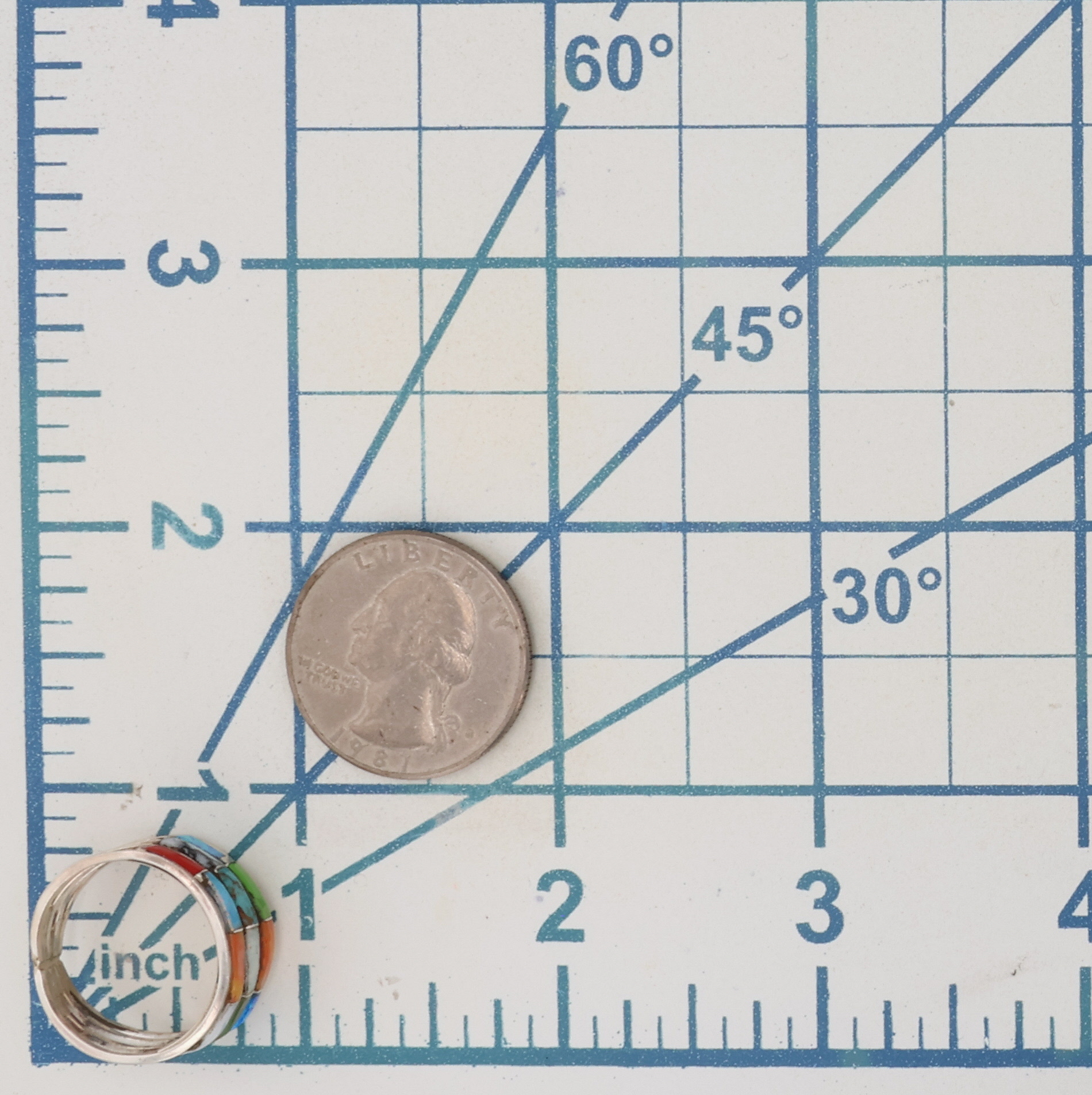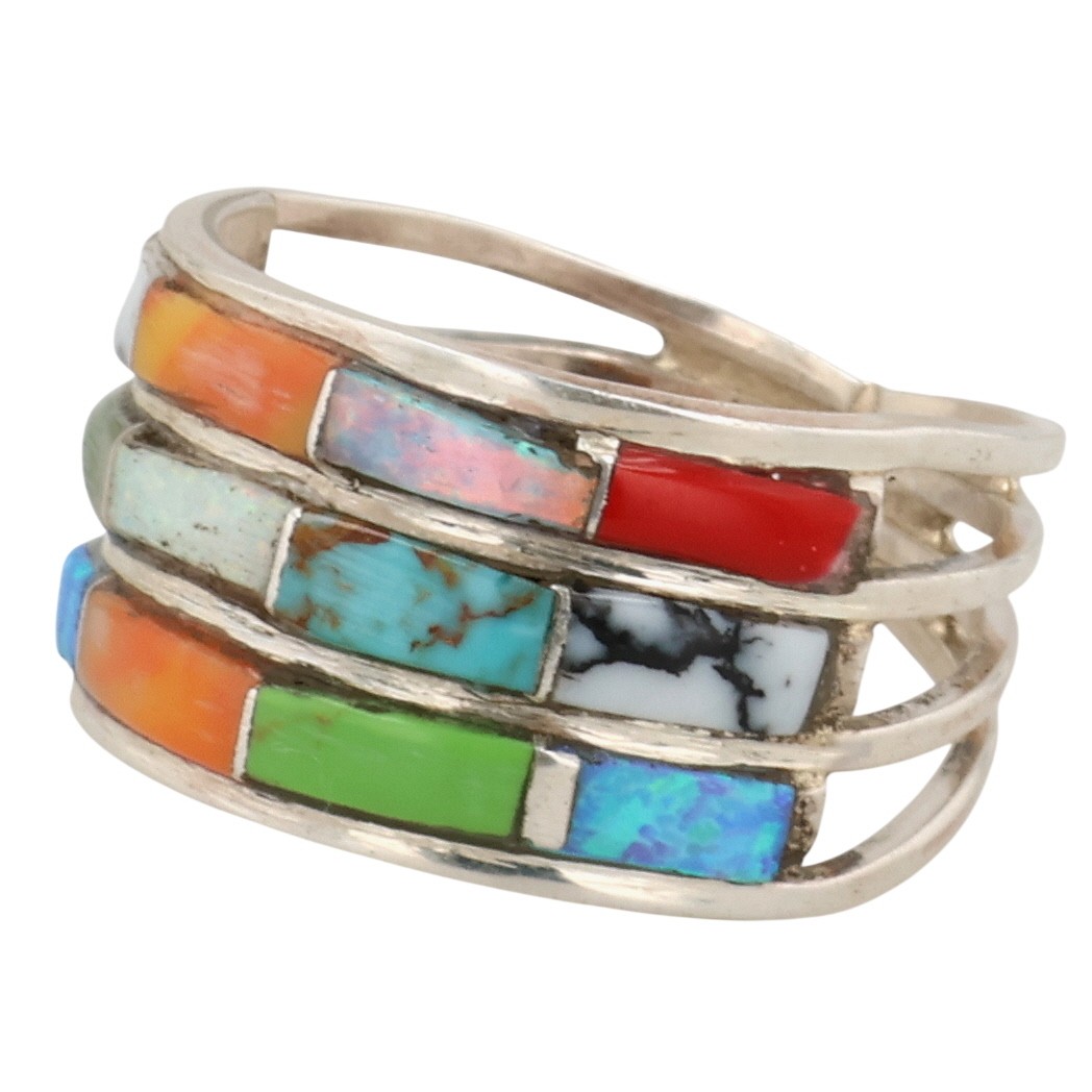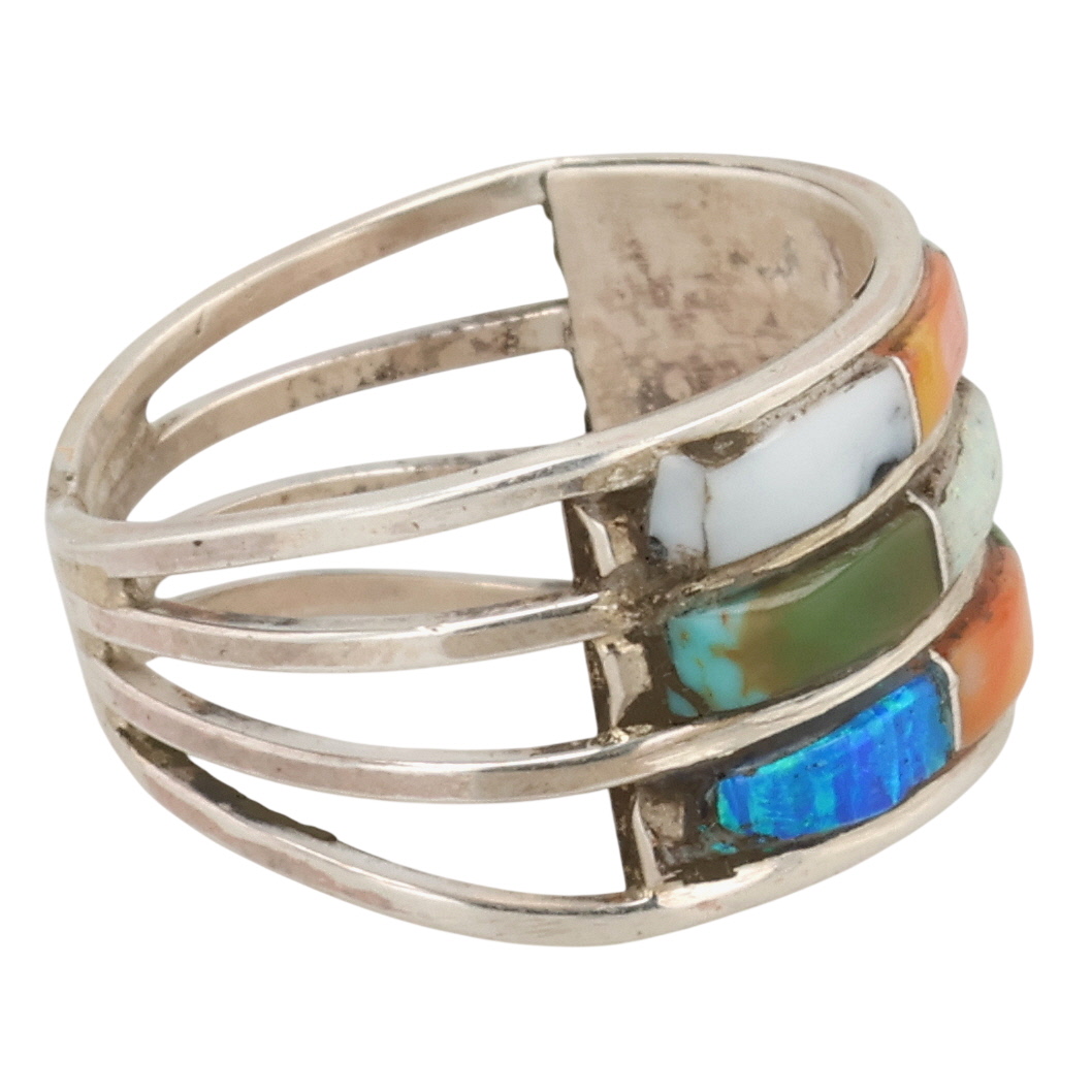 Debbie Livingston Navajo Sterling Coral, Opal, Turquoise, Spiny Oyster Ring 3.5g Sz 7.5