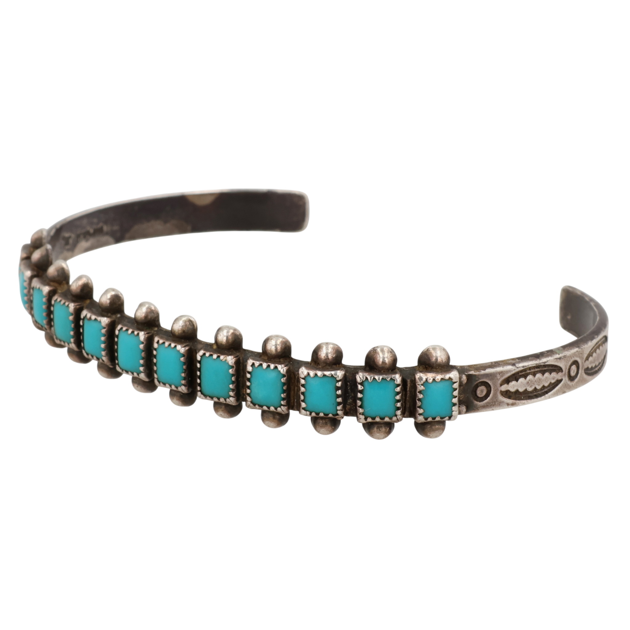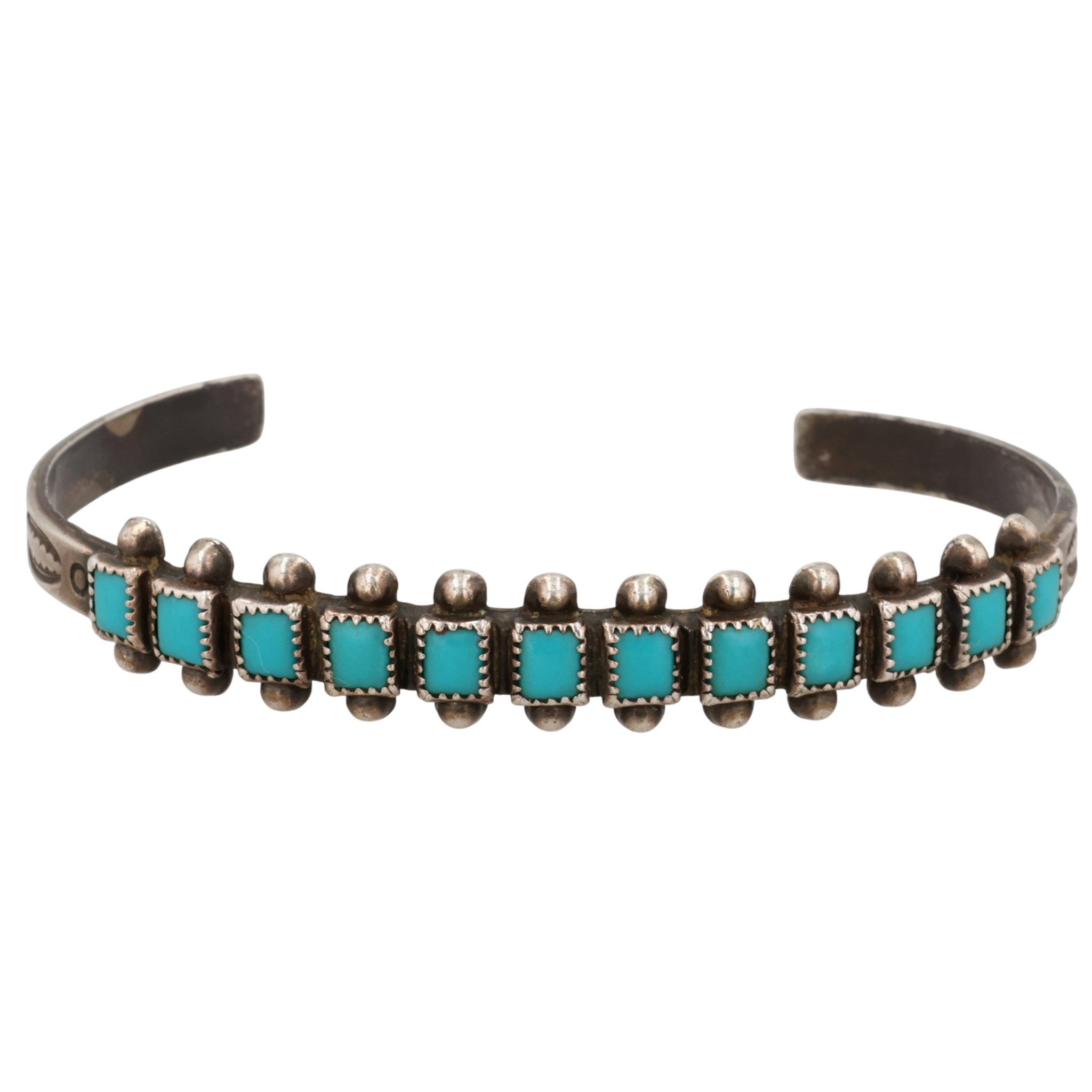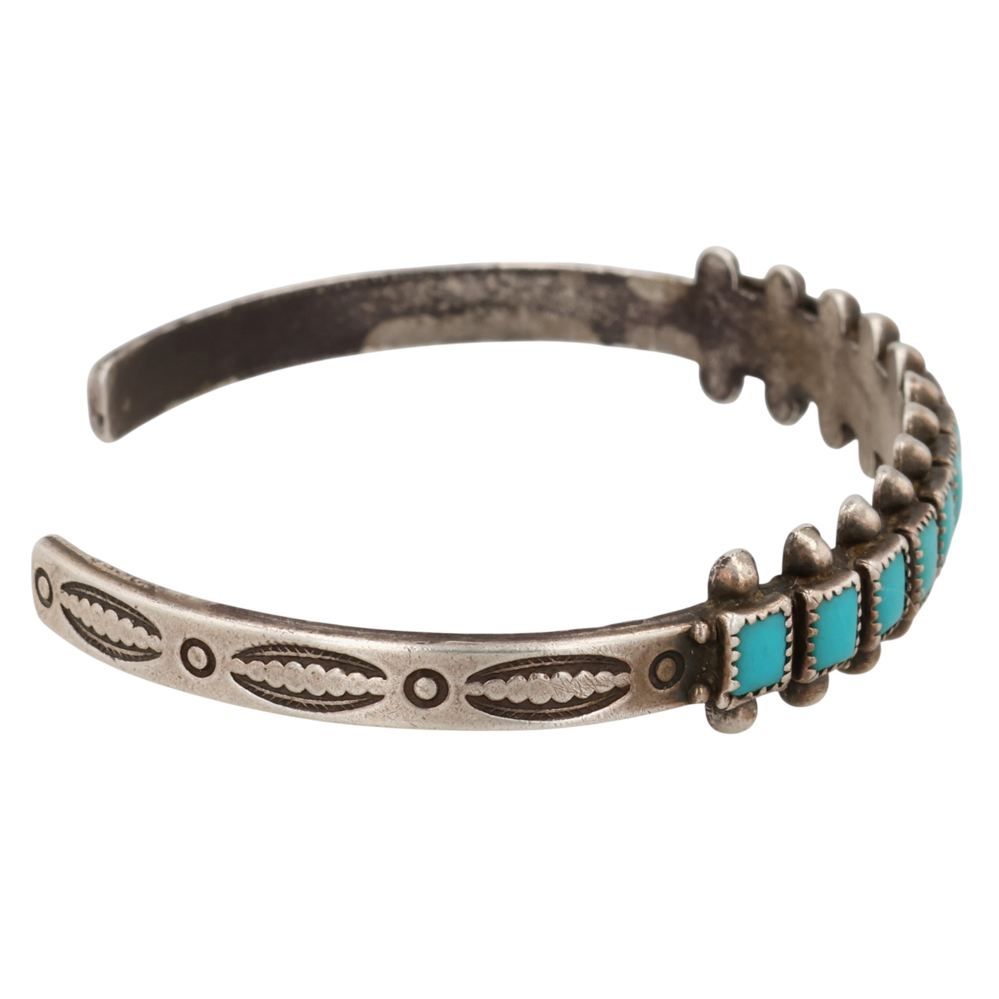 Bell Trading Post Navajo Sterling Turquoise Cuff Bracelet 12g, signed with Bell Trading post pictograph