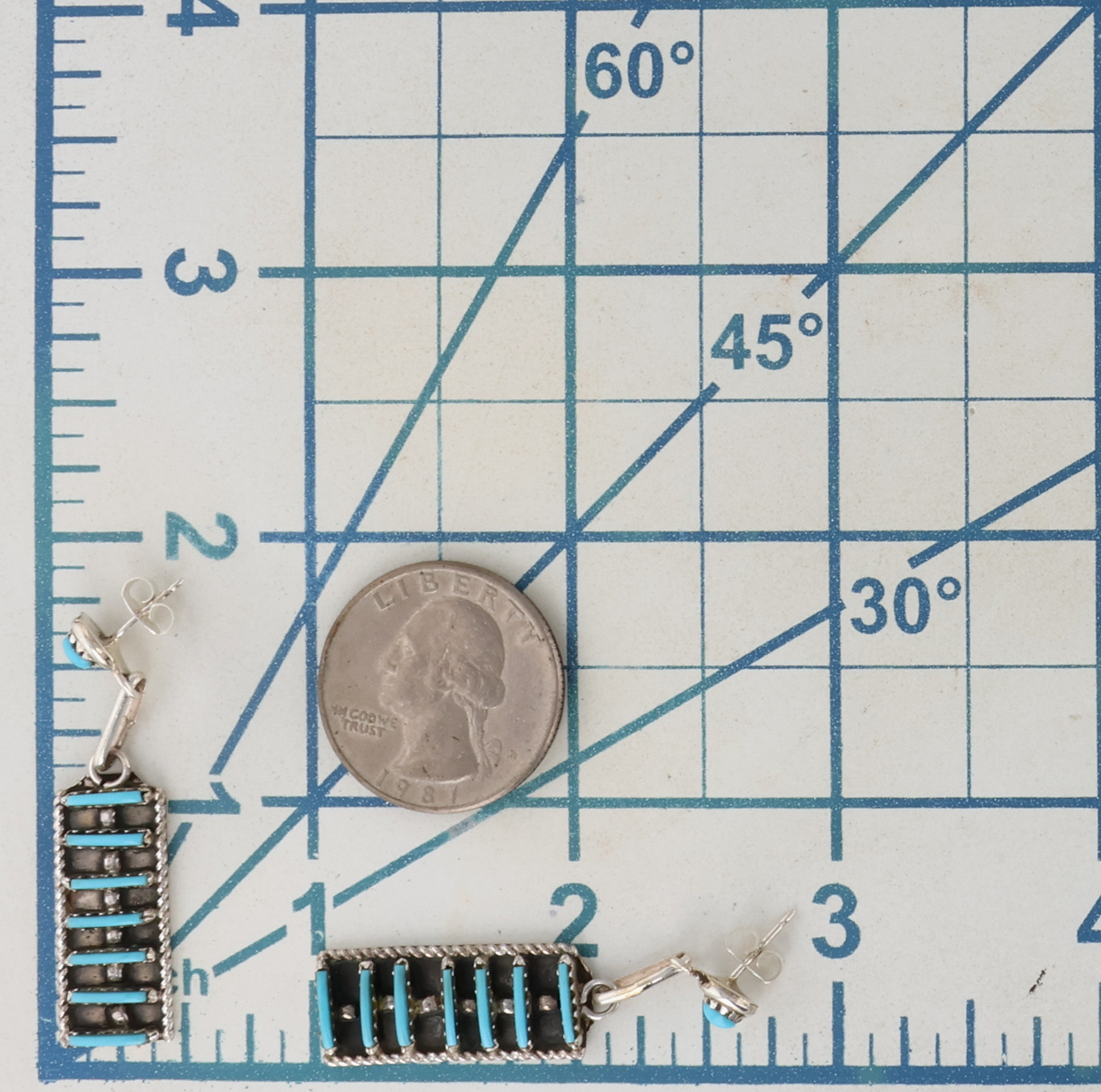 Davis Kaamasee Zuni Sterling Turquoise Earrings 6g
