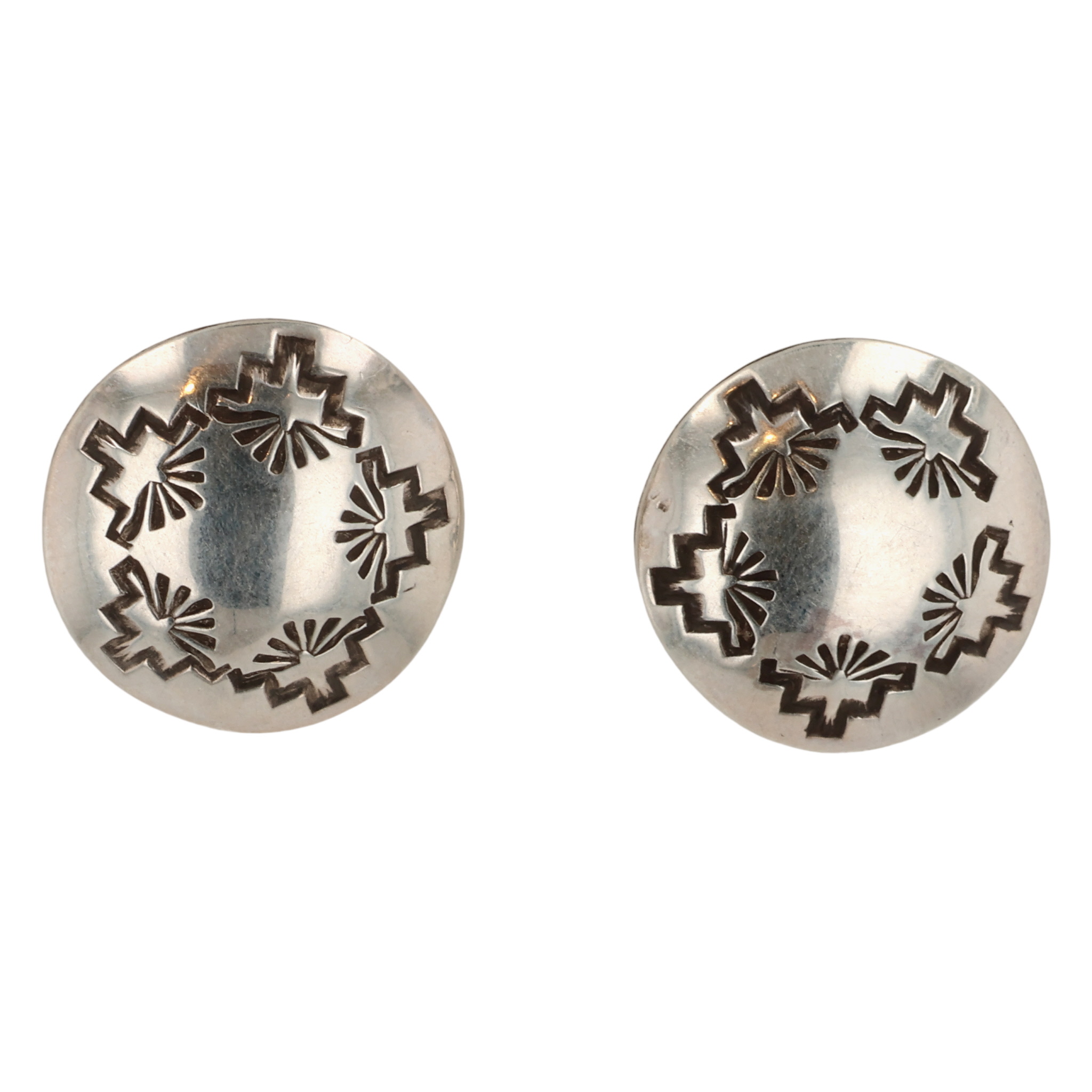 Signed with a Pictograph Navajo Sterling Stamp Work Earrings 5.5g