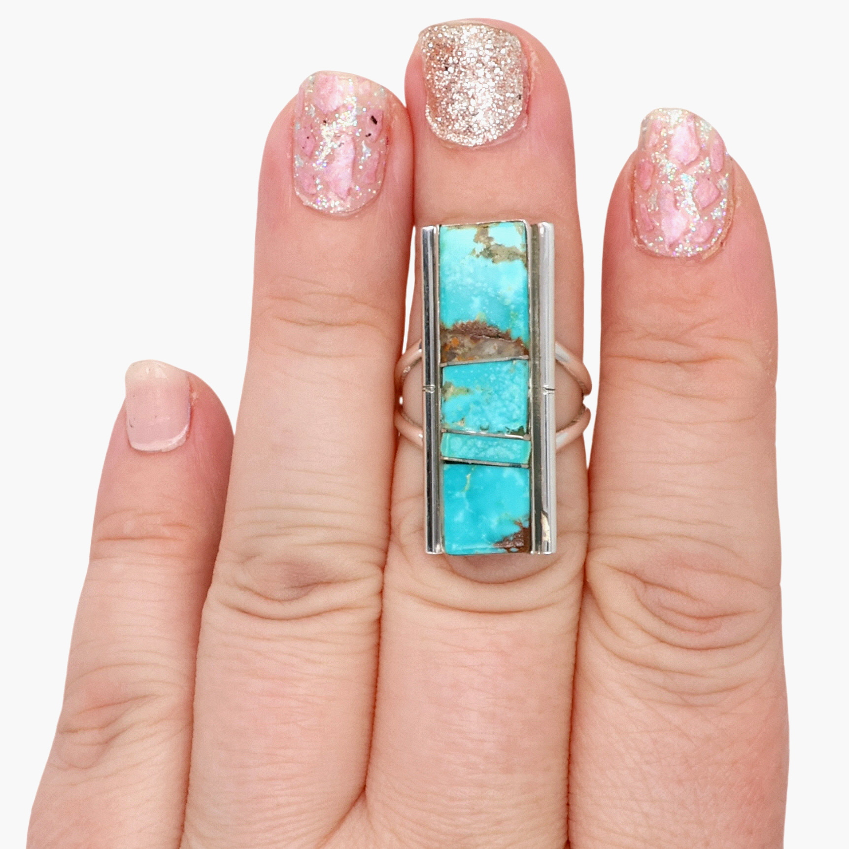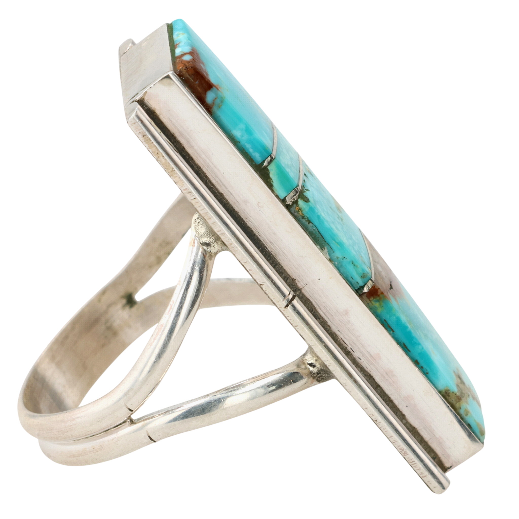 Bobby Platero Navajo Sterling Kingman Turquoise Cowboy Hat Ring 8g Sz 5