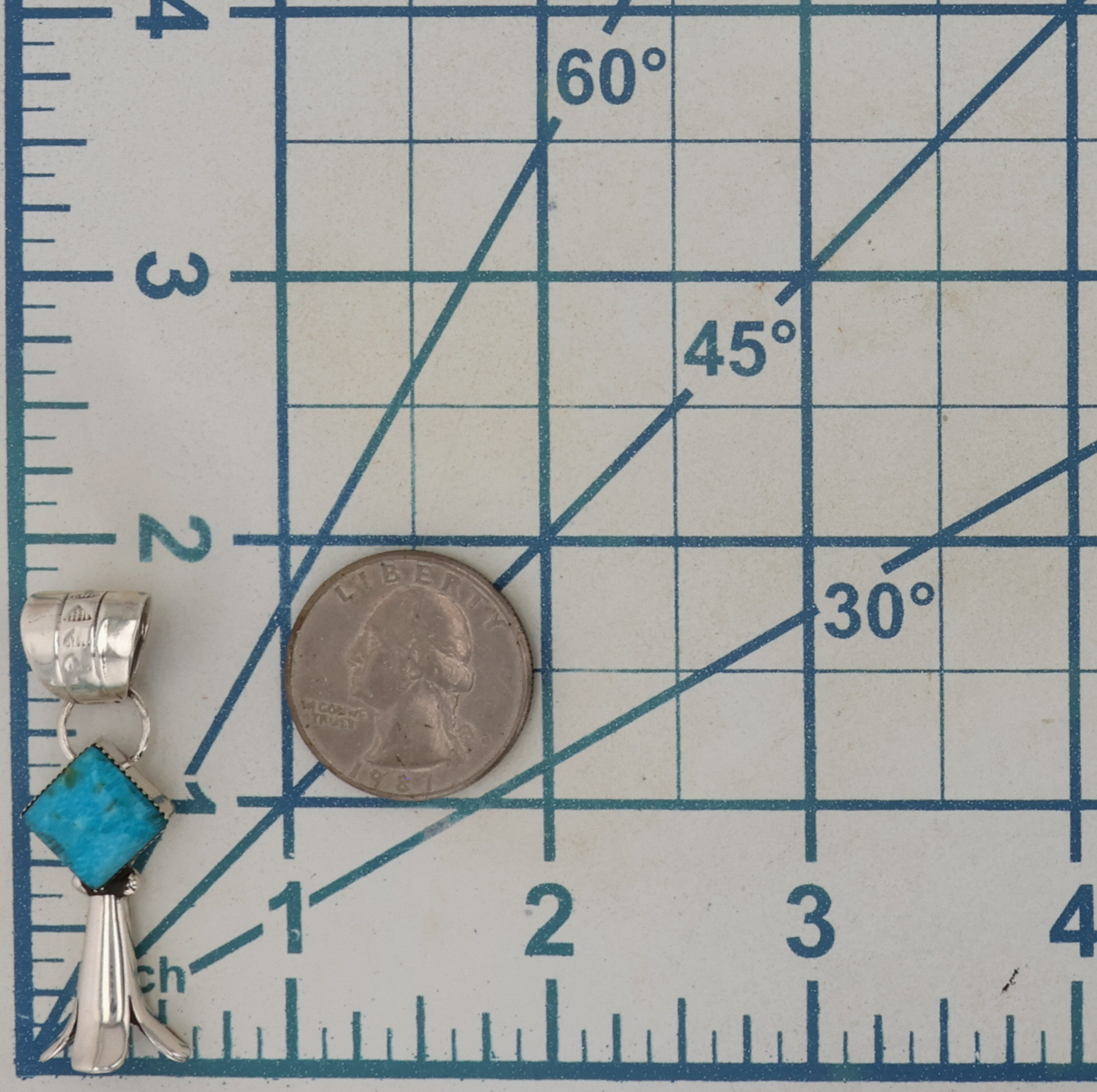 Sonyei Coho Navajo Sterling Kingman Turquoise Squash Blossom Pendant 6g