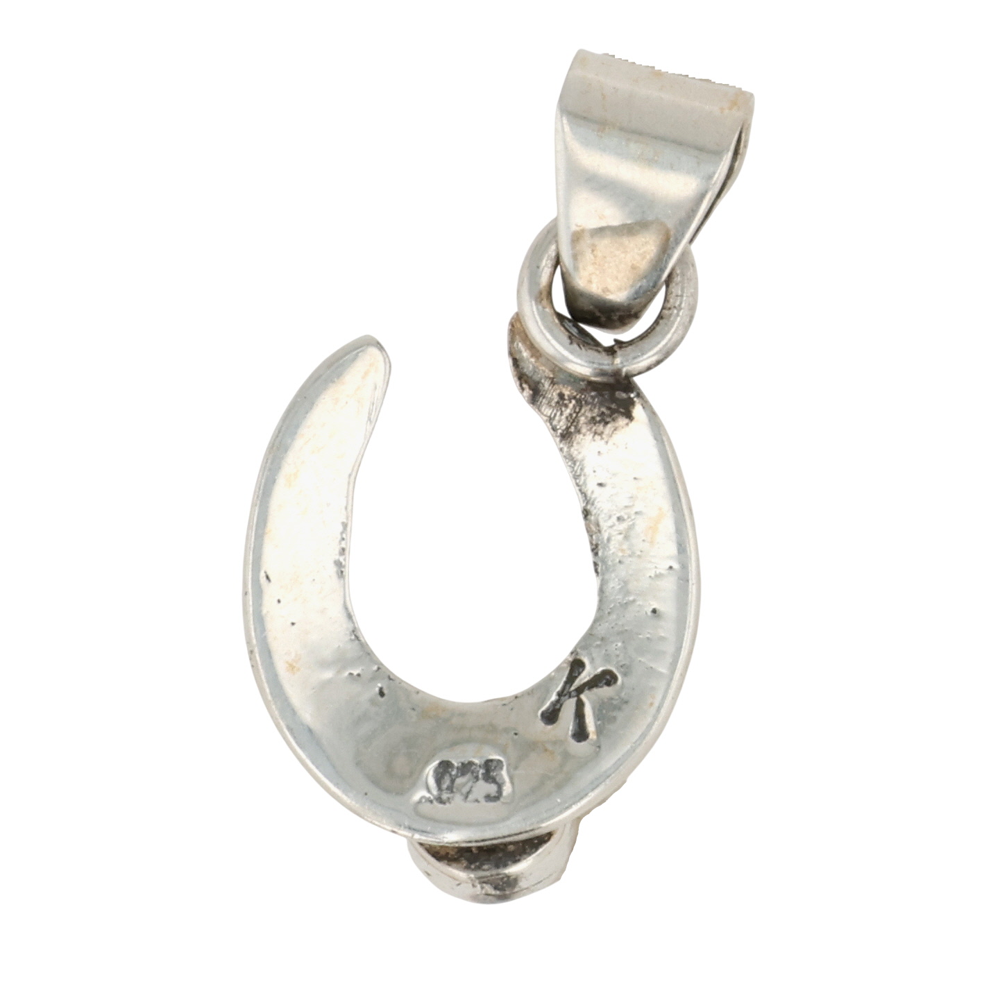 Signed K Navajo Sterling Pink Conch Shell Horseshoe Pendant 2g