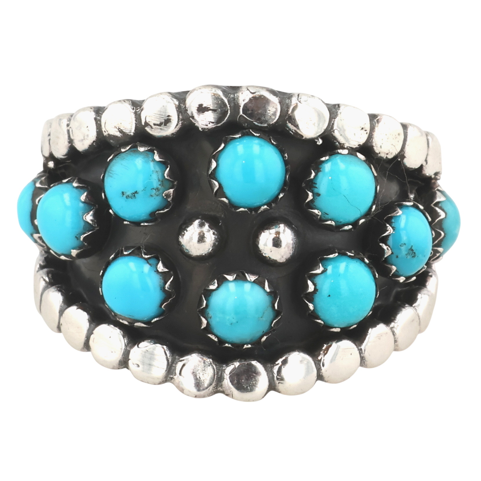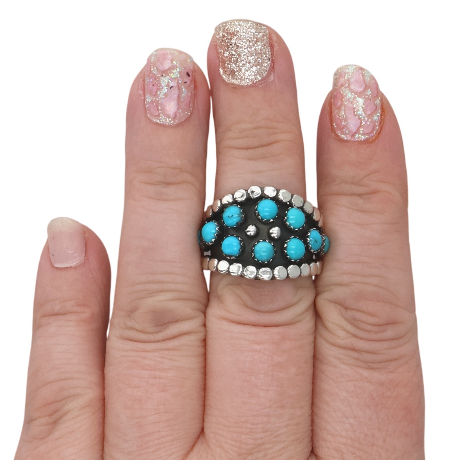 Kenny Lonjose Navajo Sterling Kingman Turquoise Ring 9g Sz 7.25
