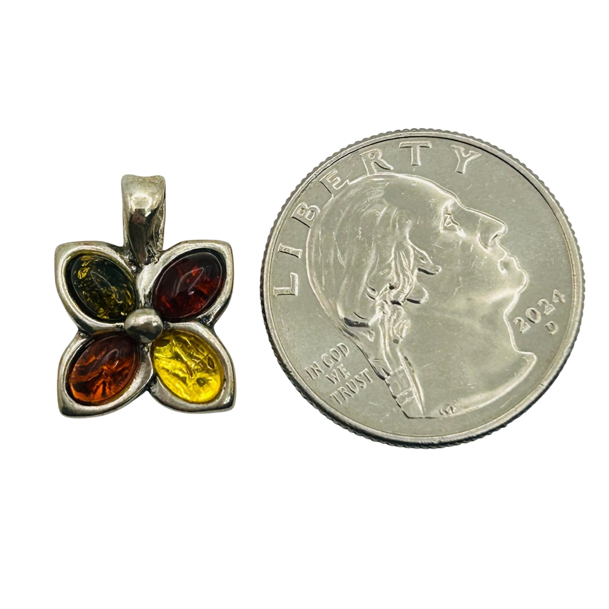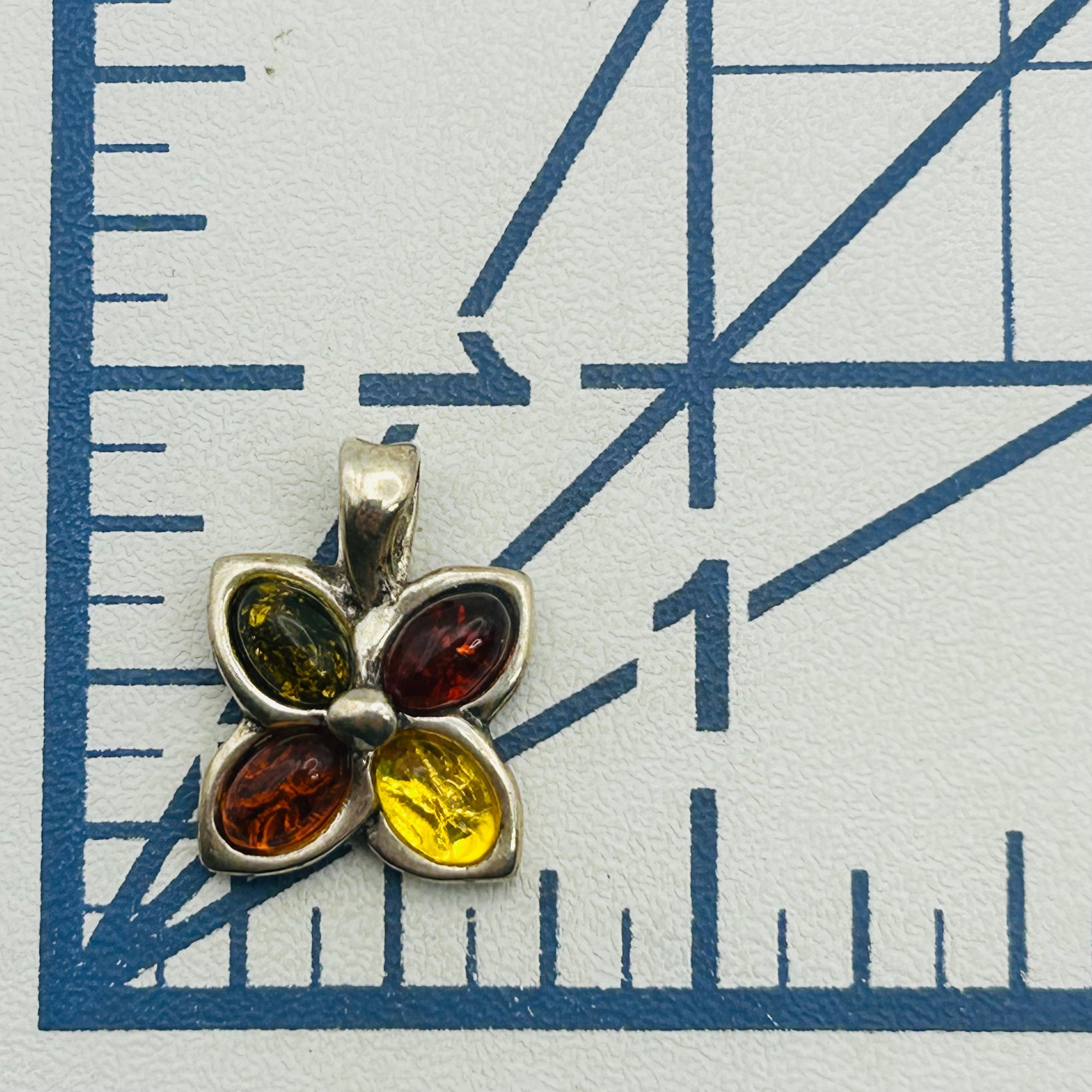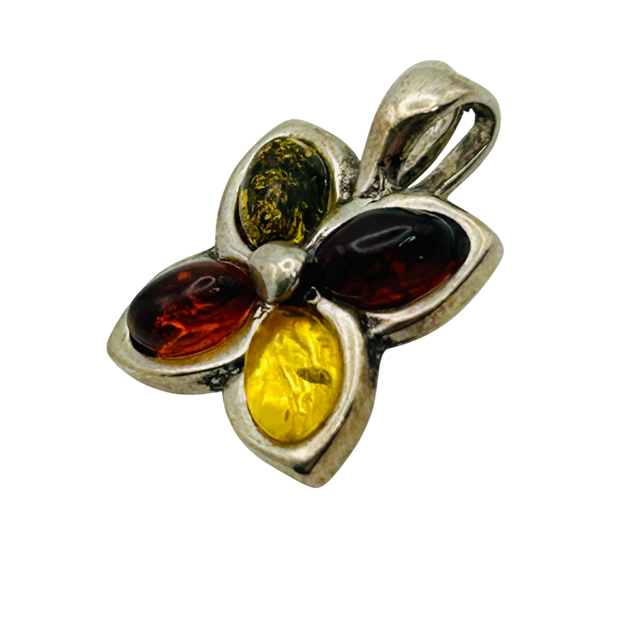 Sterling Amber flower pendant. 2.00g