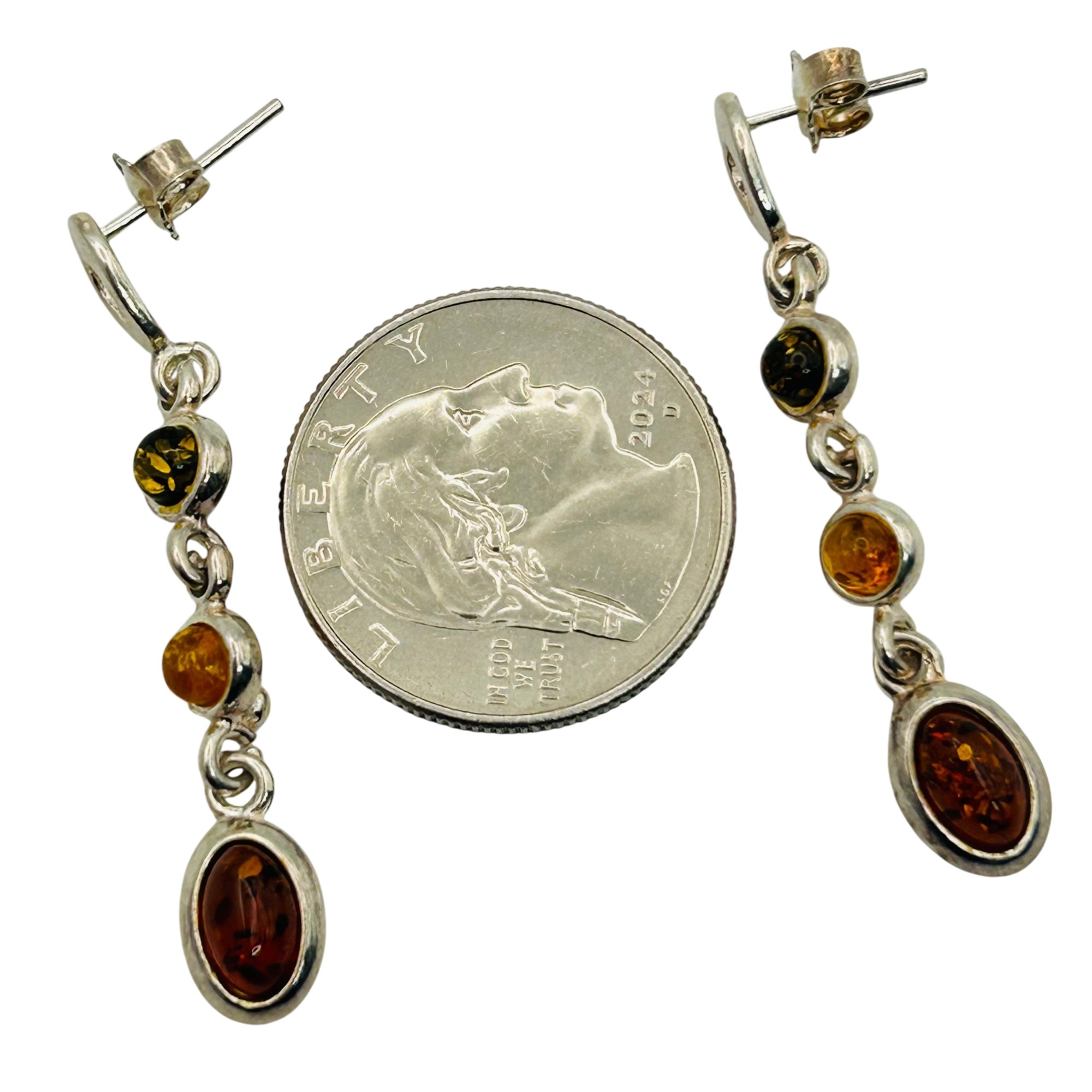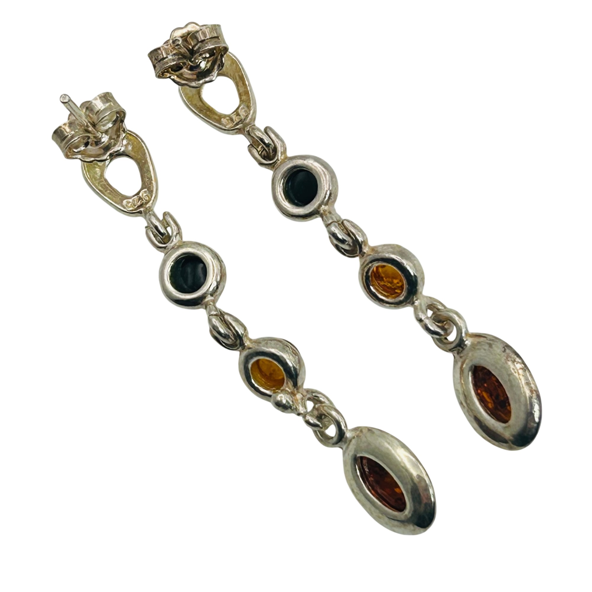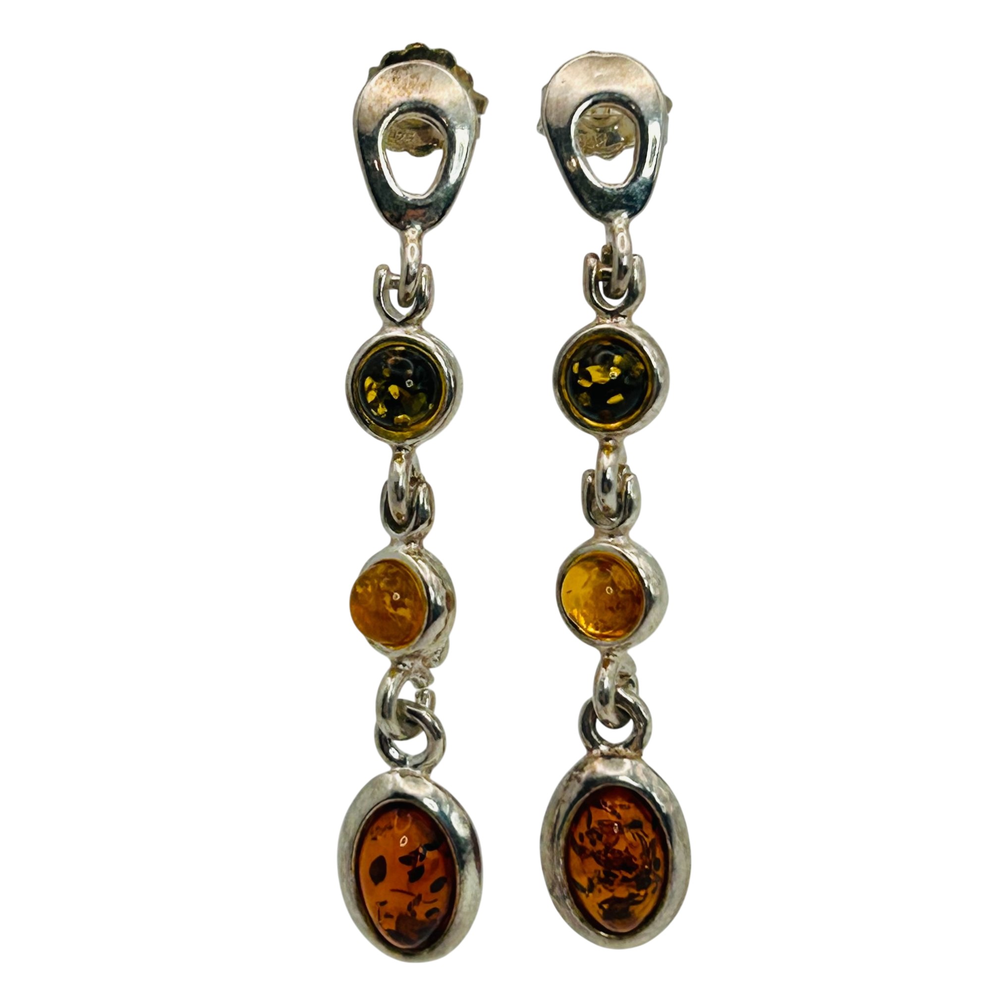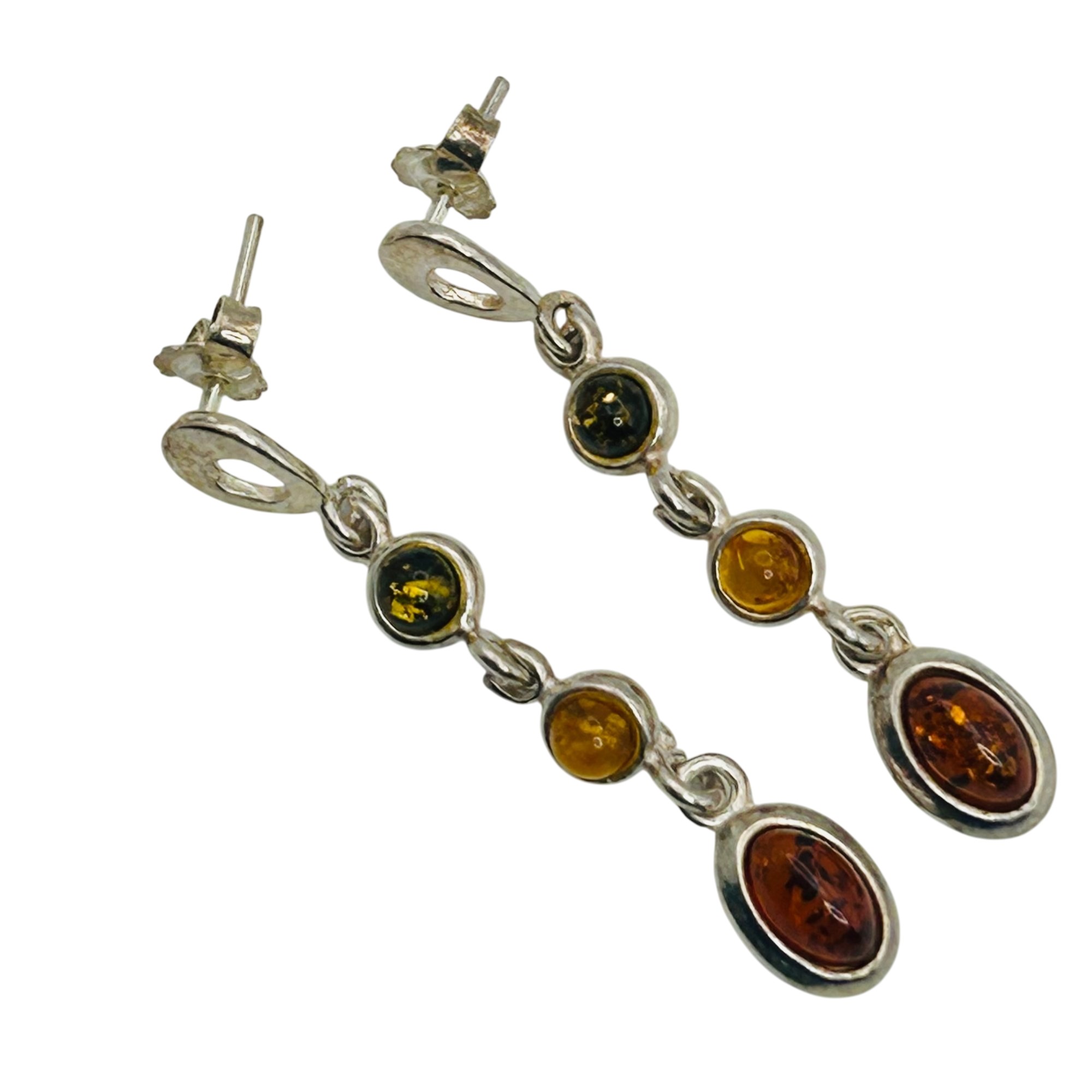 Sterling Amber dangle earrings. 4.80g