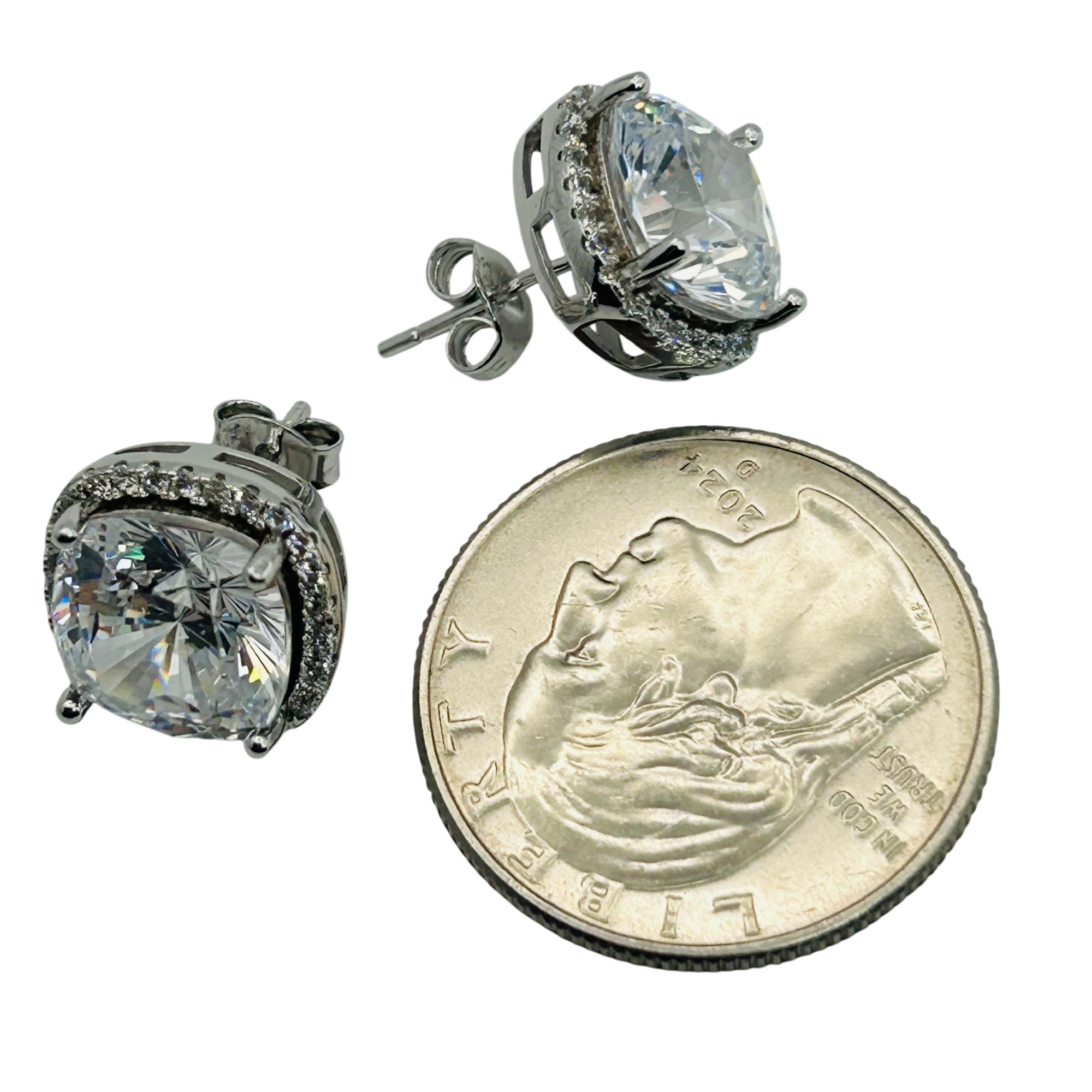 EW Sterling rhinestone halo design stud earrings. 6.50g
