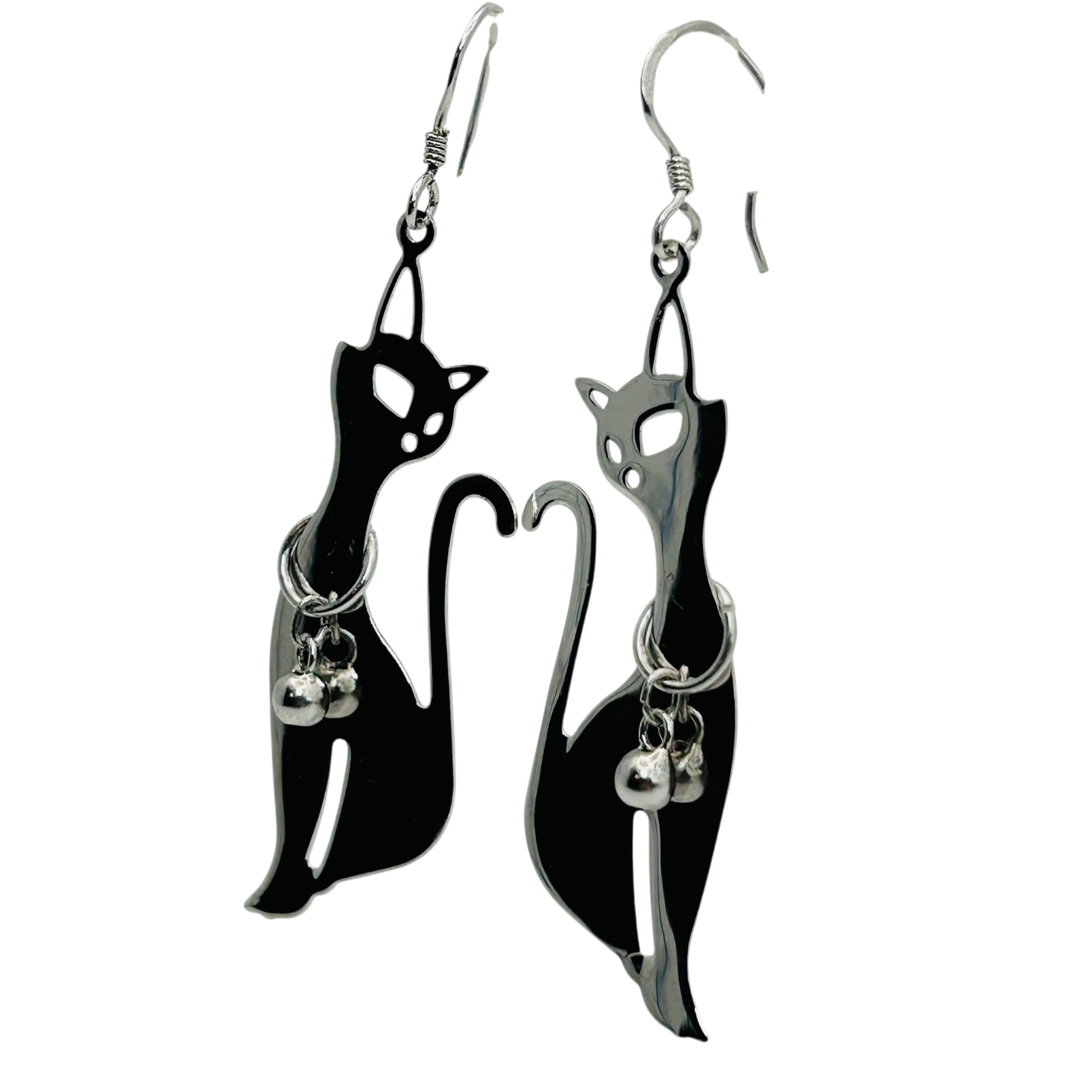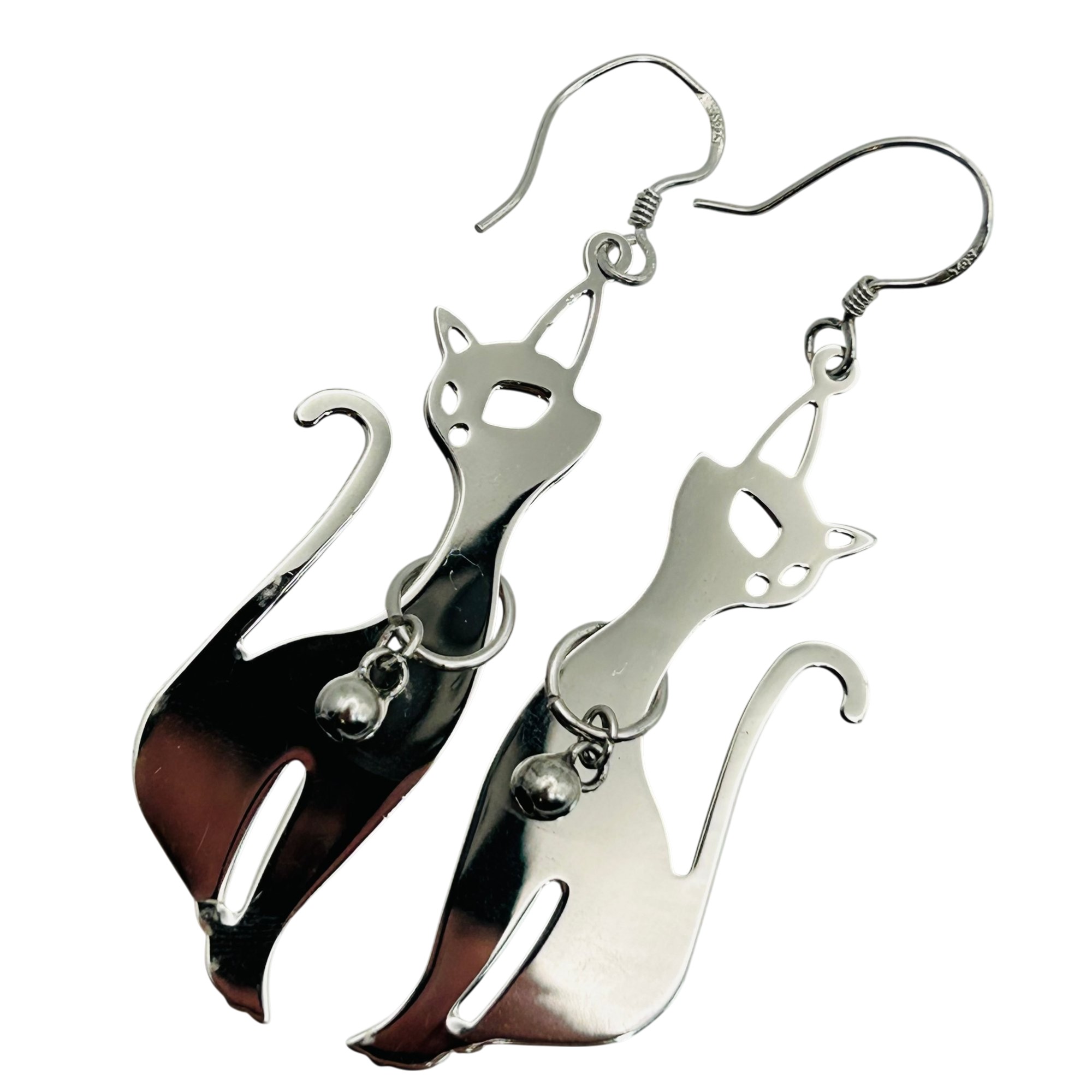 Sterling dangle cat earrings. 4.40g