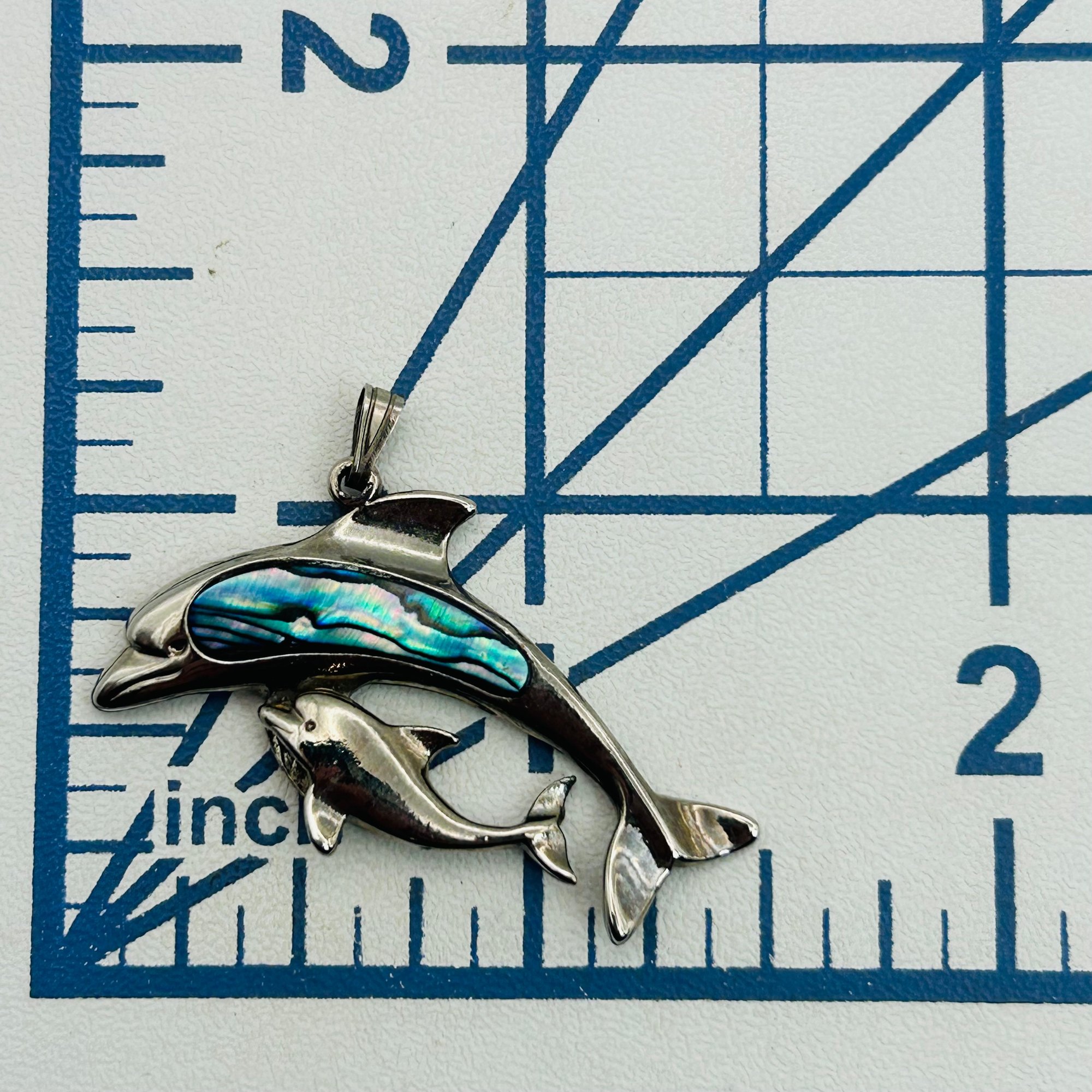 Sterling abalone dolphin pendant. 4.30g