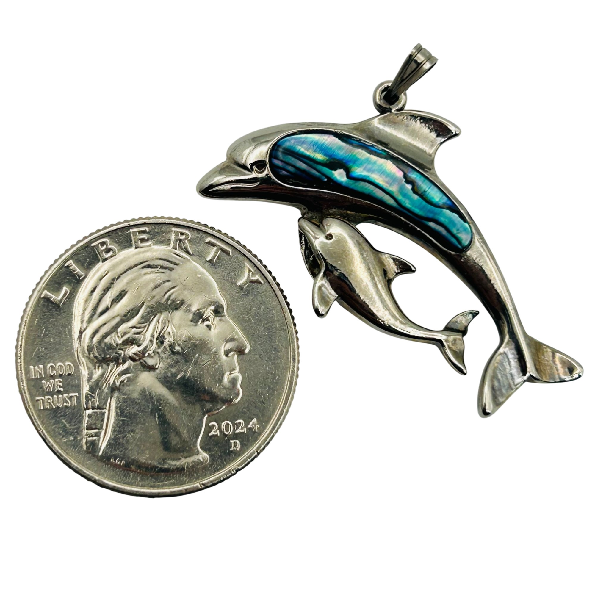 Sterling Abalone Dolphin Pendant