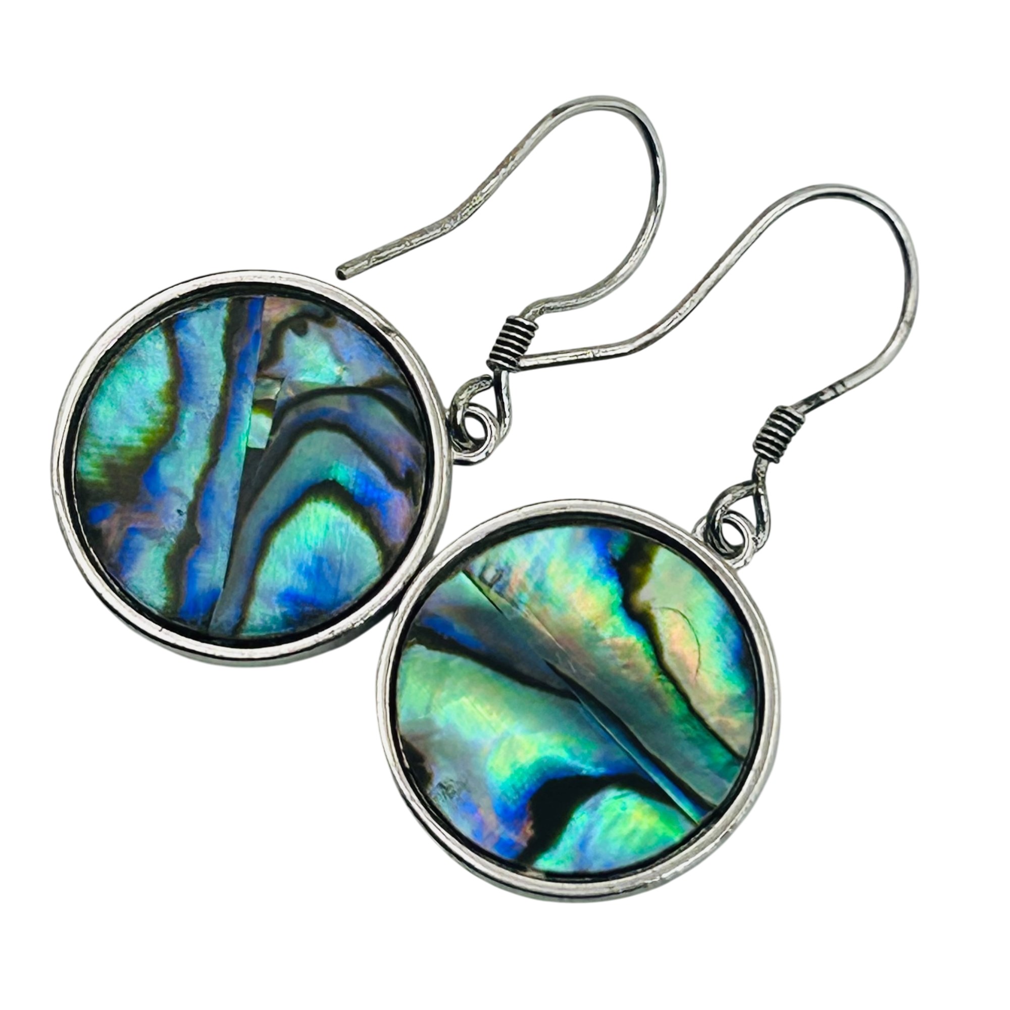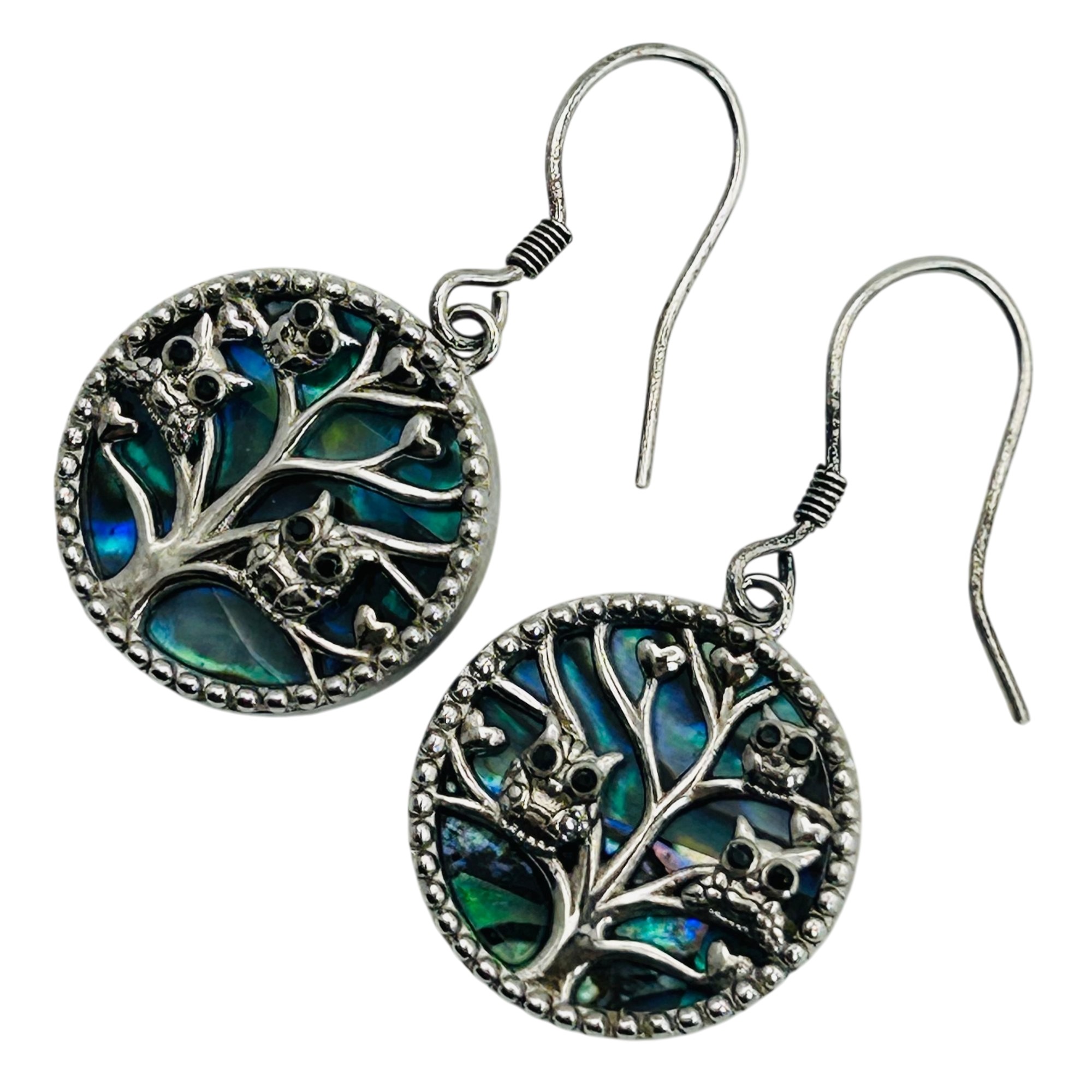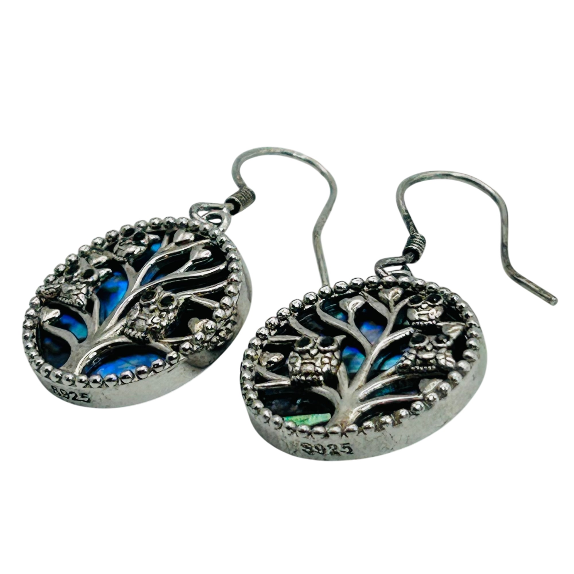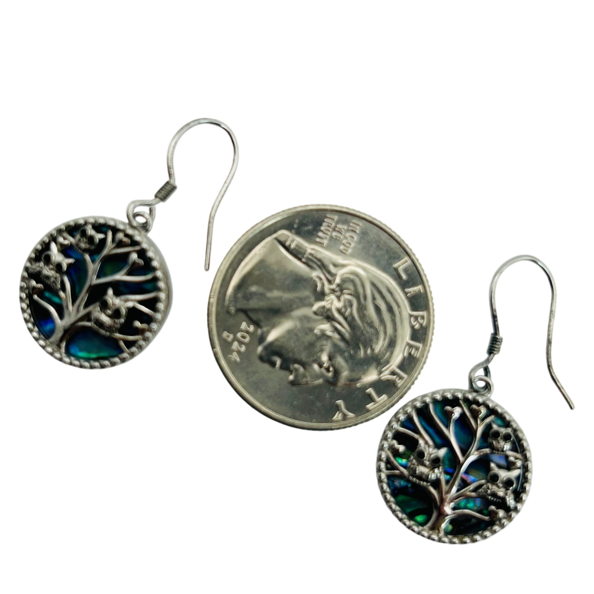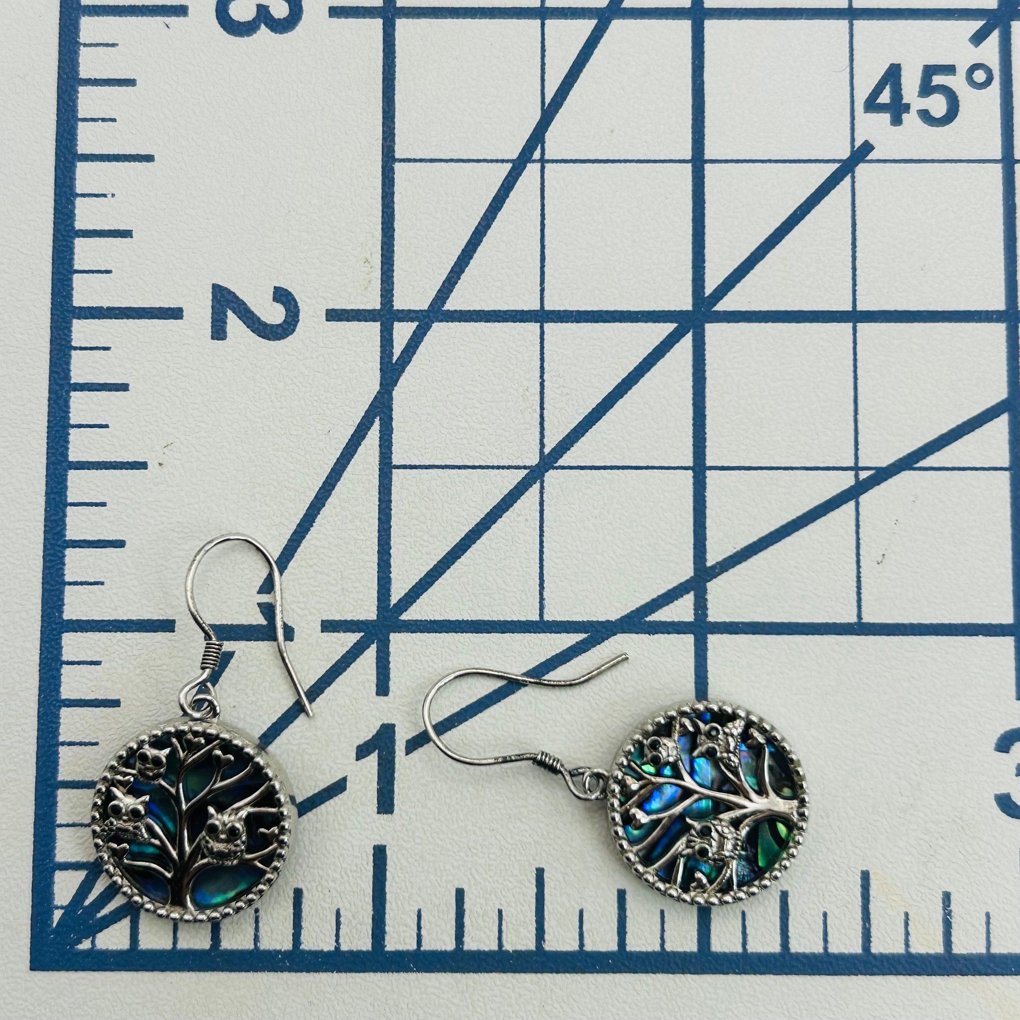 Sterling abalone owl in tree hook back earrings. 4.40g