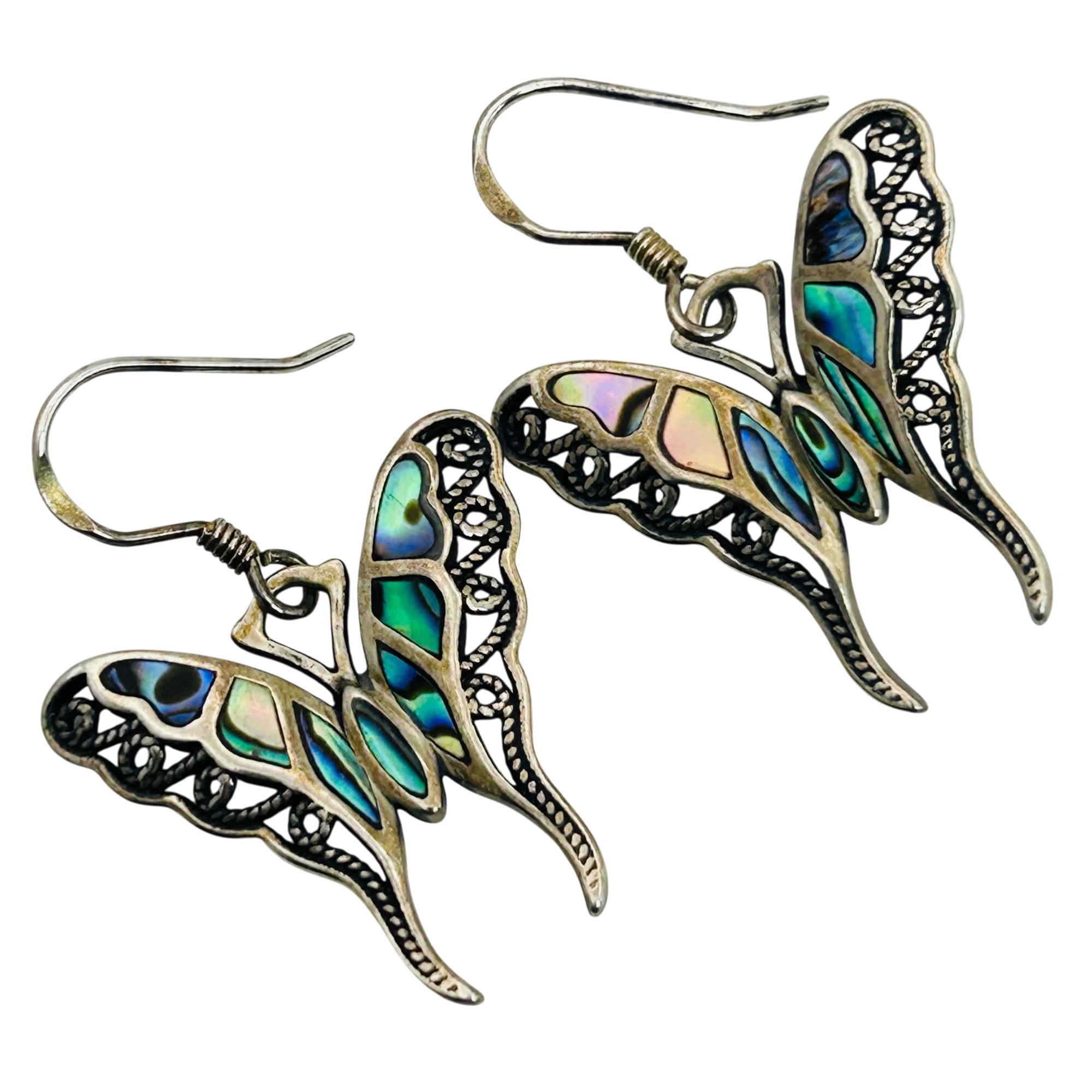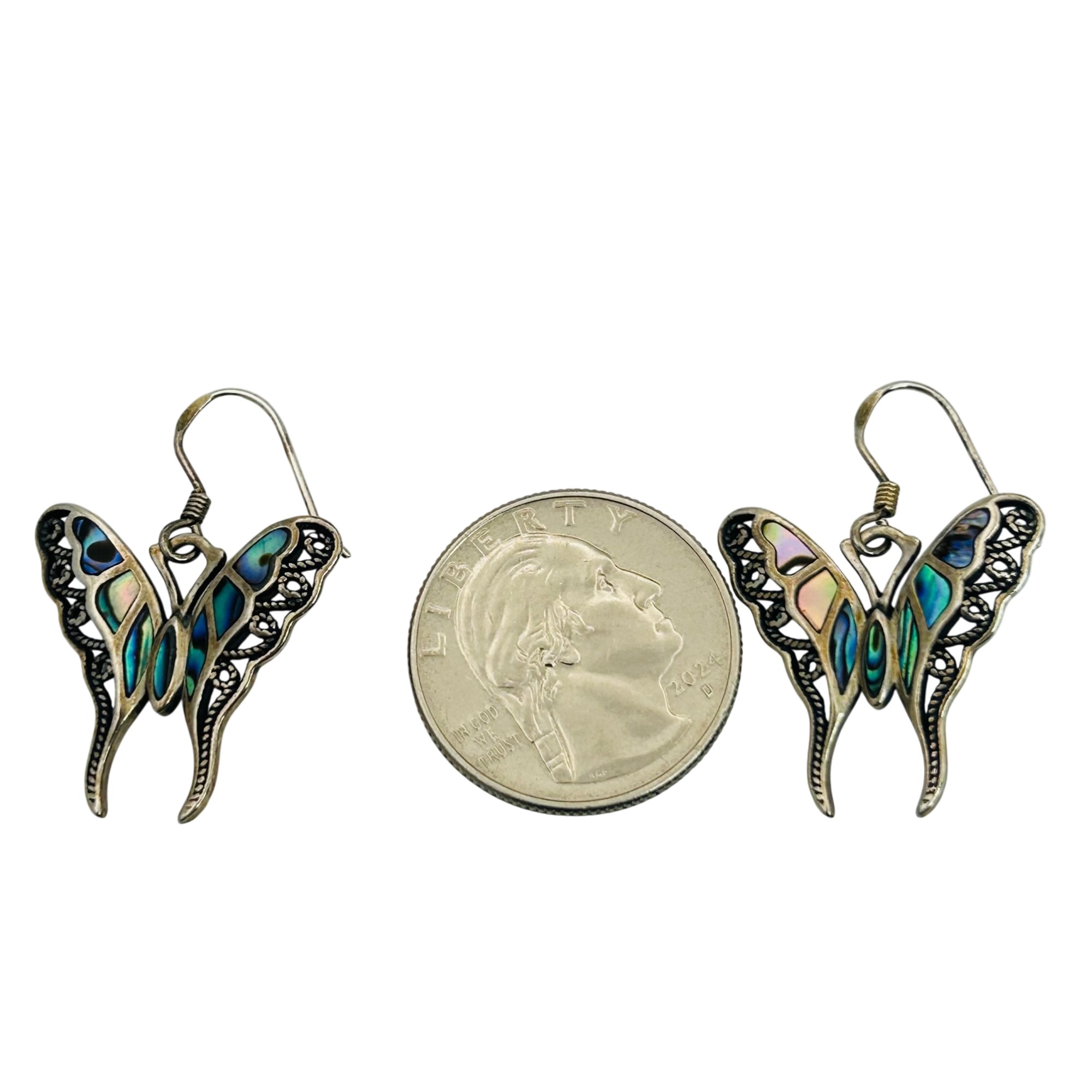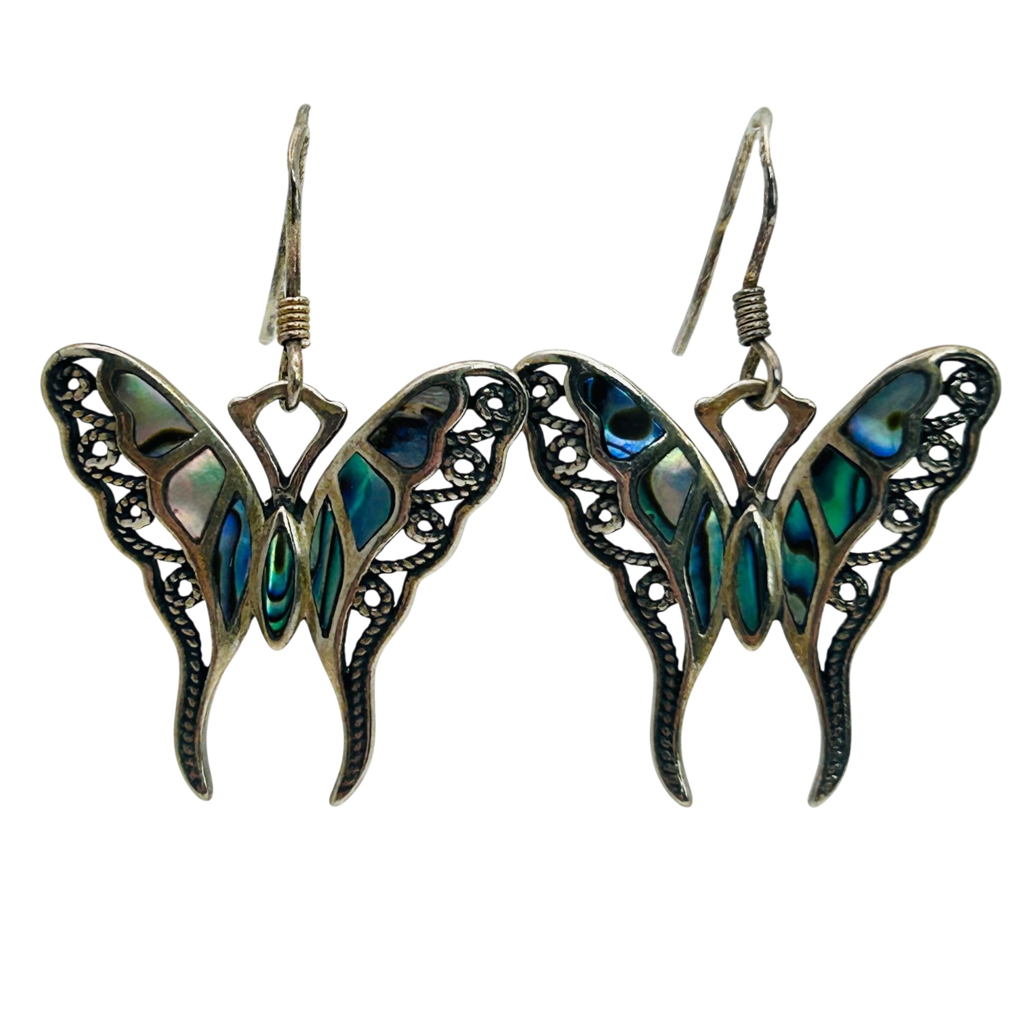 EJI Sterling abalone butterfly hook back earrings. 5.30g