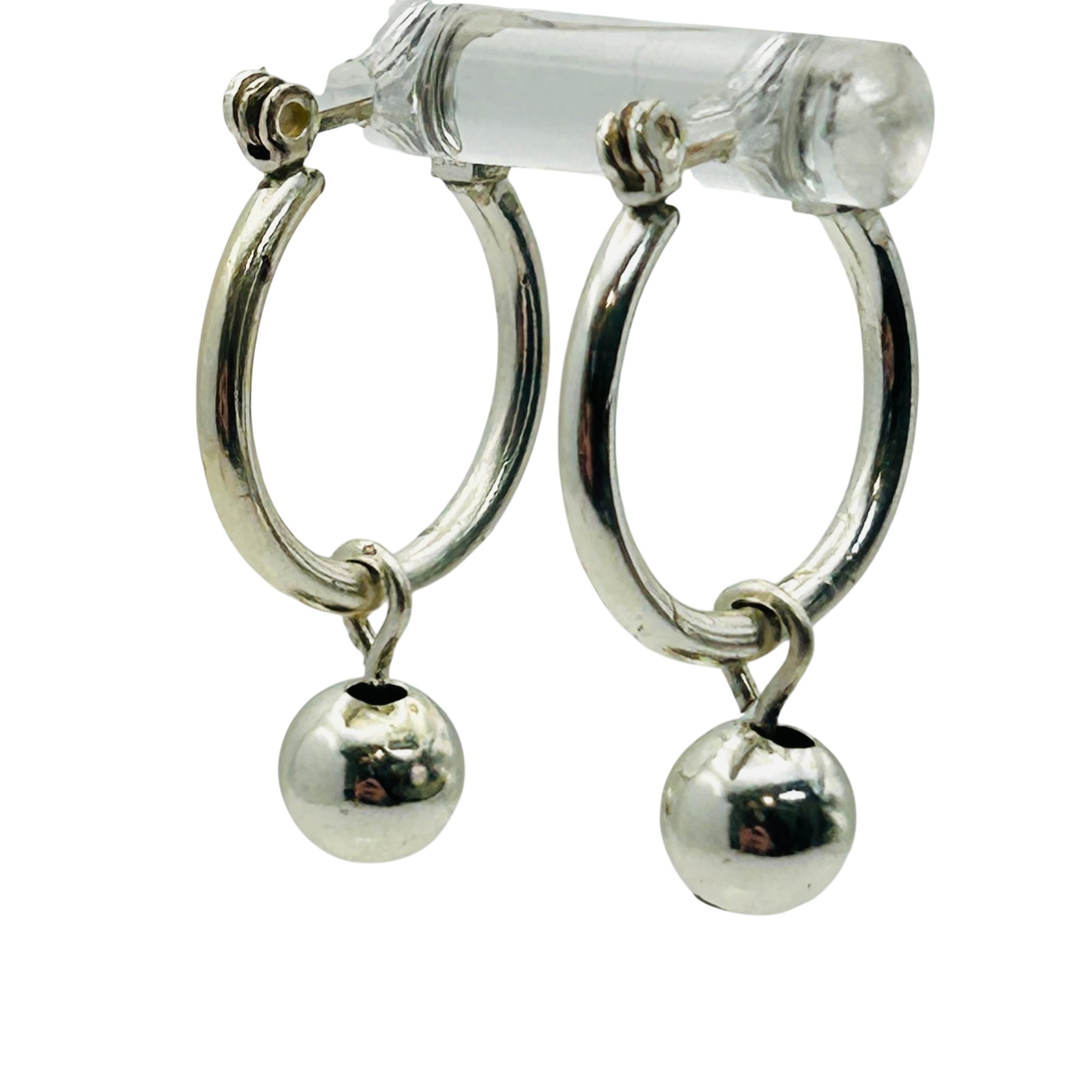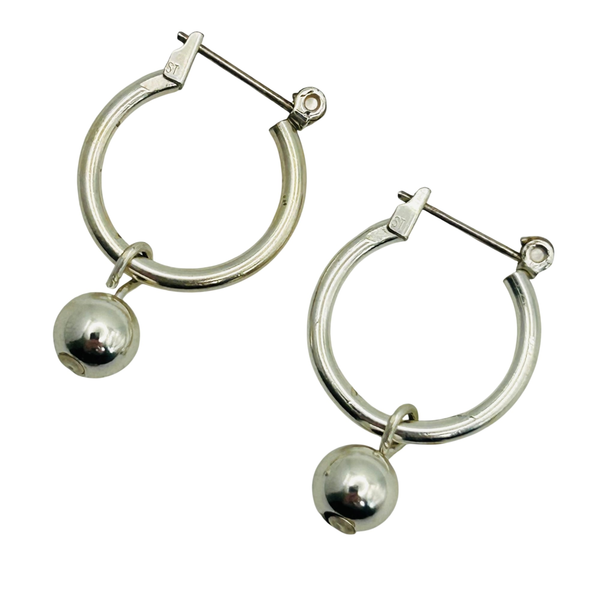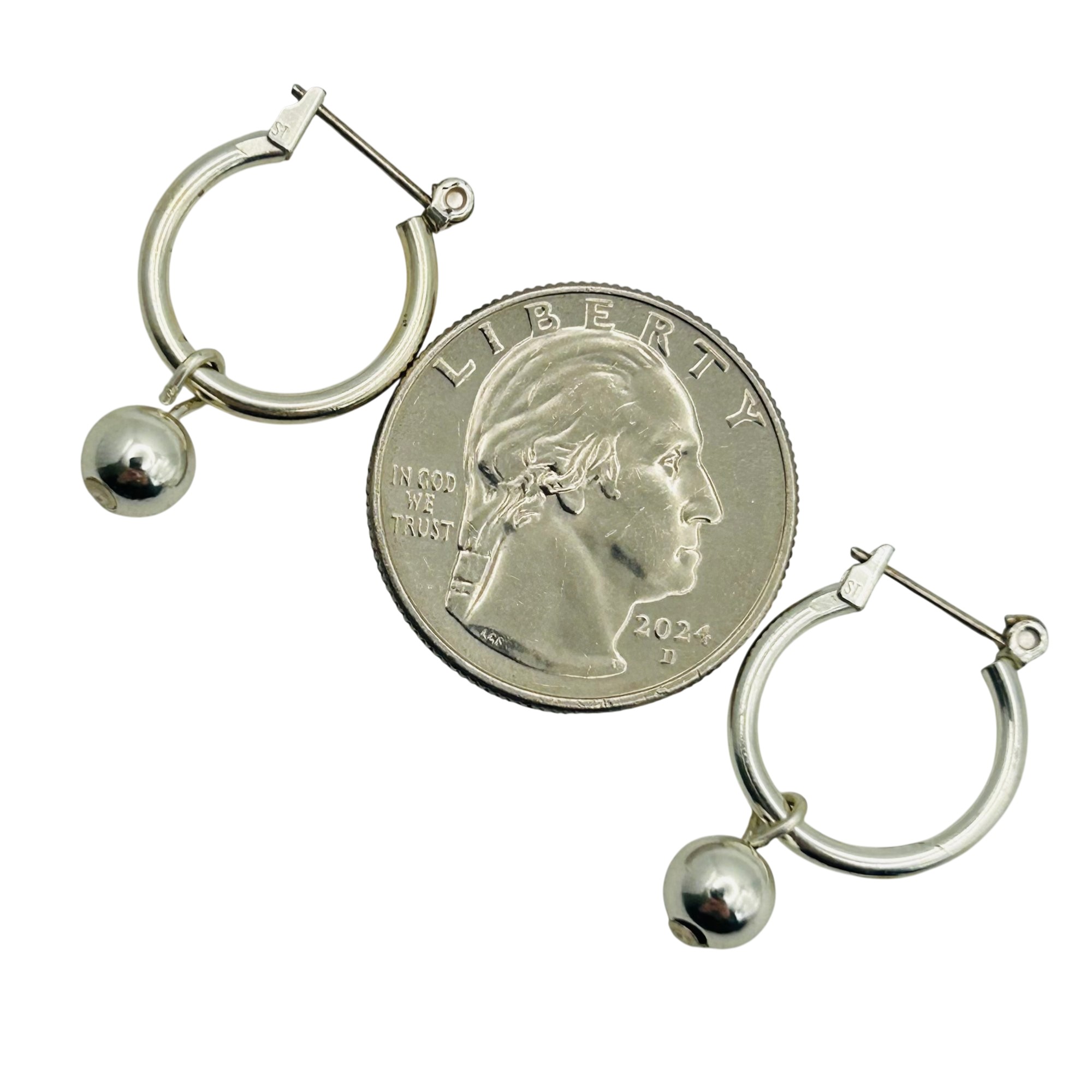 Sterling hinge hoop dangle bead earrings. 2.90g