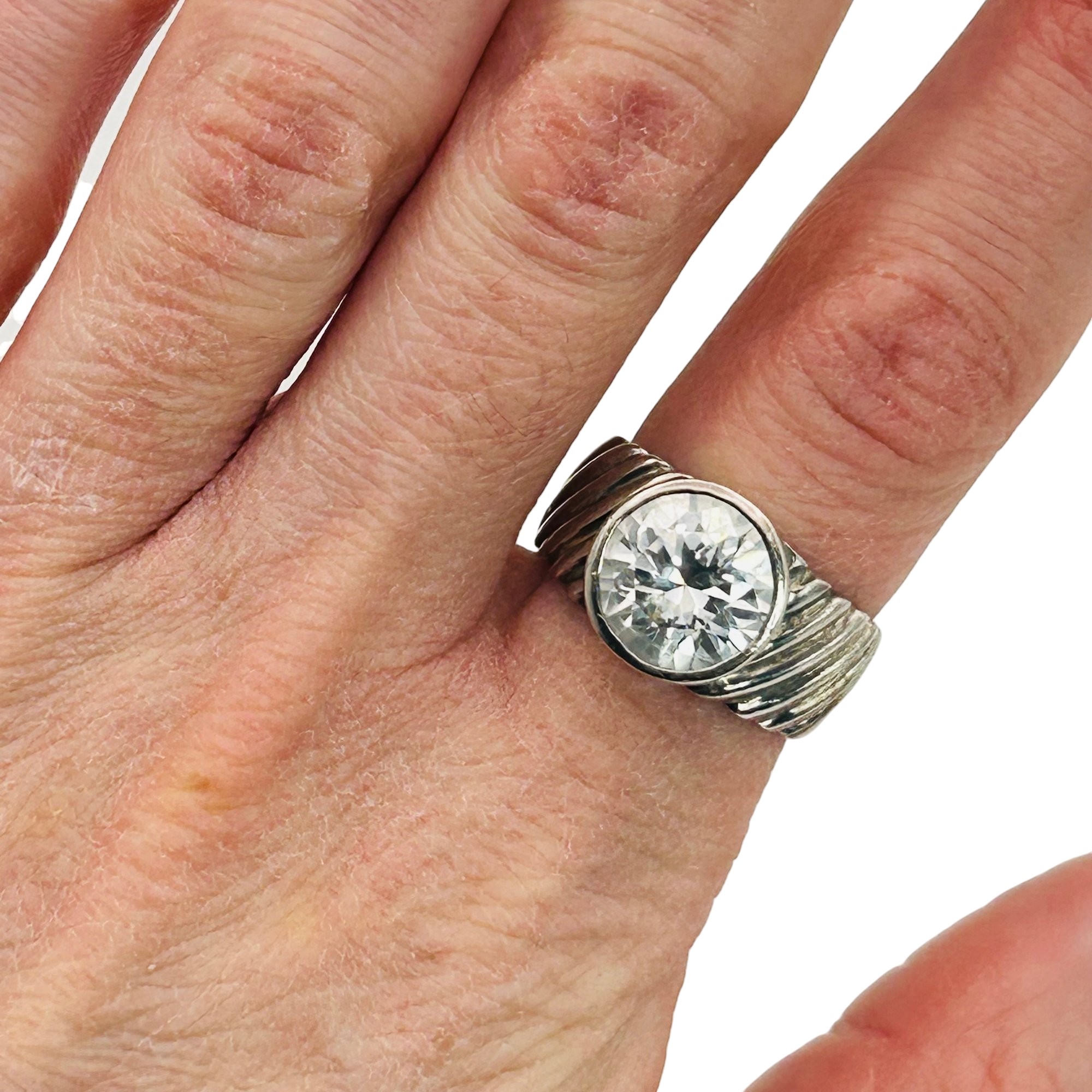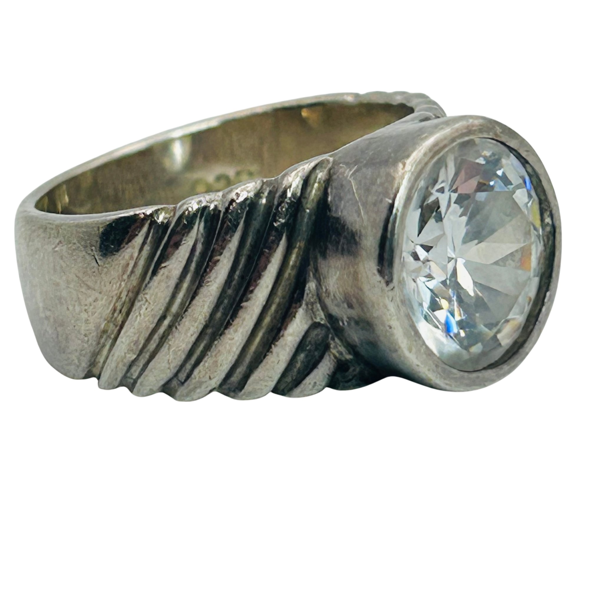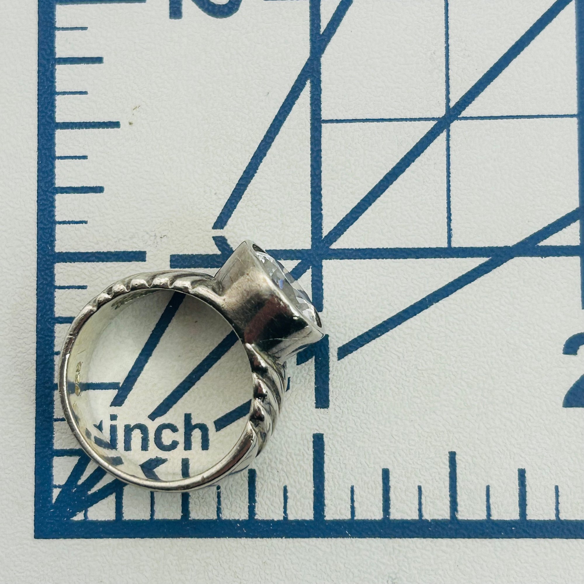 Sterling round rhinestone thick band ring. Size 7. 8.30g