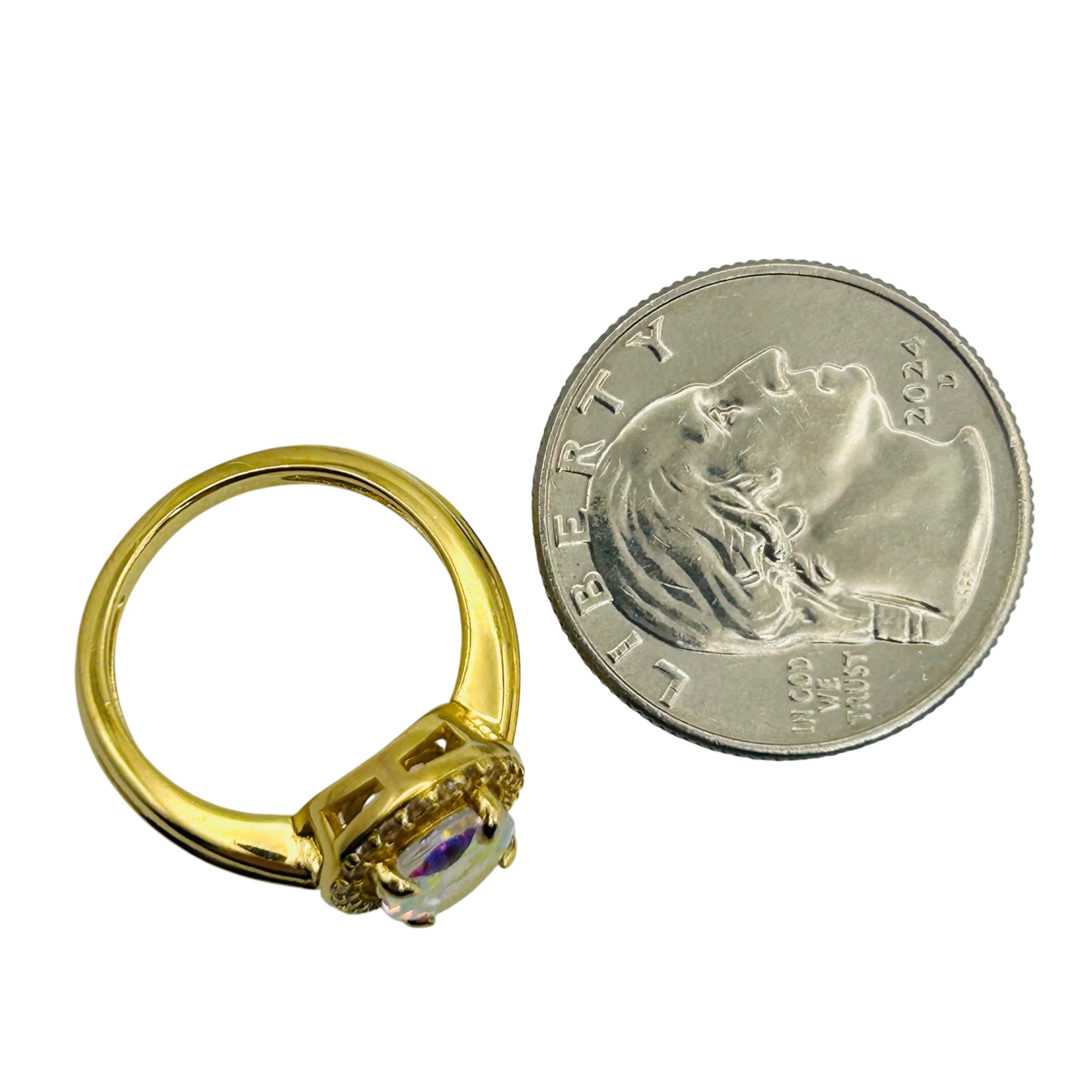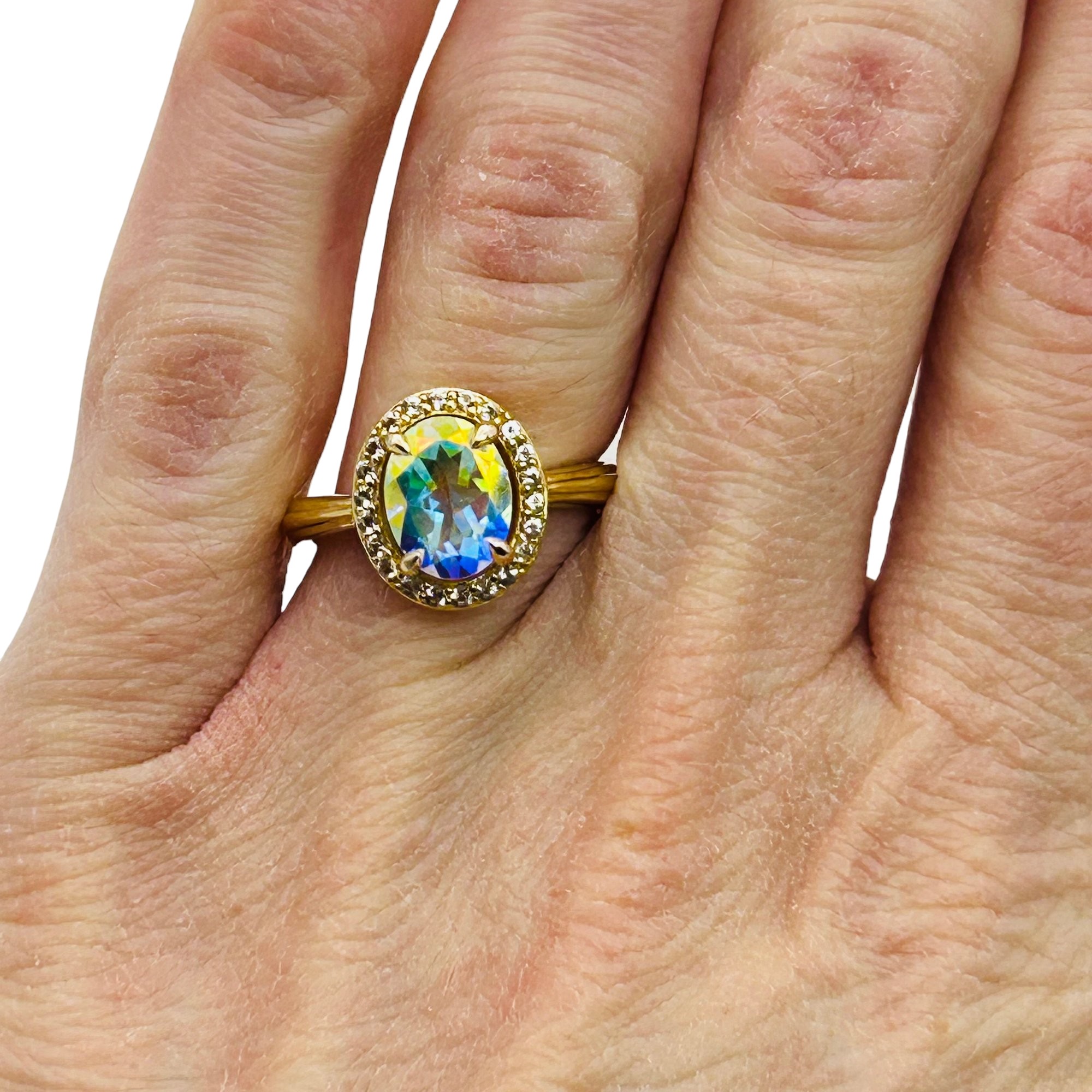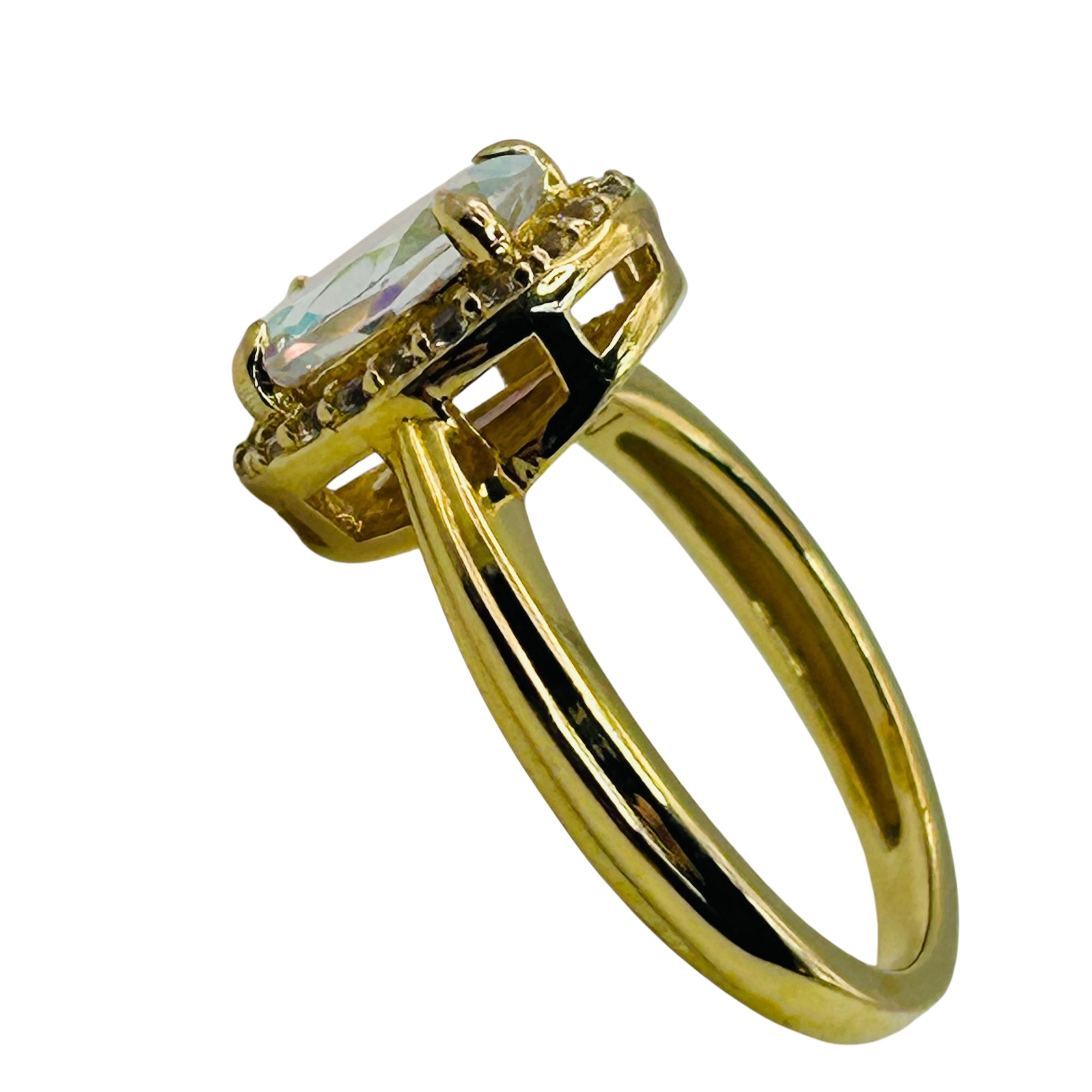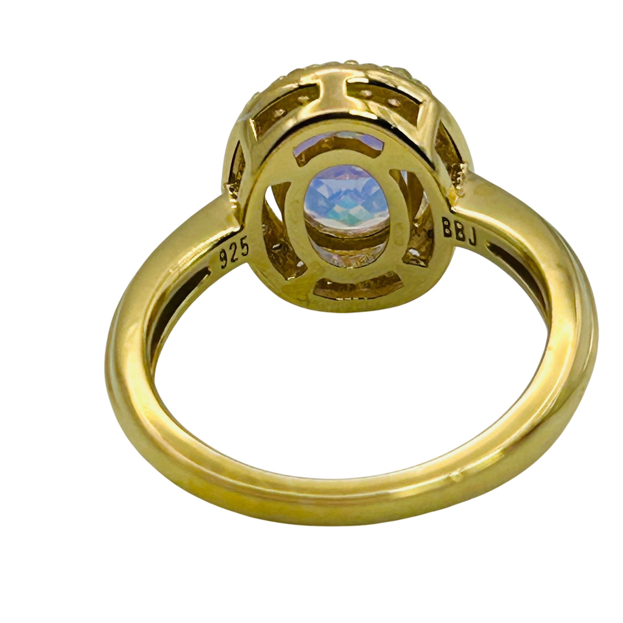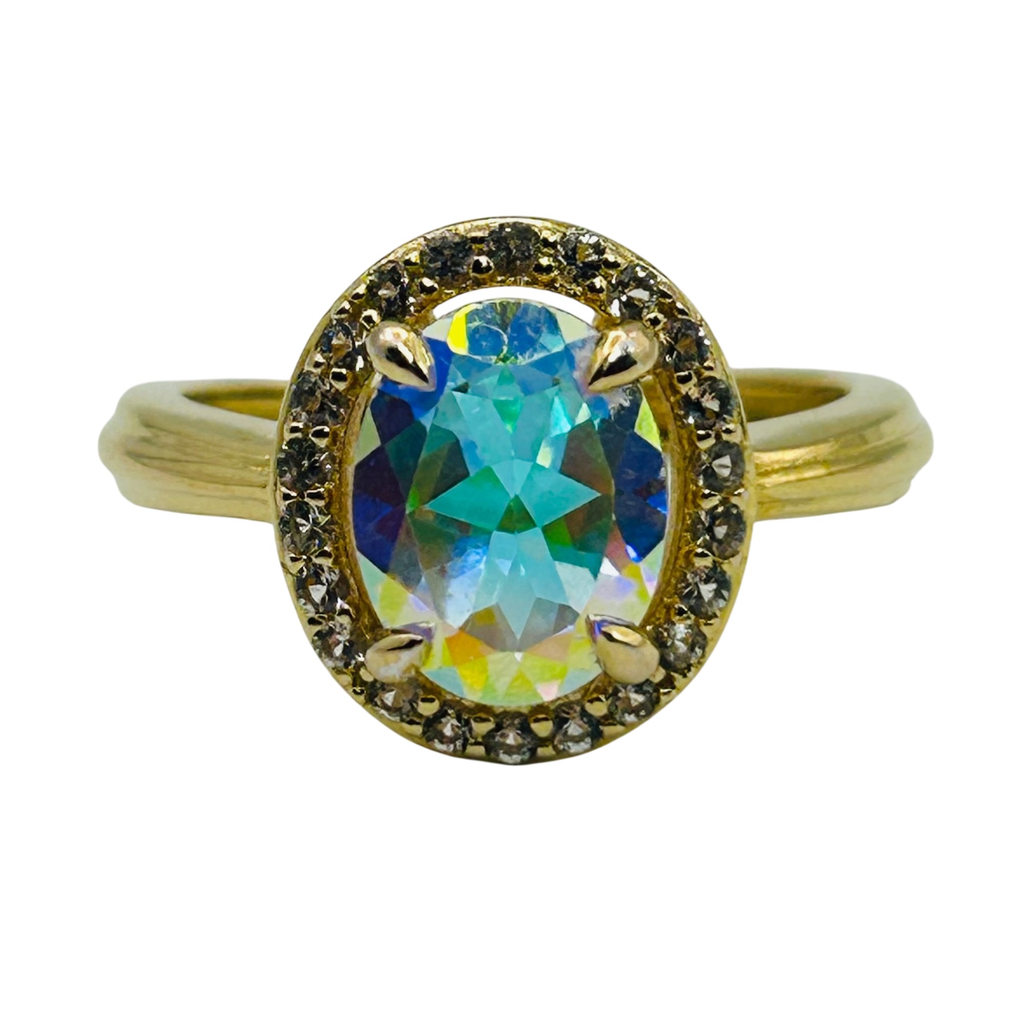 BBJ Sterling Mystic topaz oval halo detail ring. Size 6. 3.60g