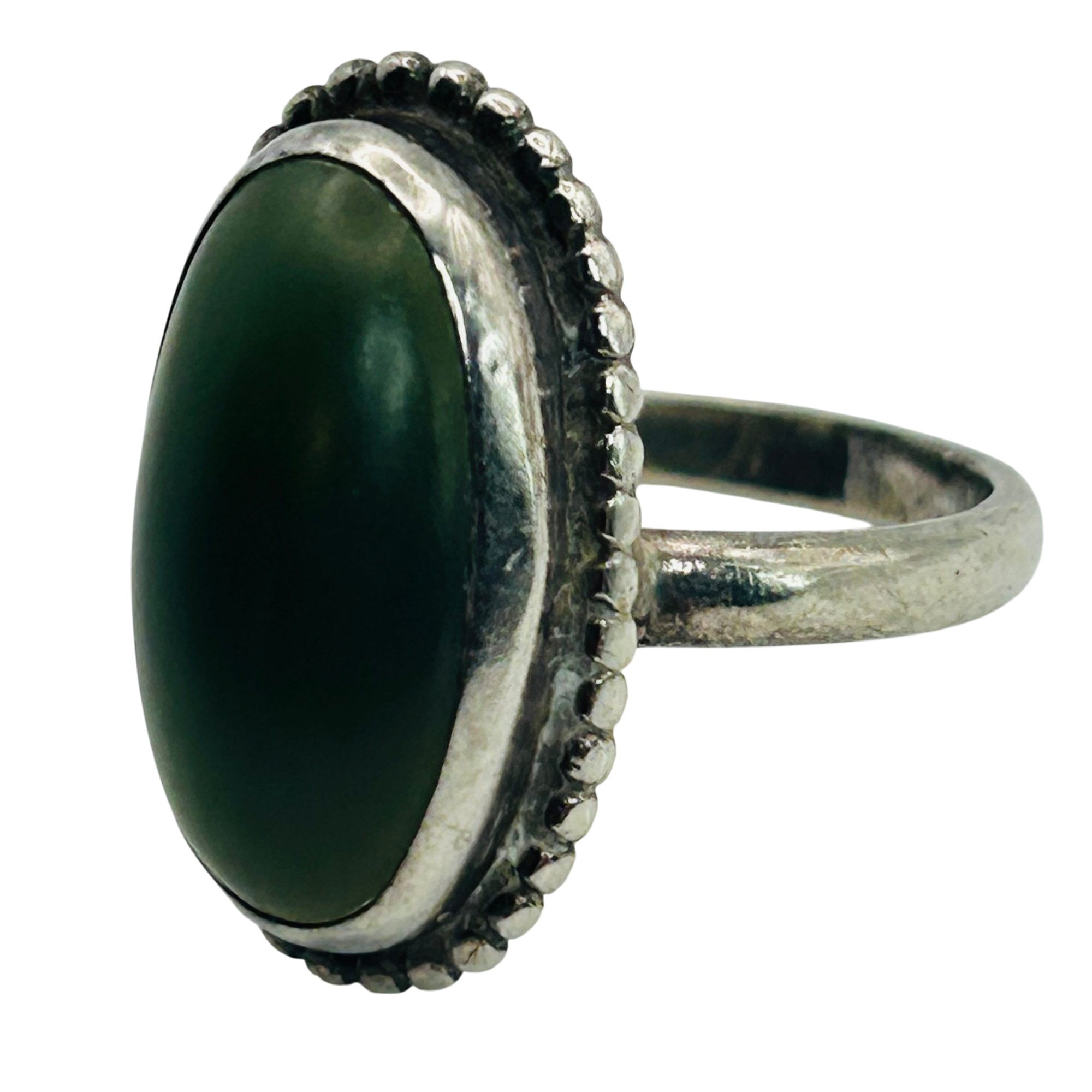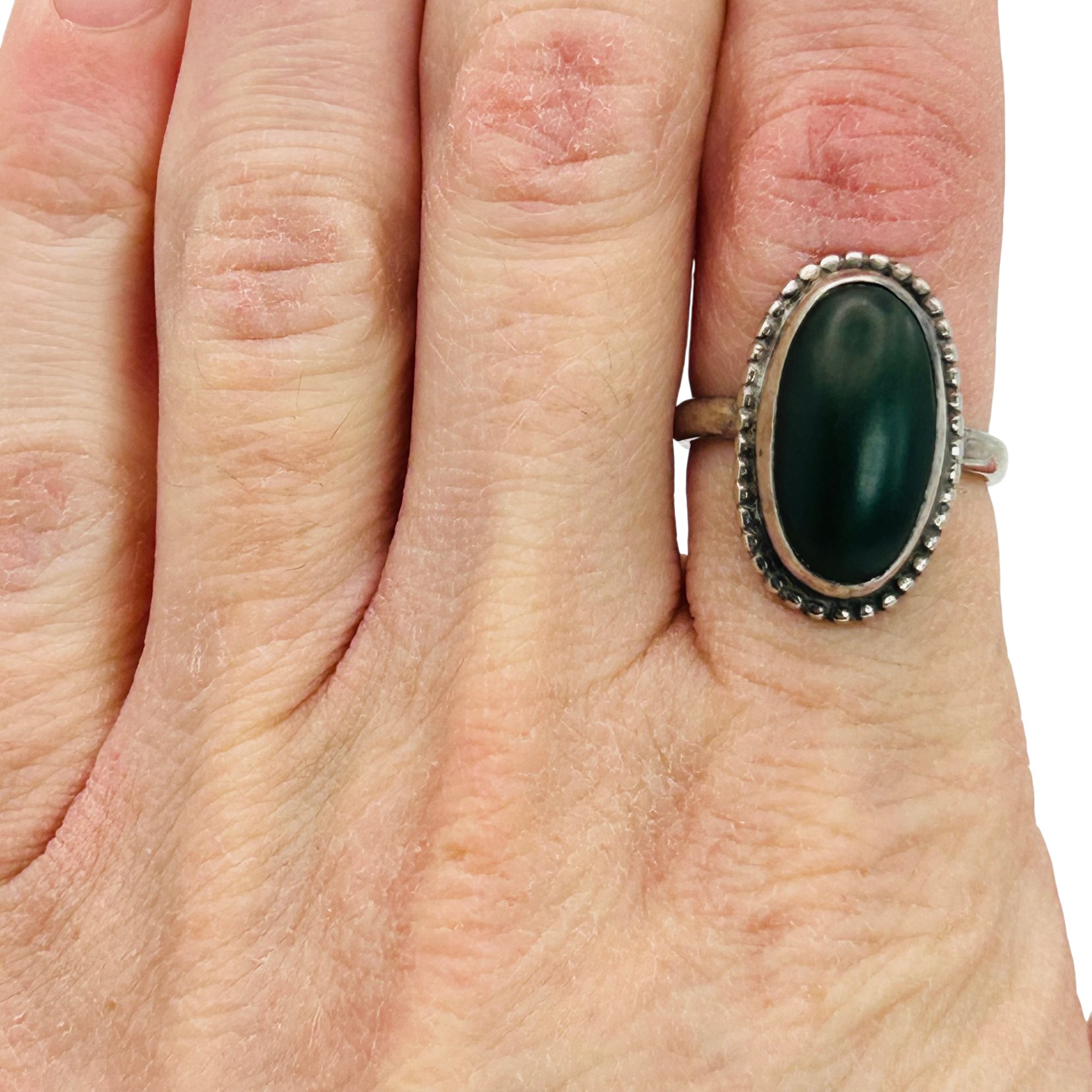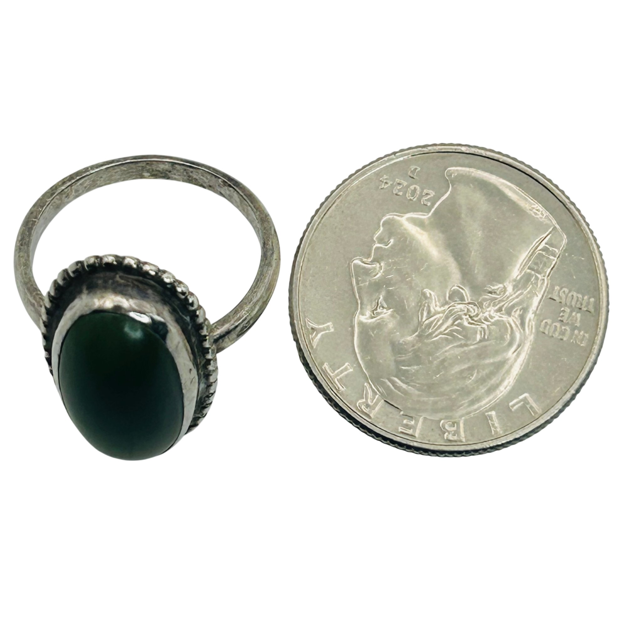 Sterling green onyx oval ring. Size 6.5. 4.30g