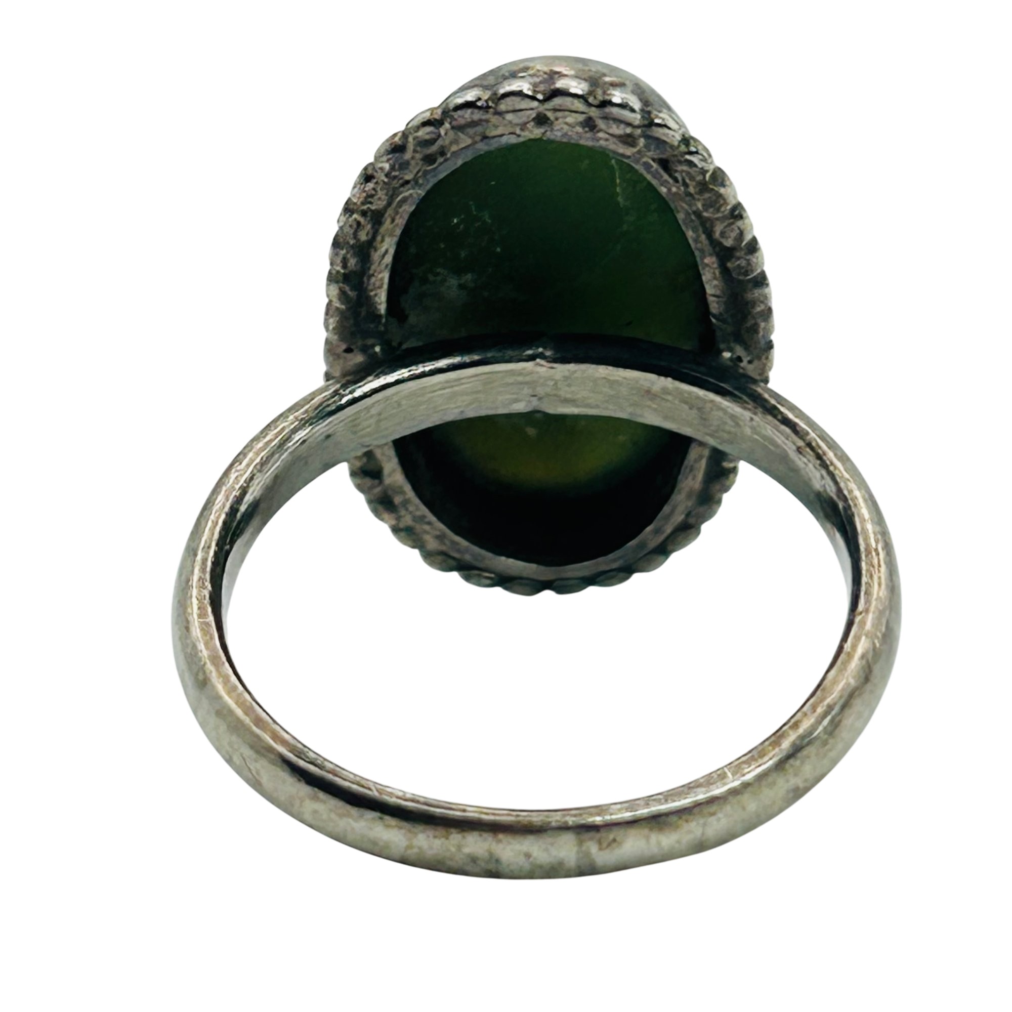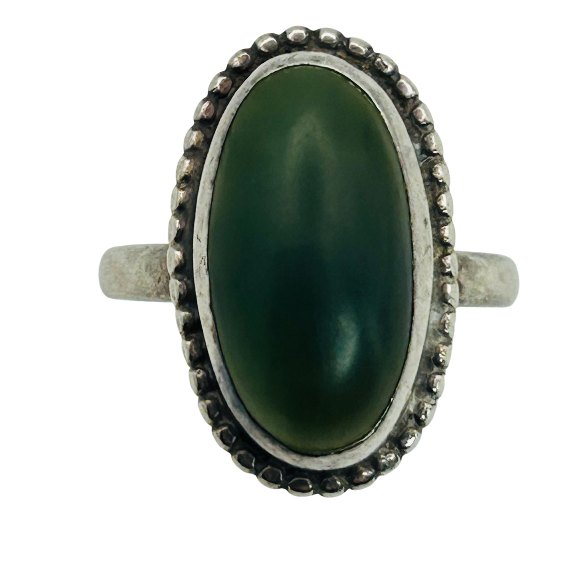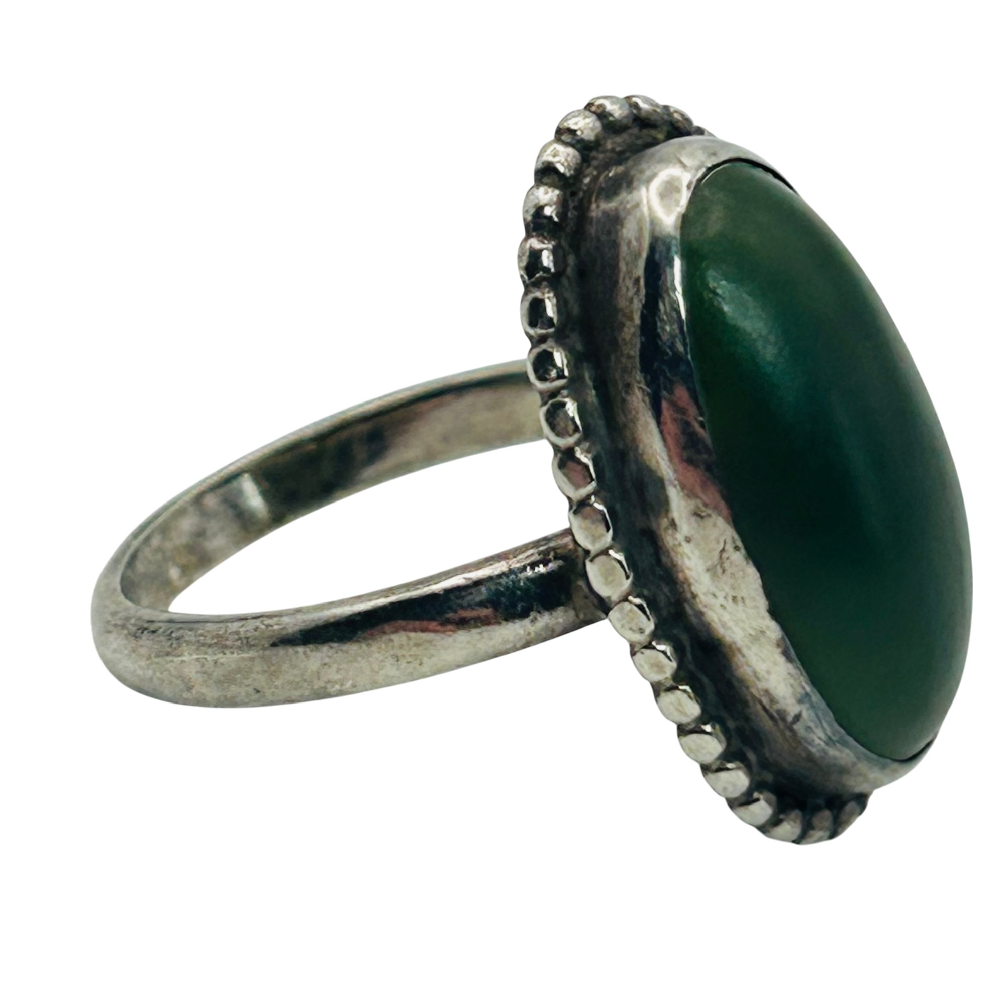Sterling green onyx oval ring. Size 6.5. 4.30g