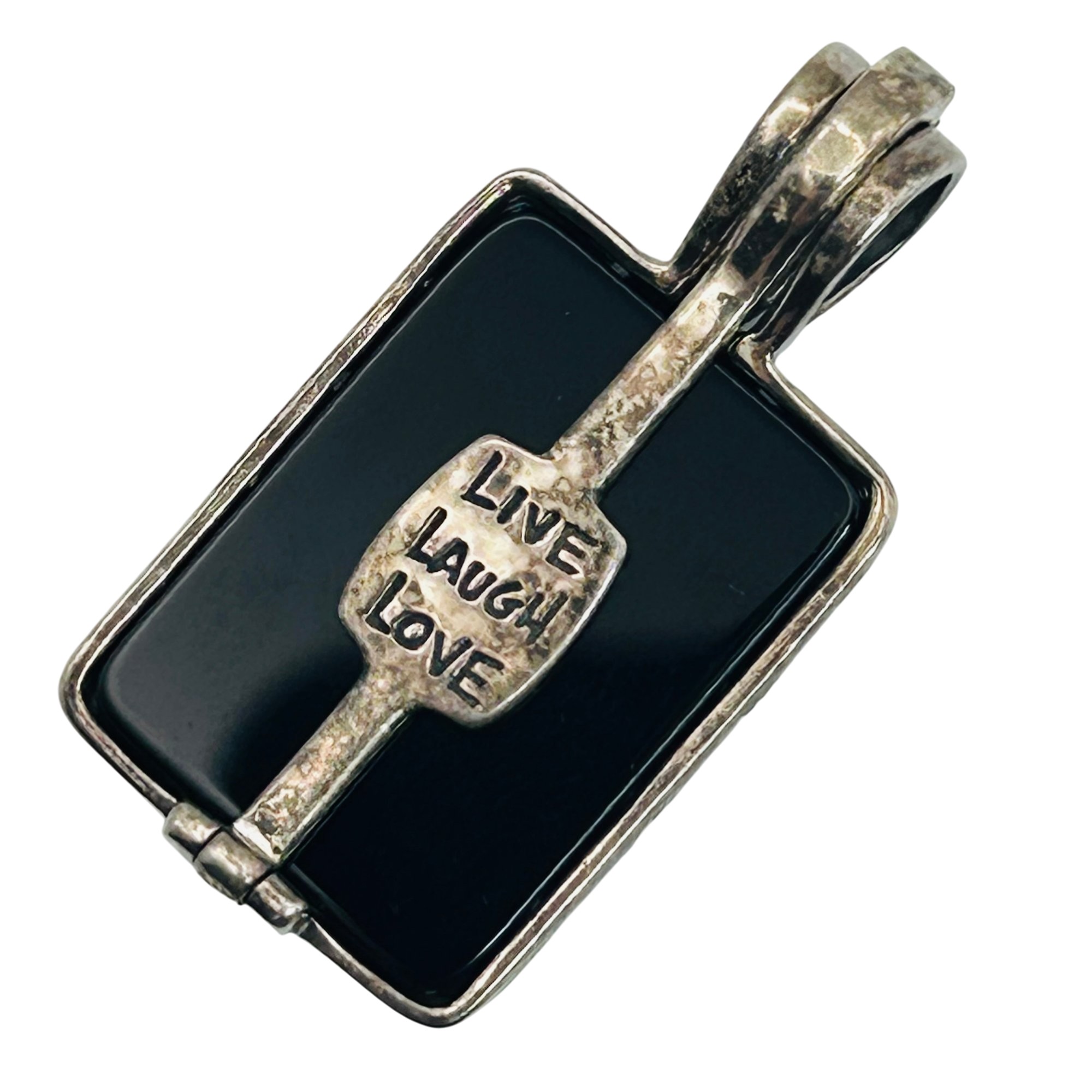 Silpada Sterling onyx tree opening mechanism pendant. Engraved live laugh love. 11.60g
