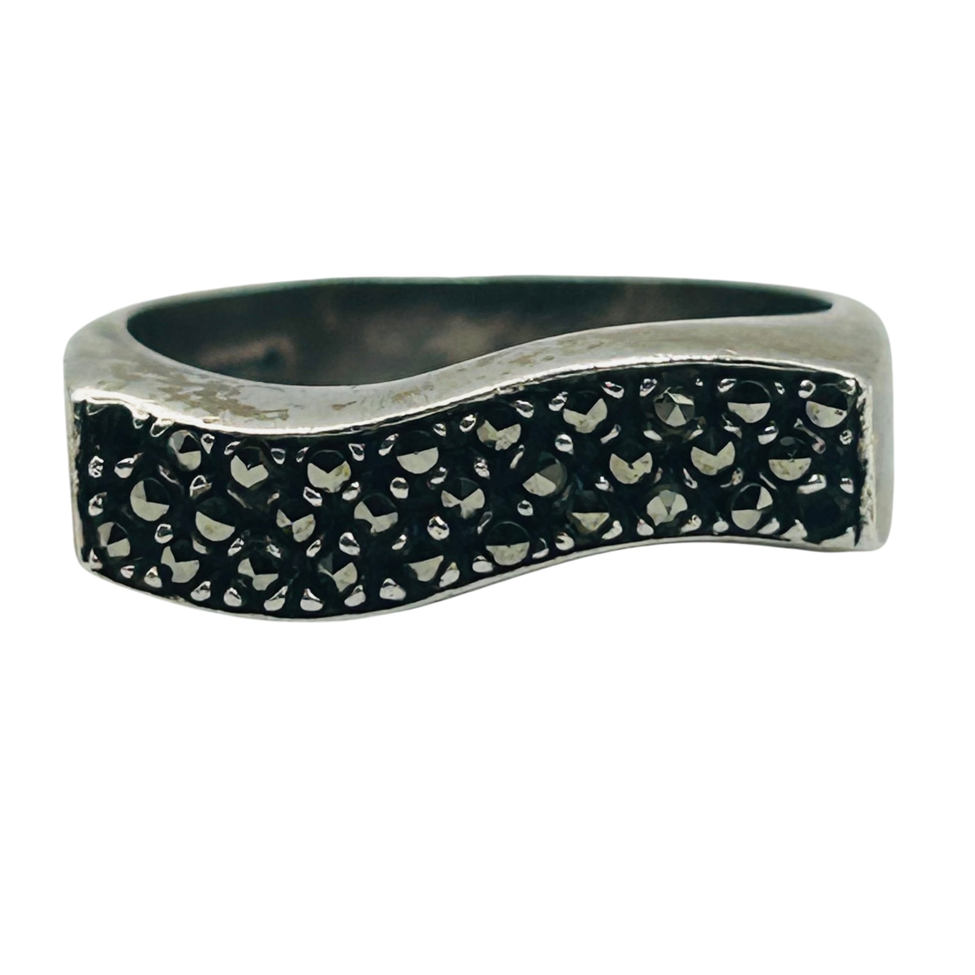 Boma Sterling marcasite flat wave ring. Size 8. 4.60g
