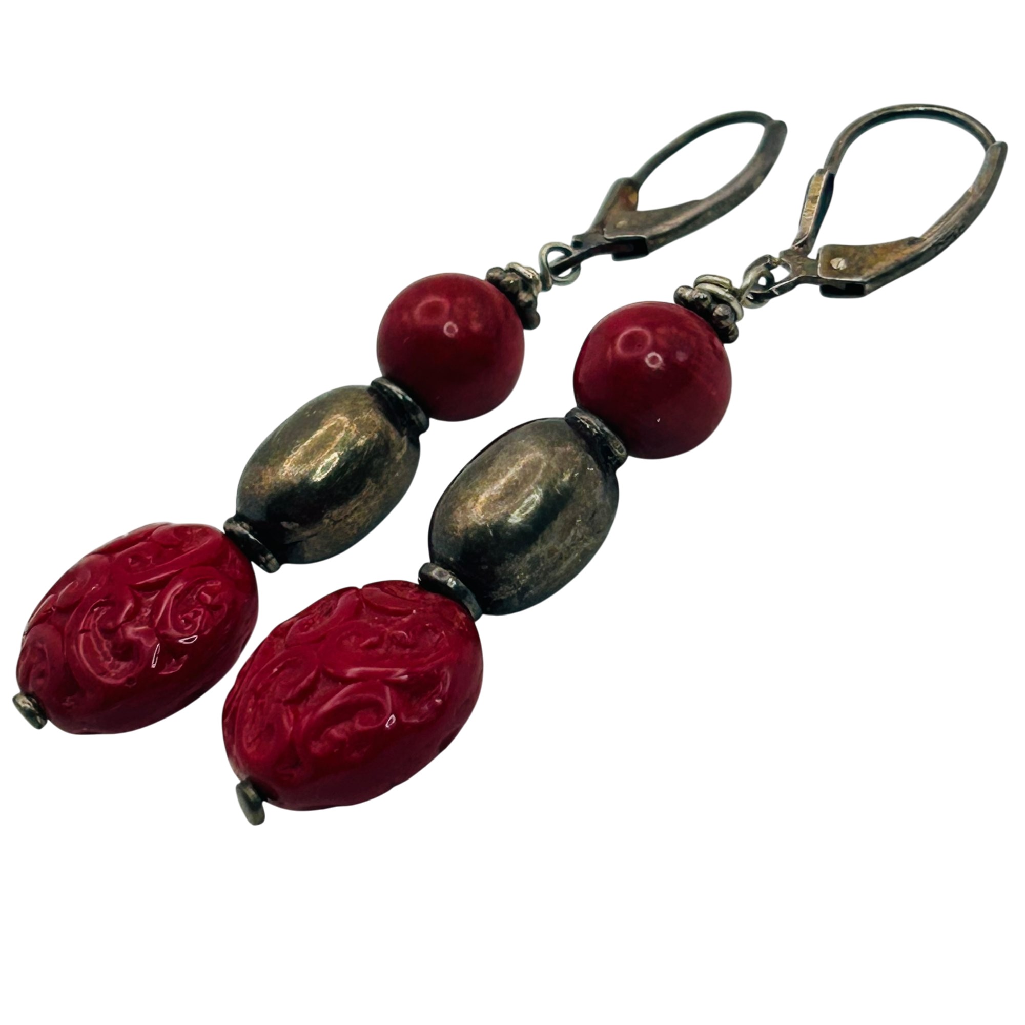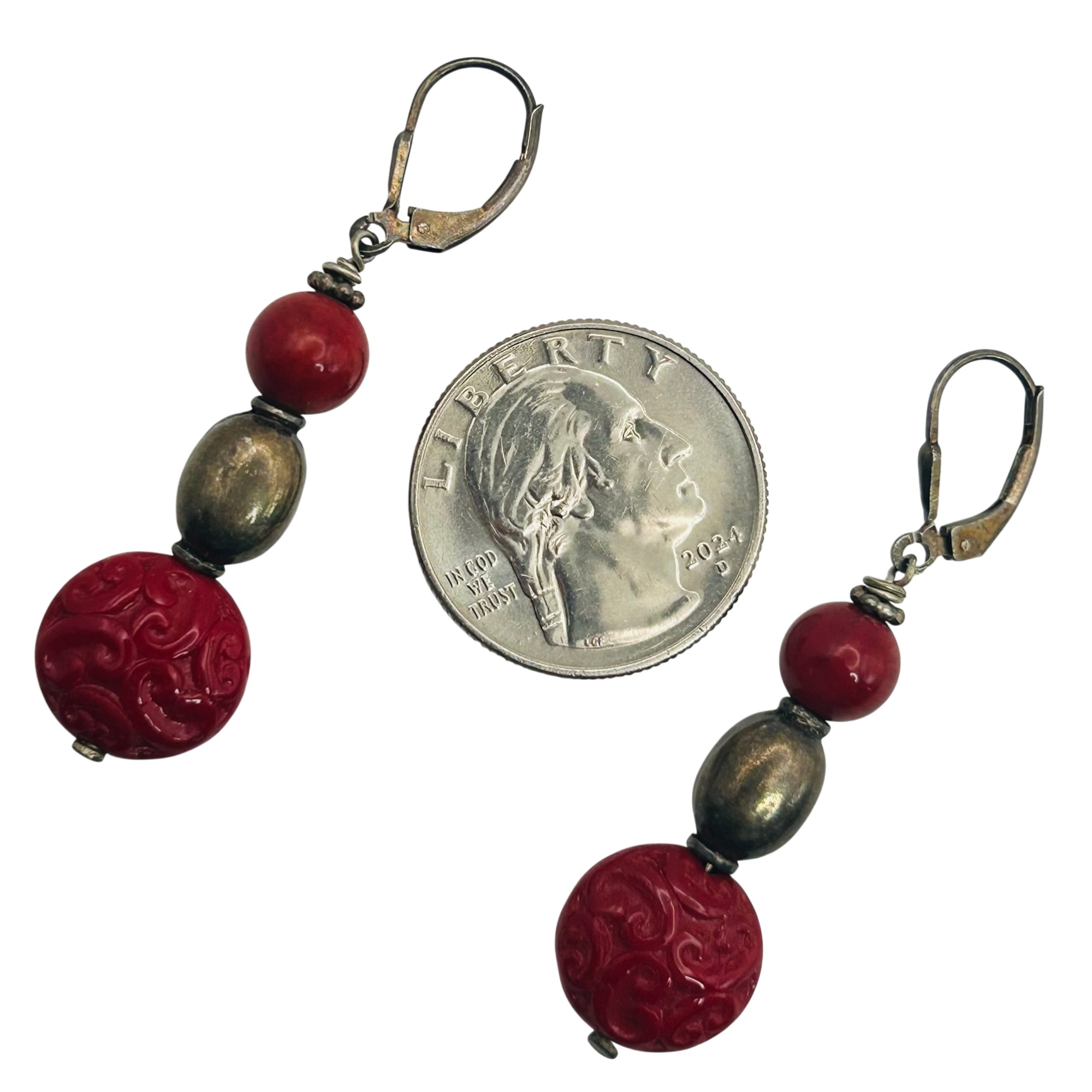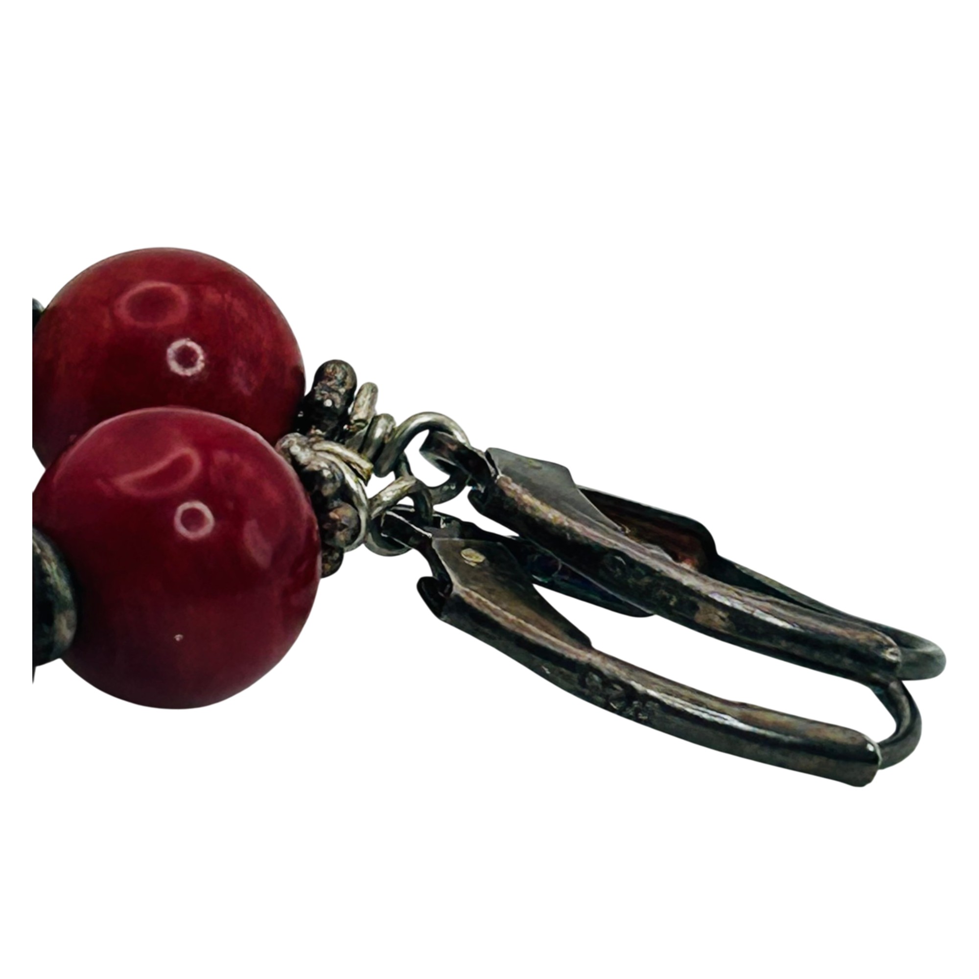 Sterling coral and bead jacket dangle earrings. 8.40g