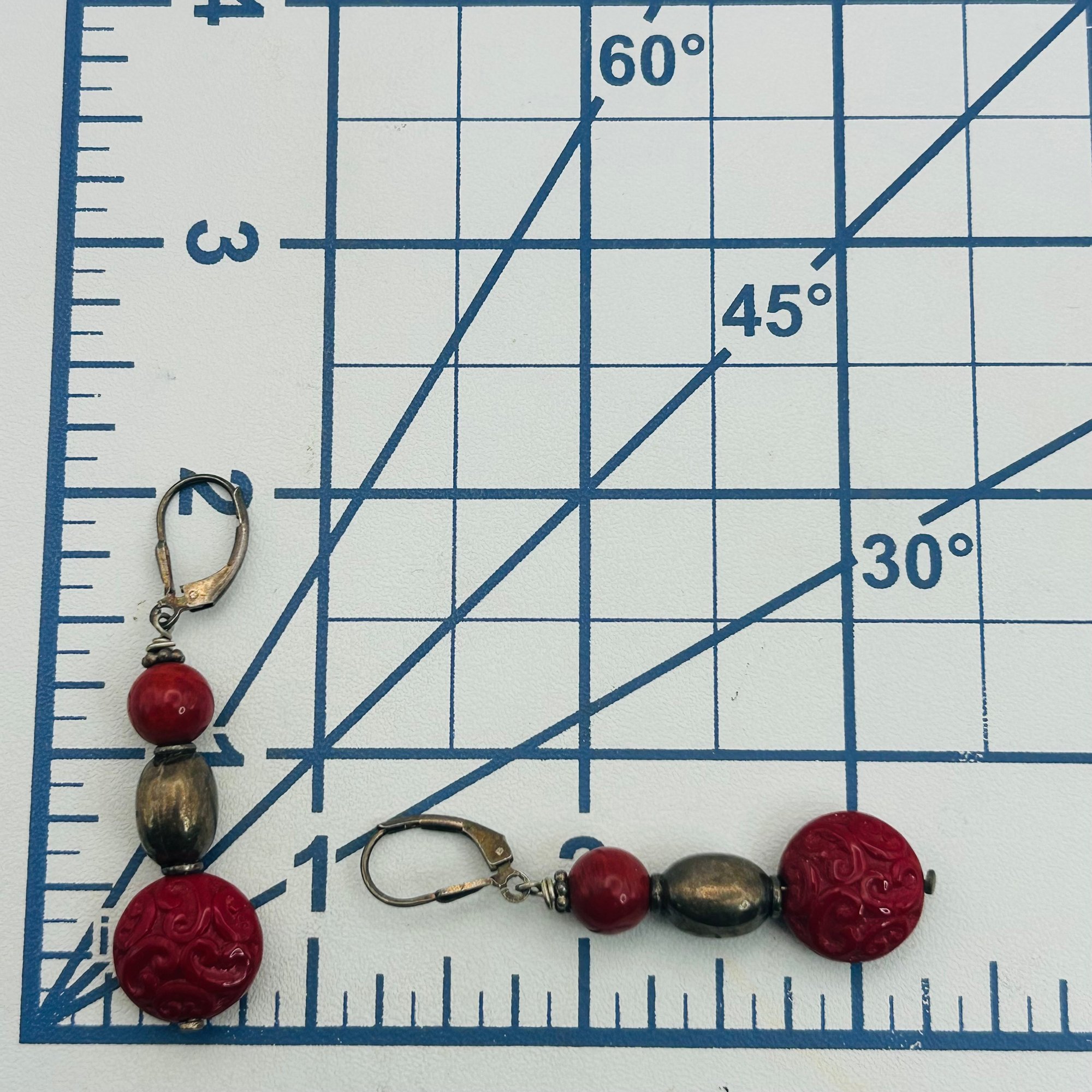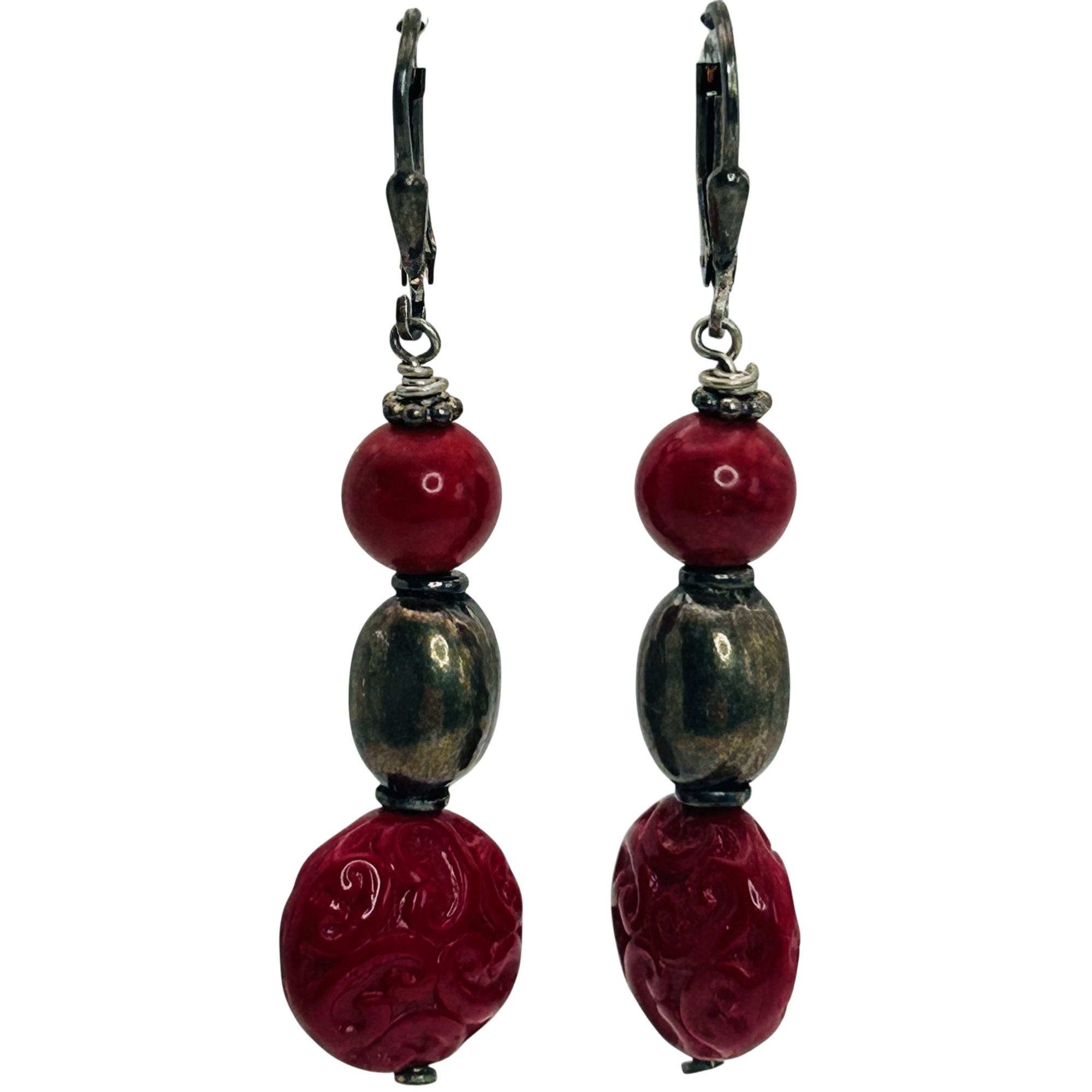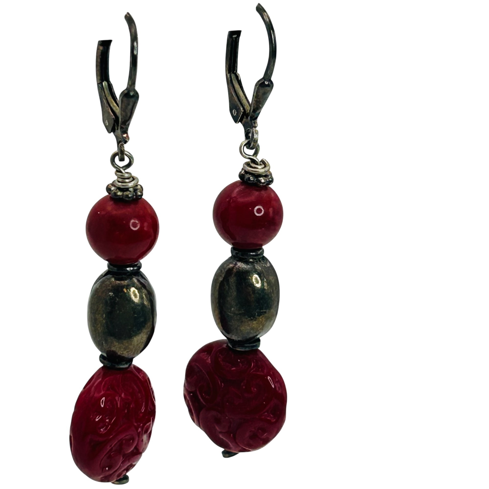 Sterling coral and bead jacket dangle earrings. 8.40g