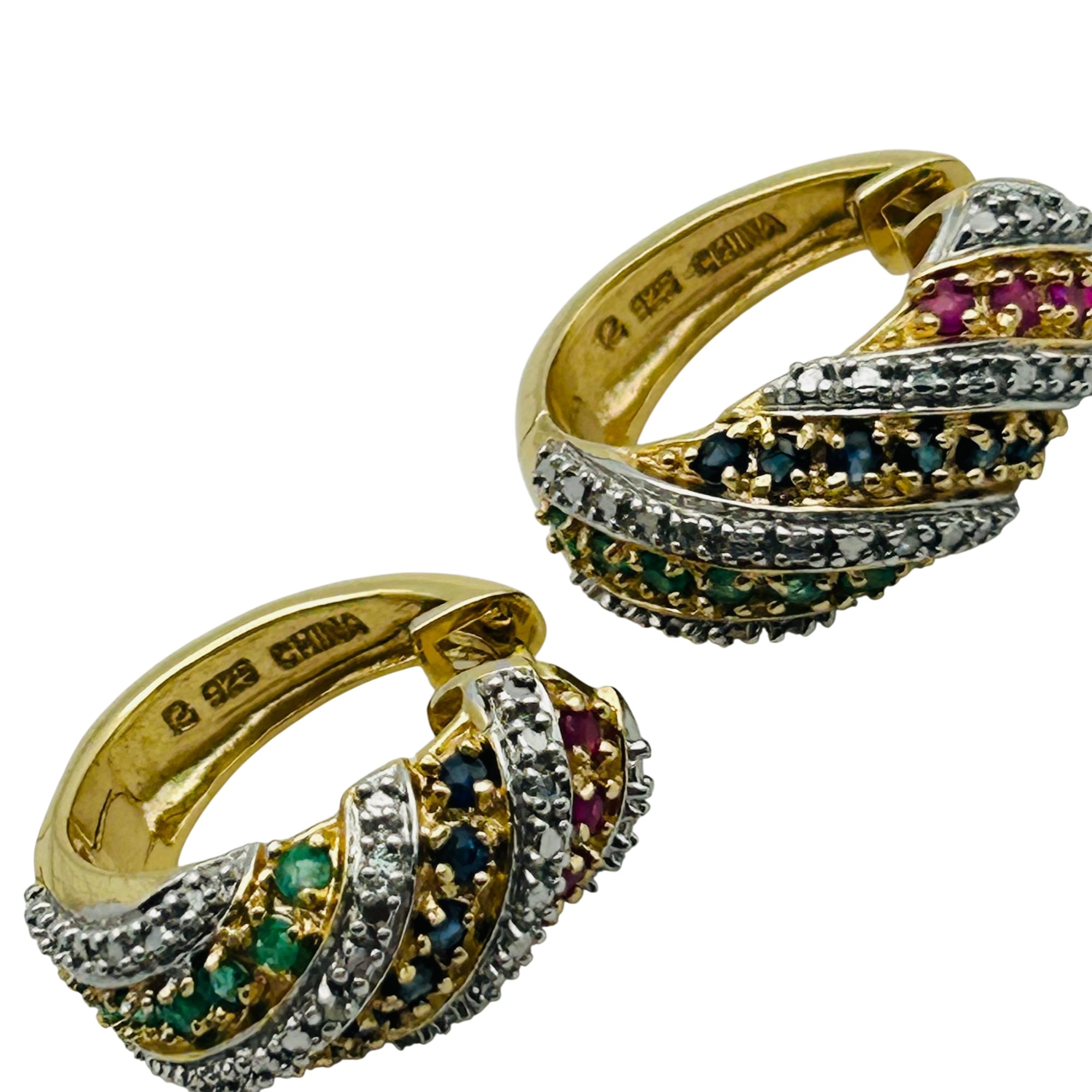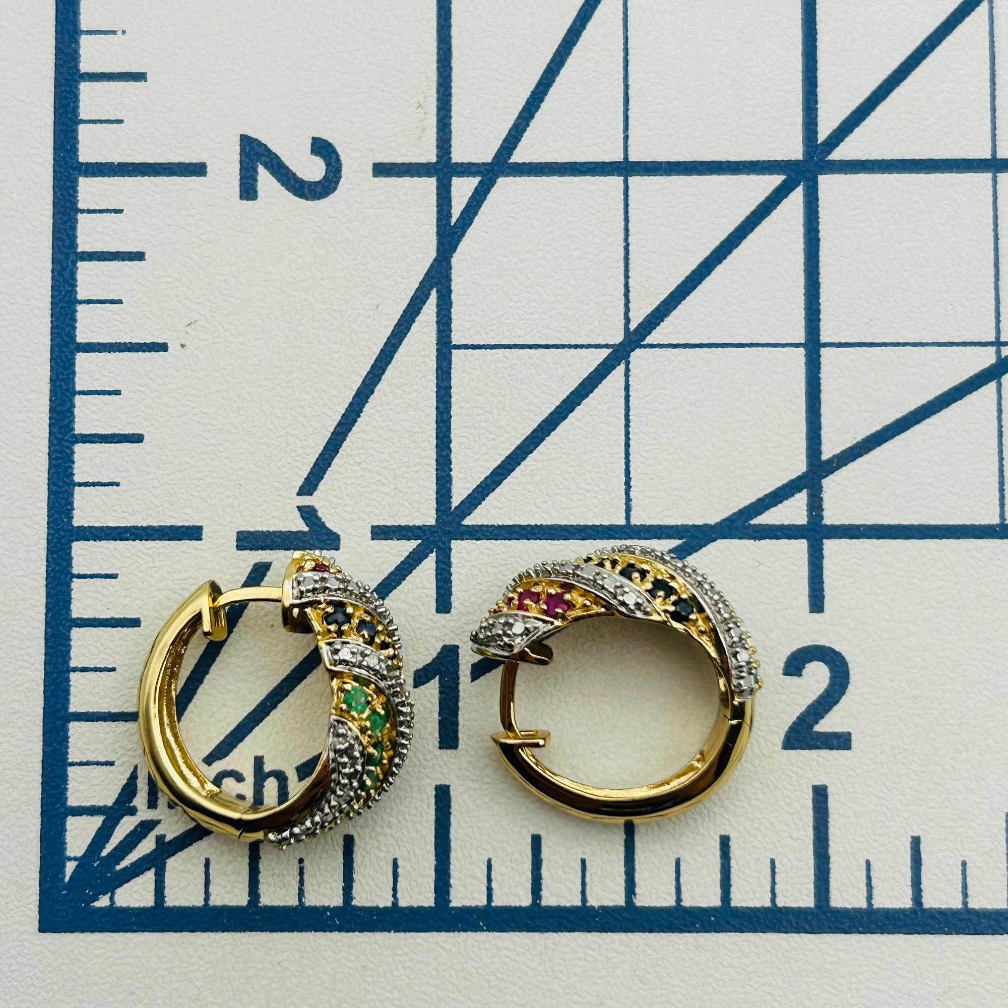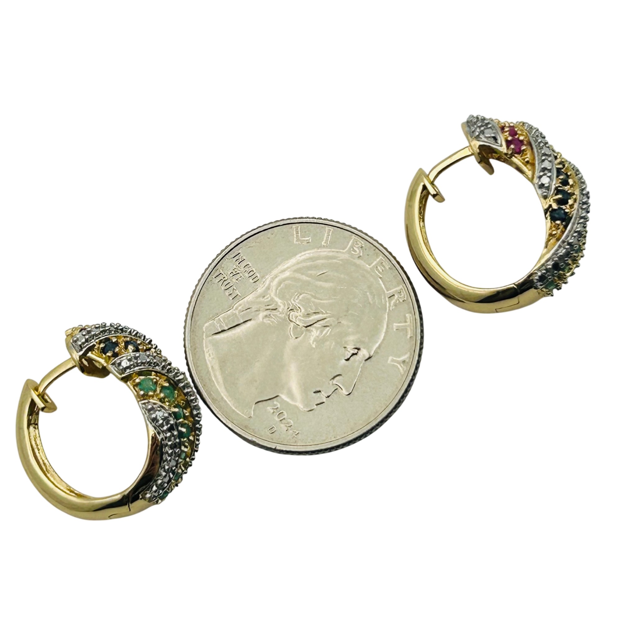 Ross Simons Sterling ruby emerald sapphire hoop earrings. 6.30g