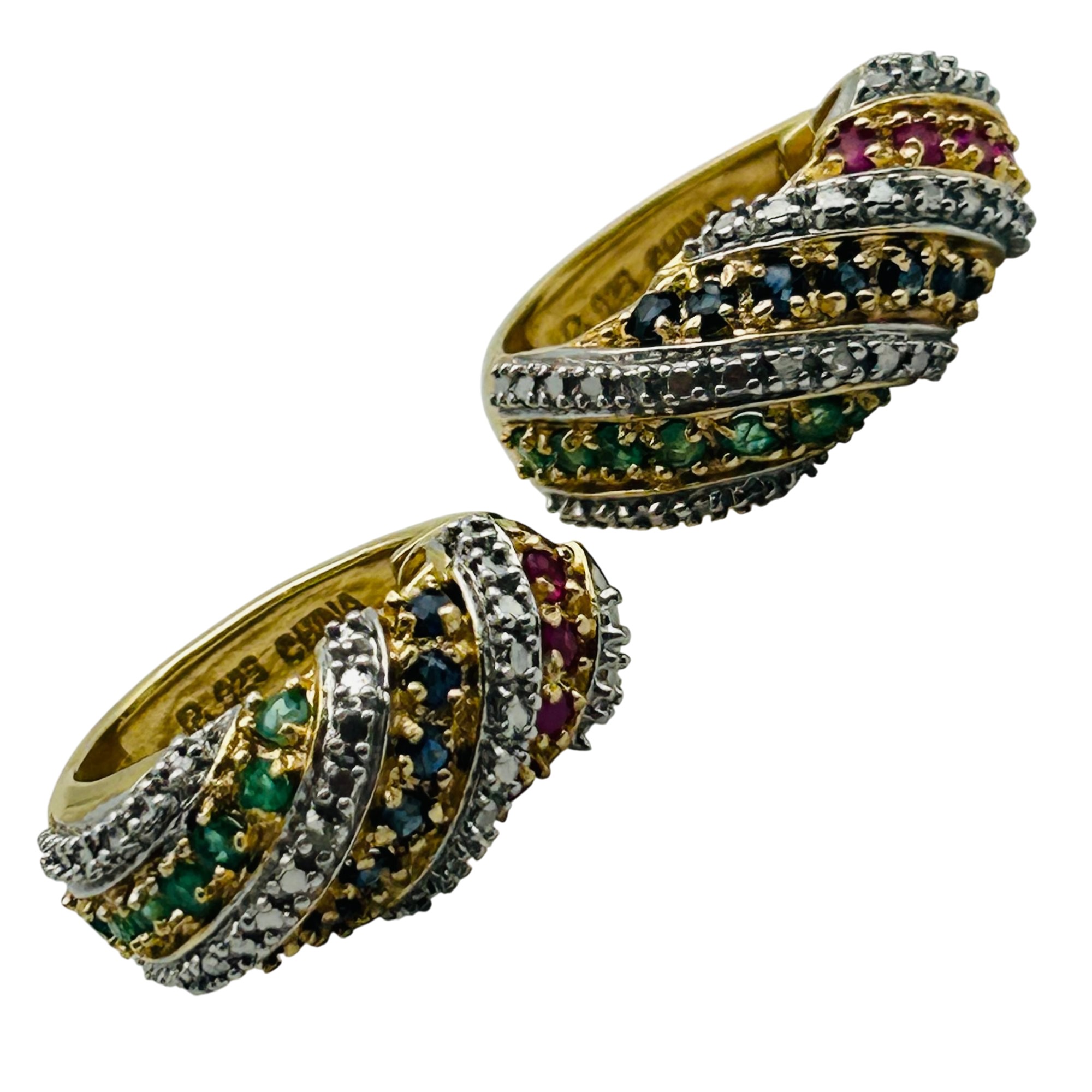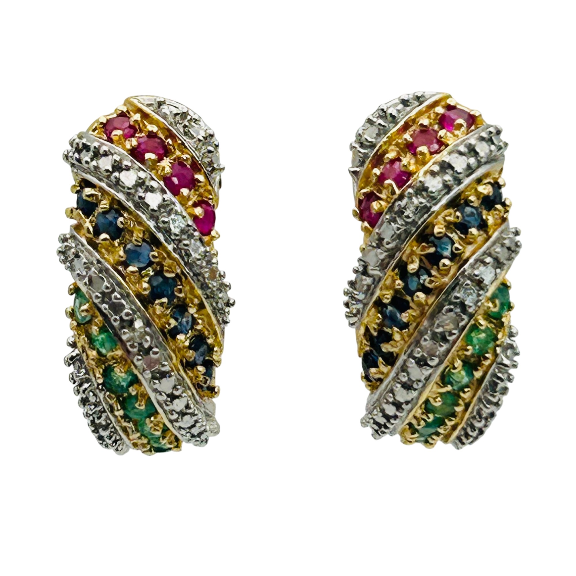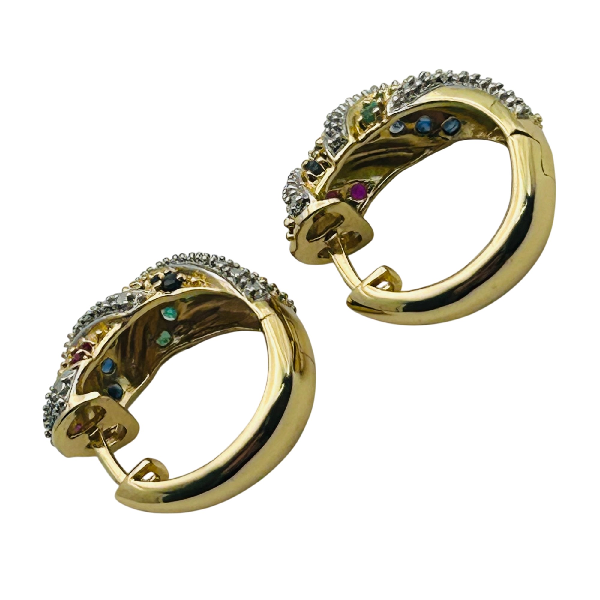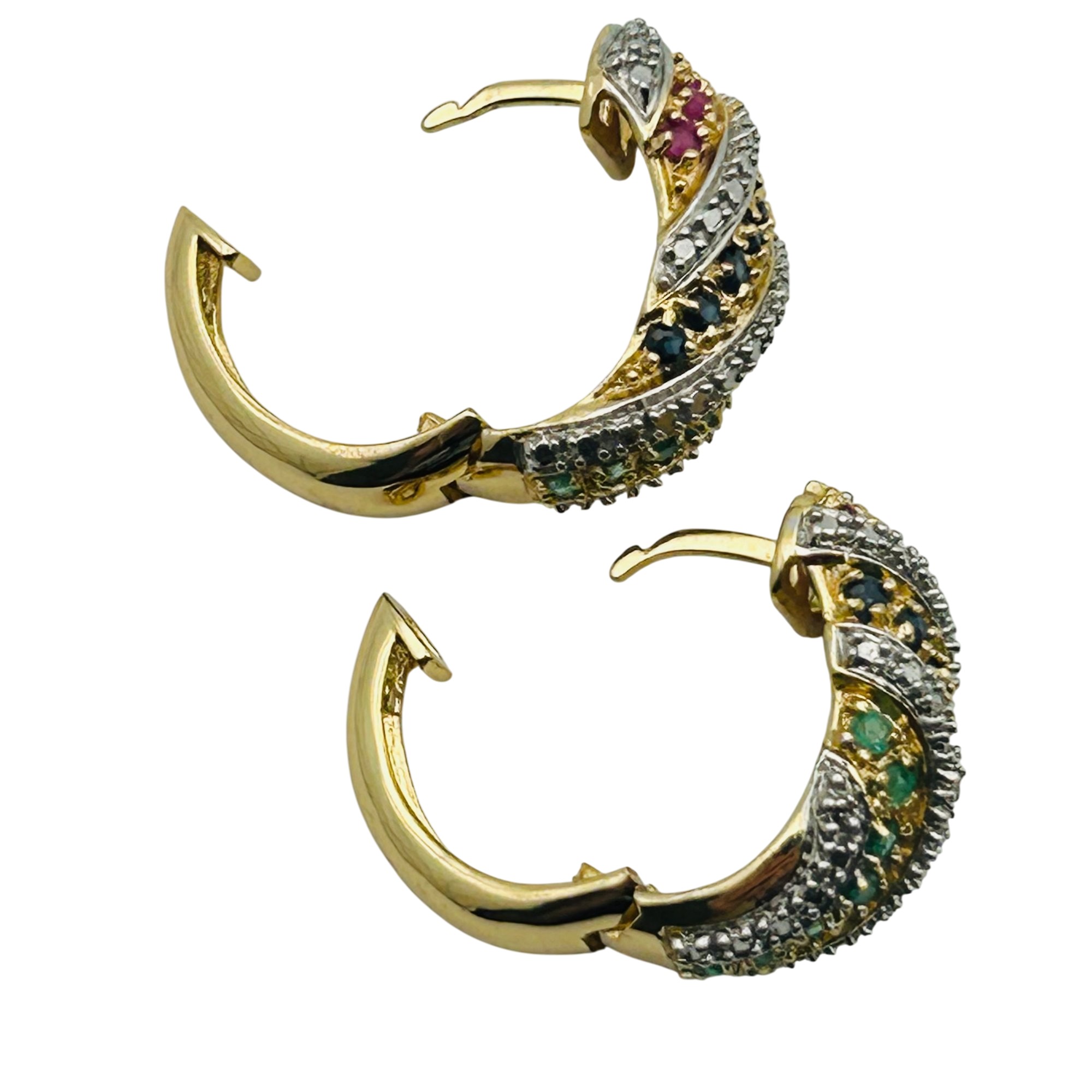 Ross Simons Sterling ruby emerald sapphire hoop earrings. 6.30g