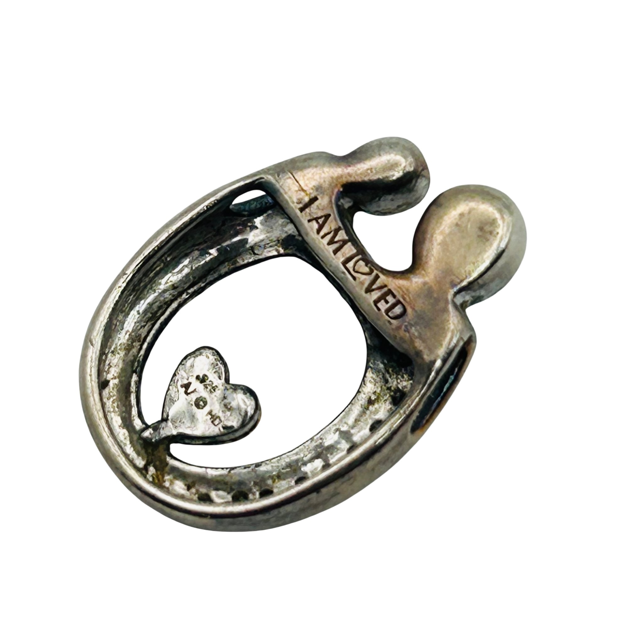 AJ-HD Sterling 14k sapphire mother and child pendant. Engraved I am loved. 2.60g