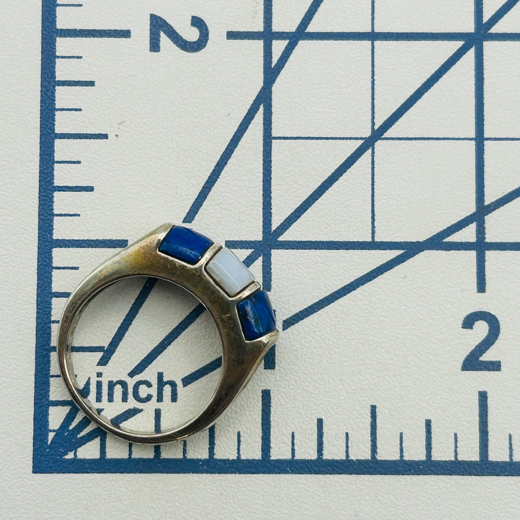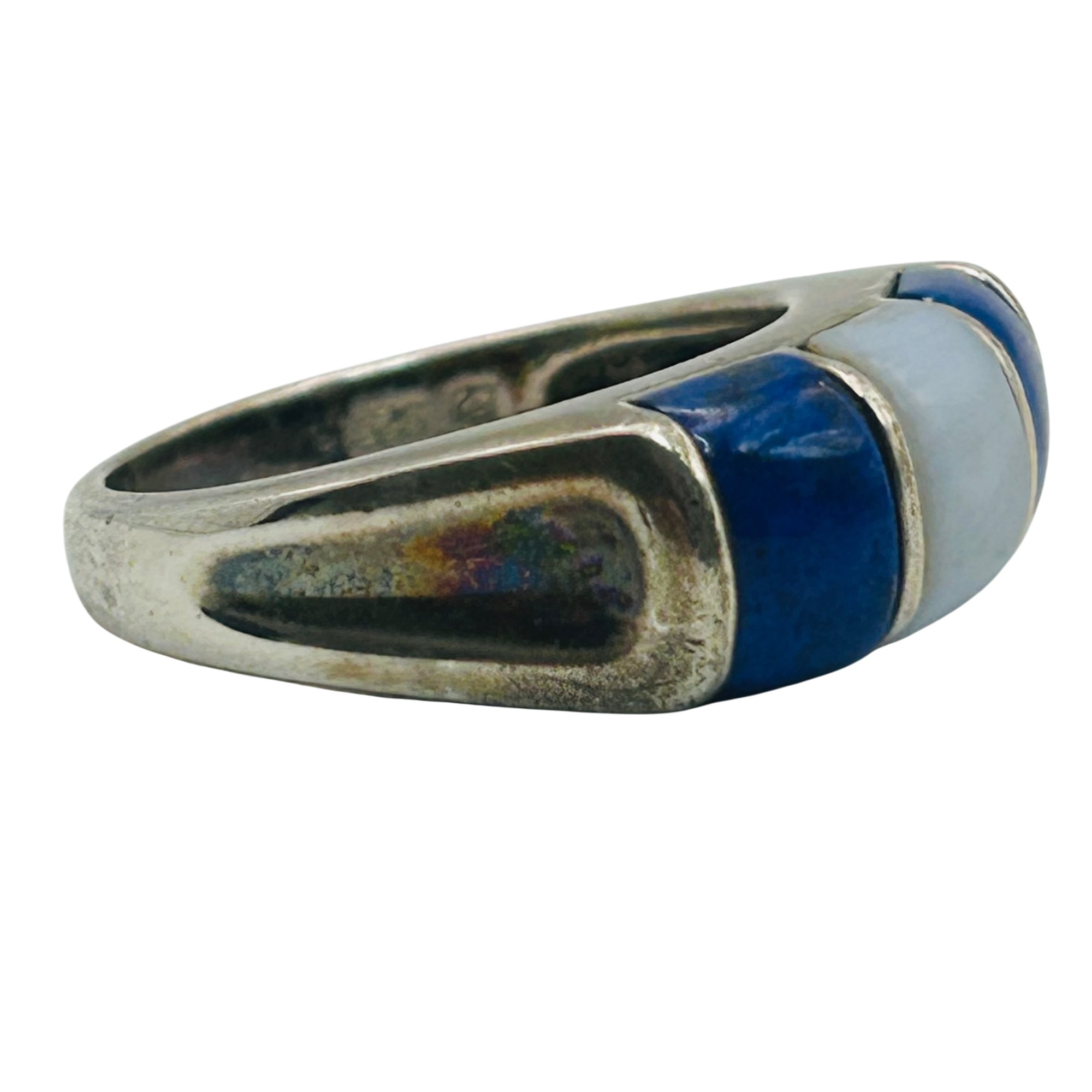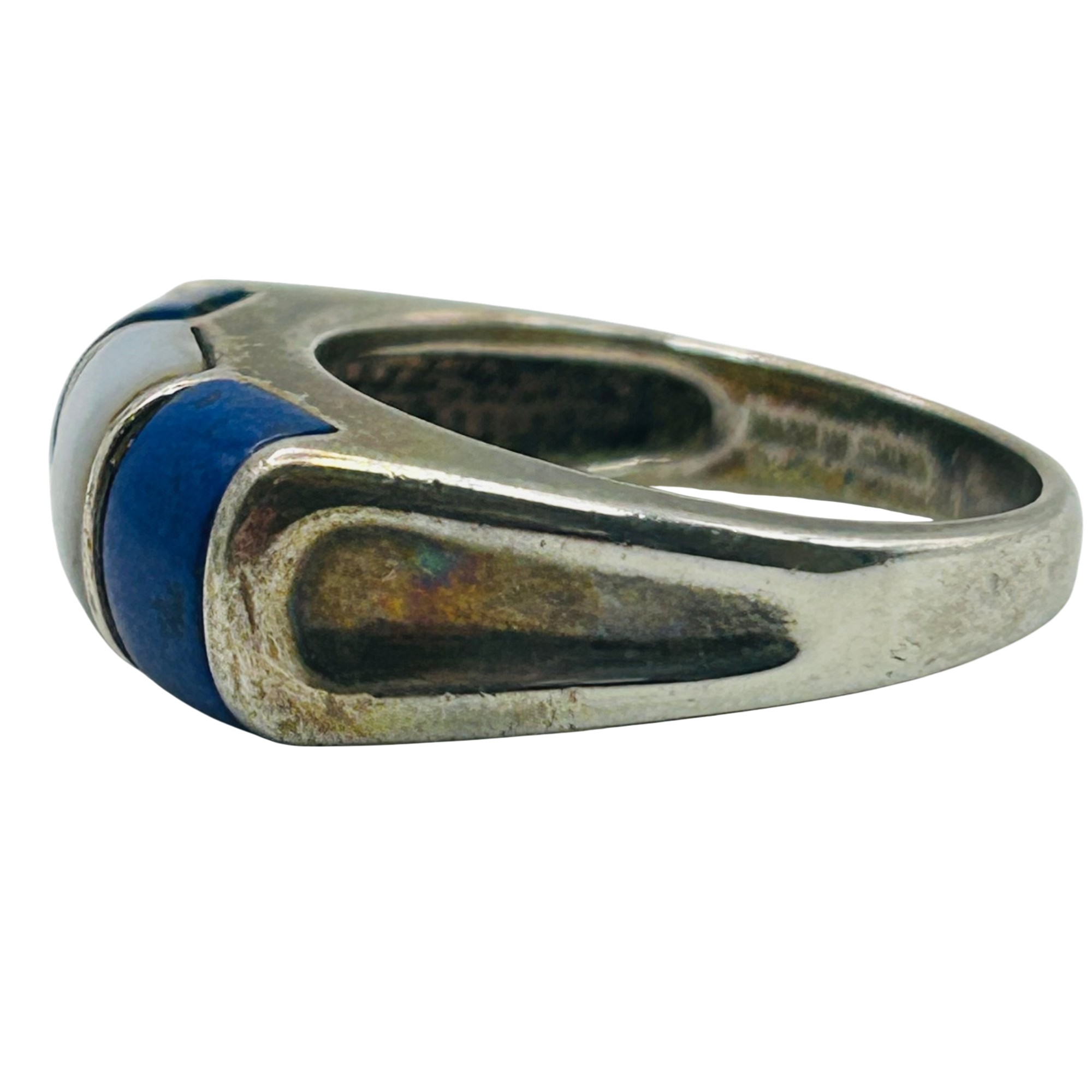 Sterling lapis lazuli mother of pearl inlay ring. Size 8. 7.00g