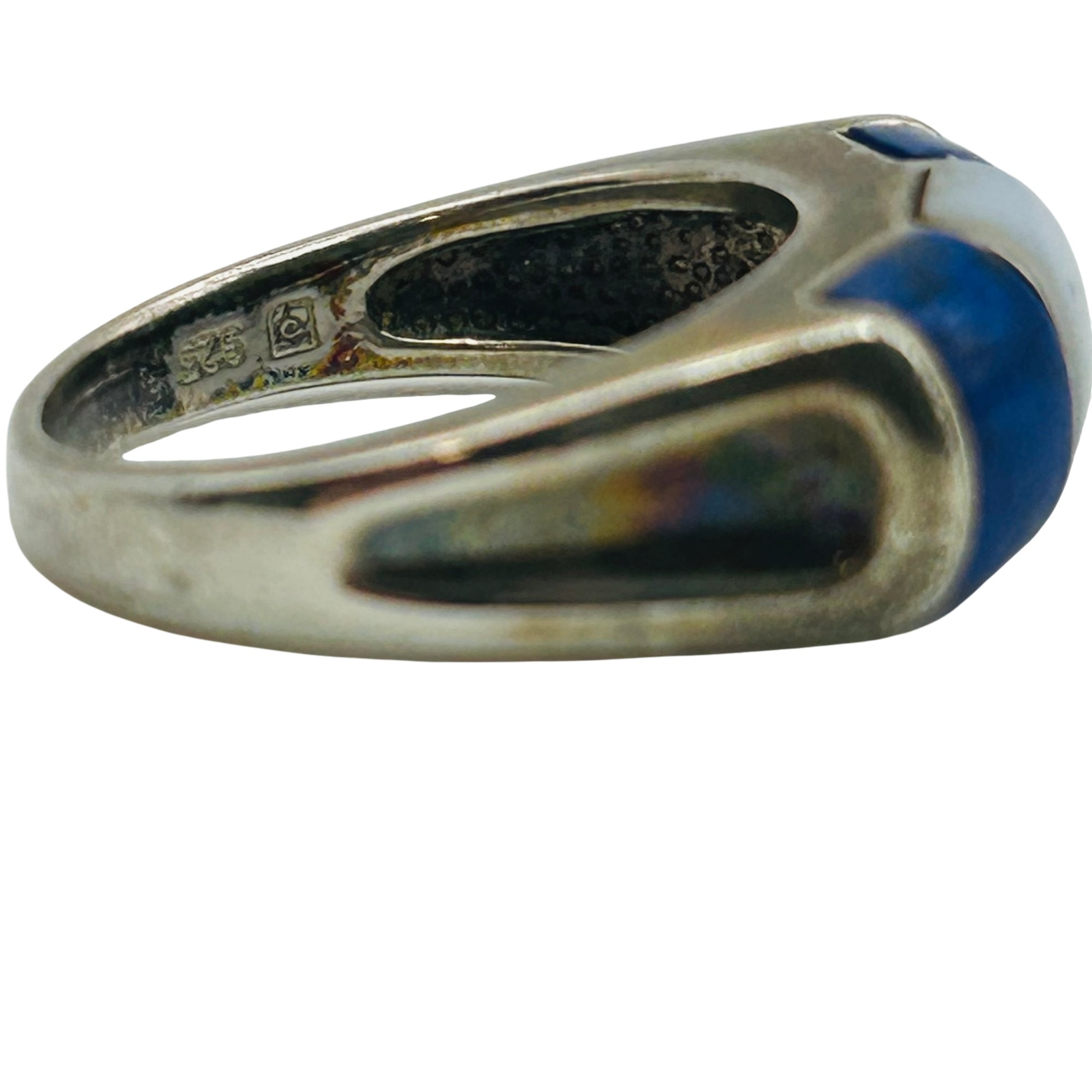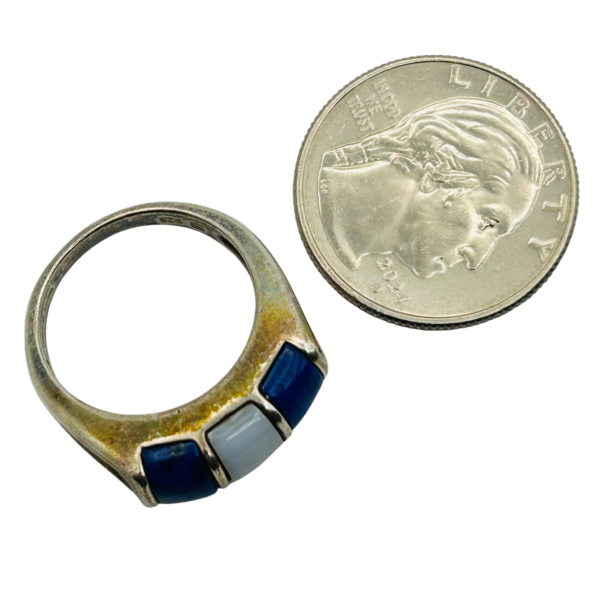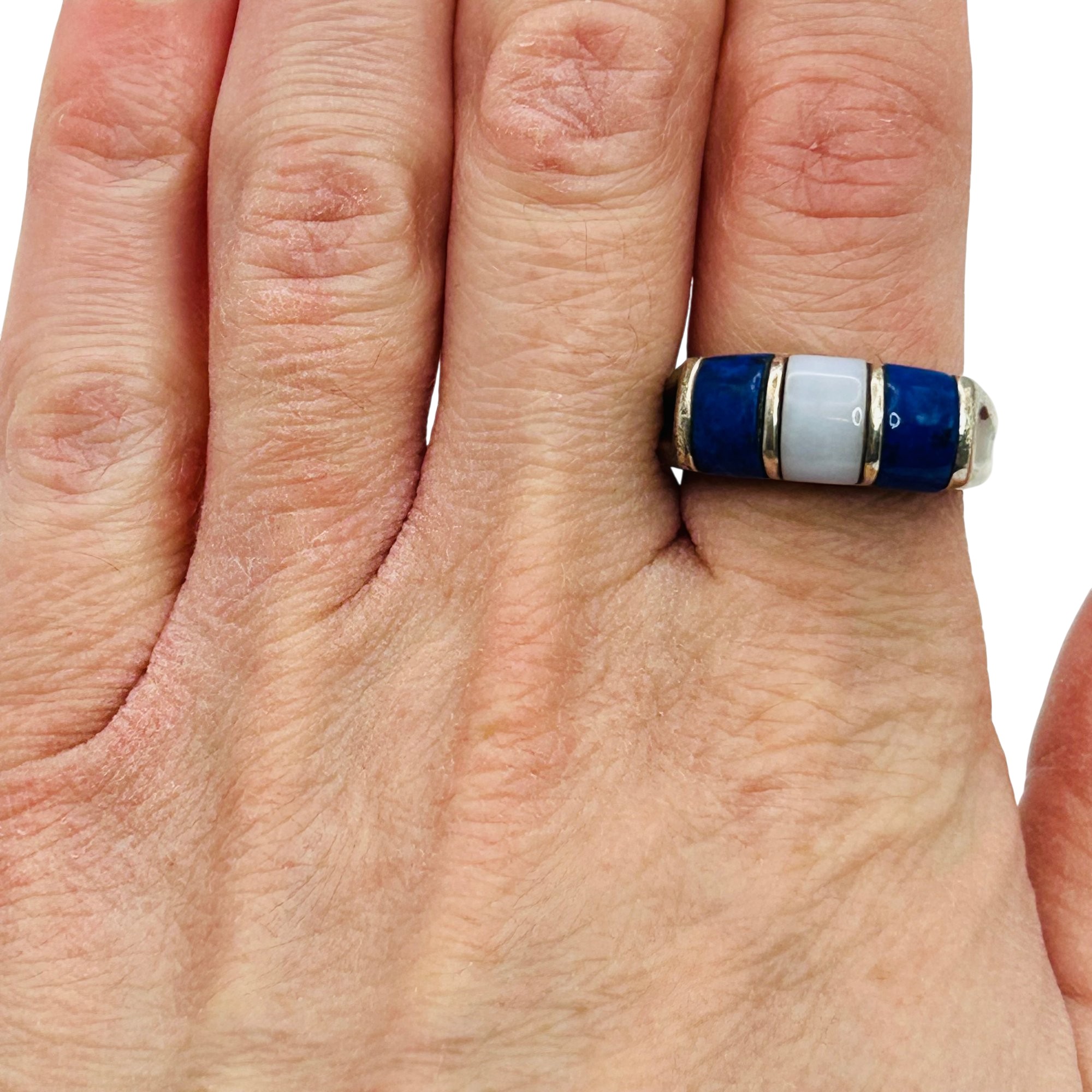 Sterling lapis lazuli mother of pearl inlay ring. Size 8. 7.00g