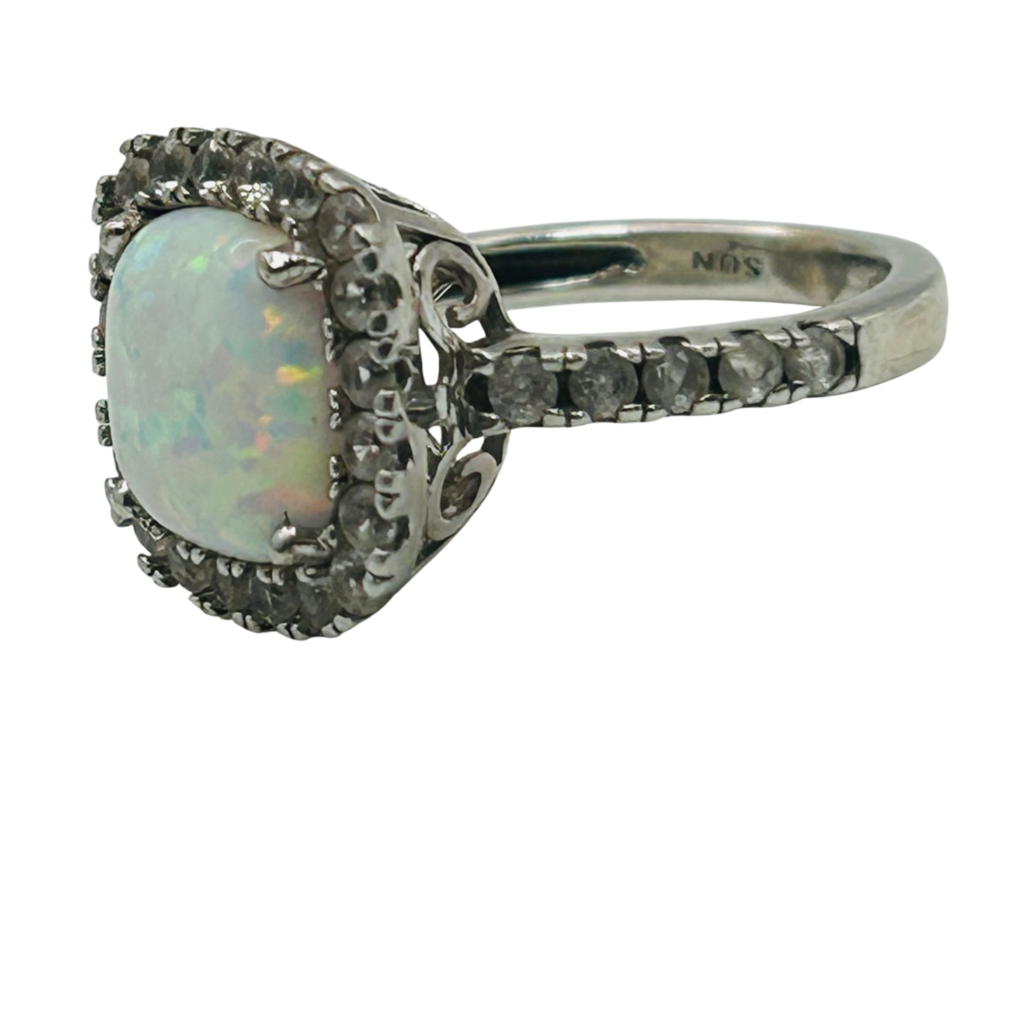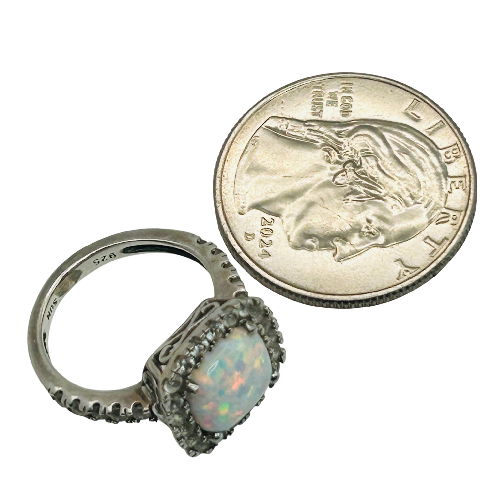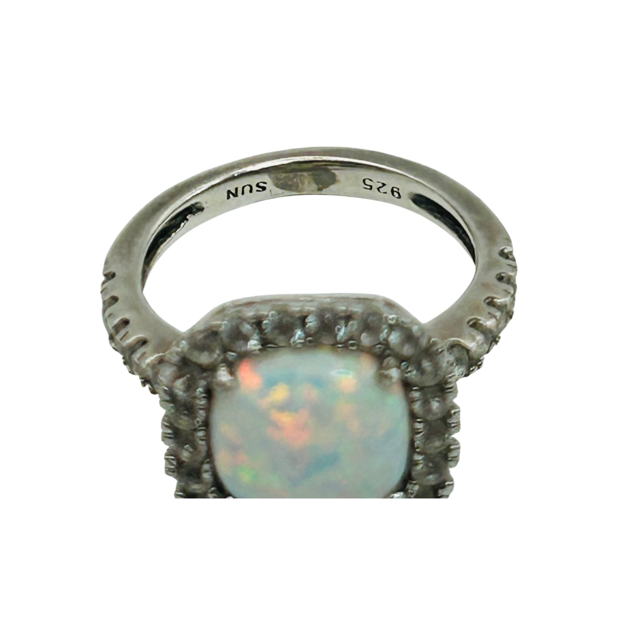 Sterling Opal and topaz halo set ring. Size 5. 3.20g