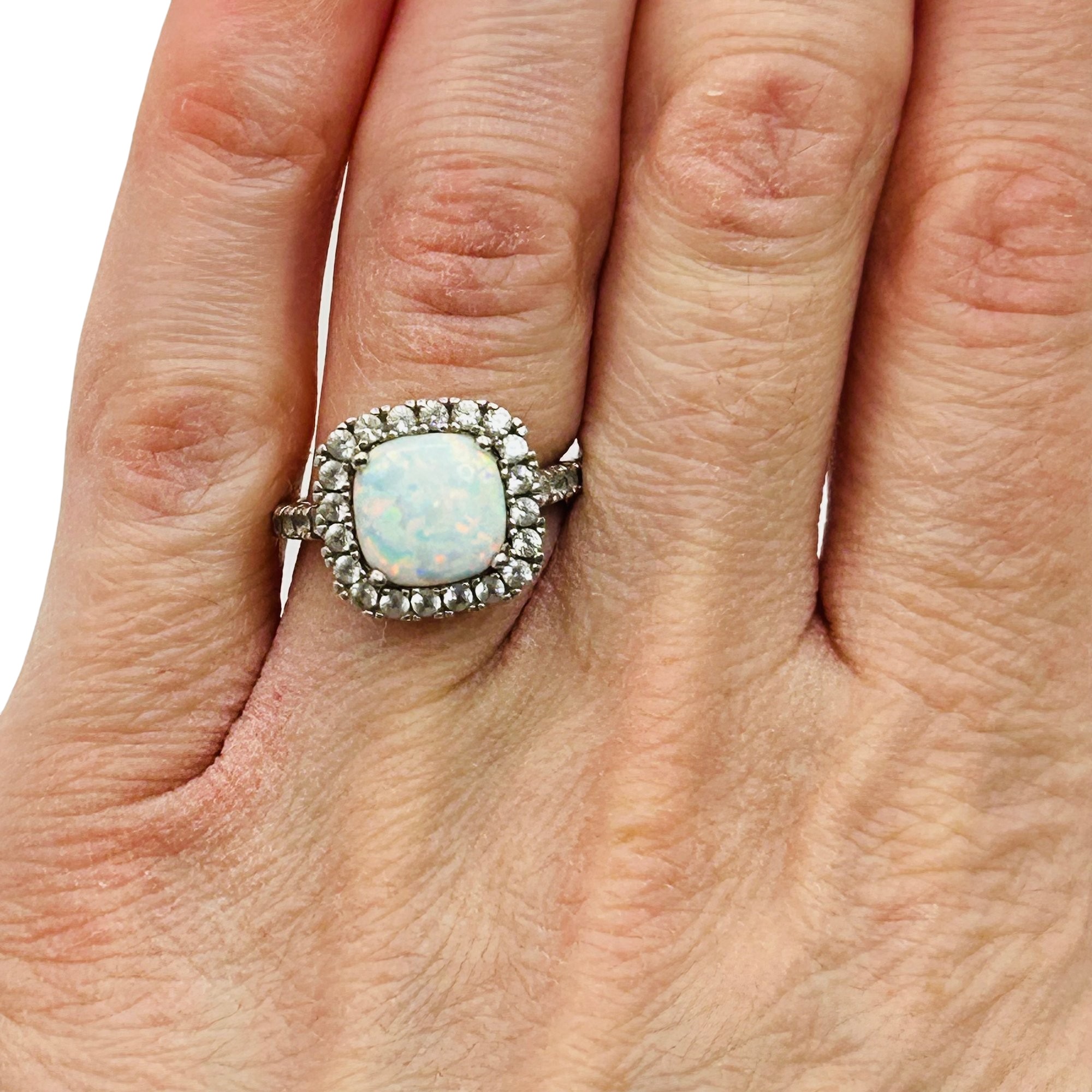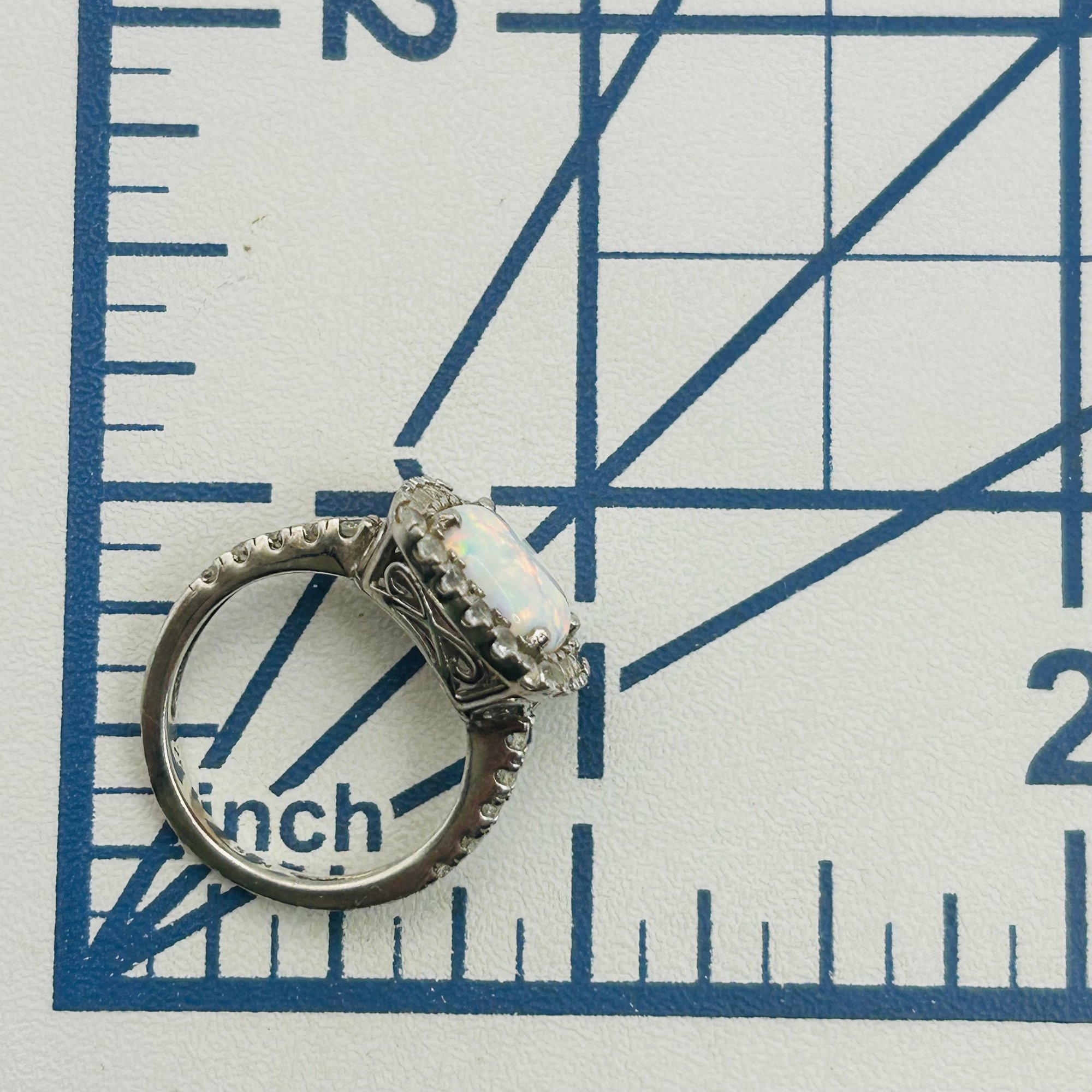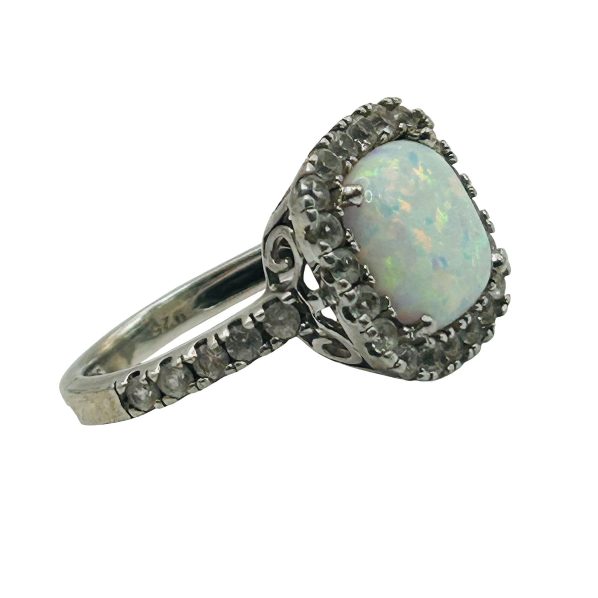 Sterling Opal and topaz halo set ring. Size 5. 3.20g