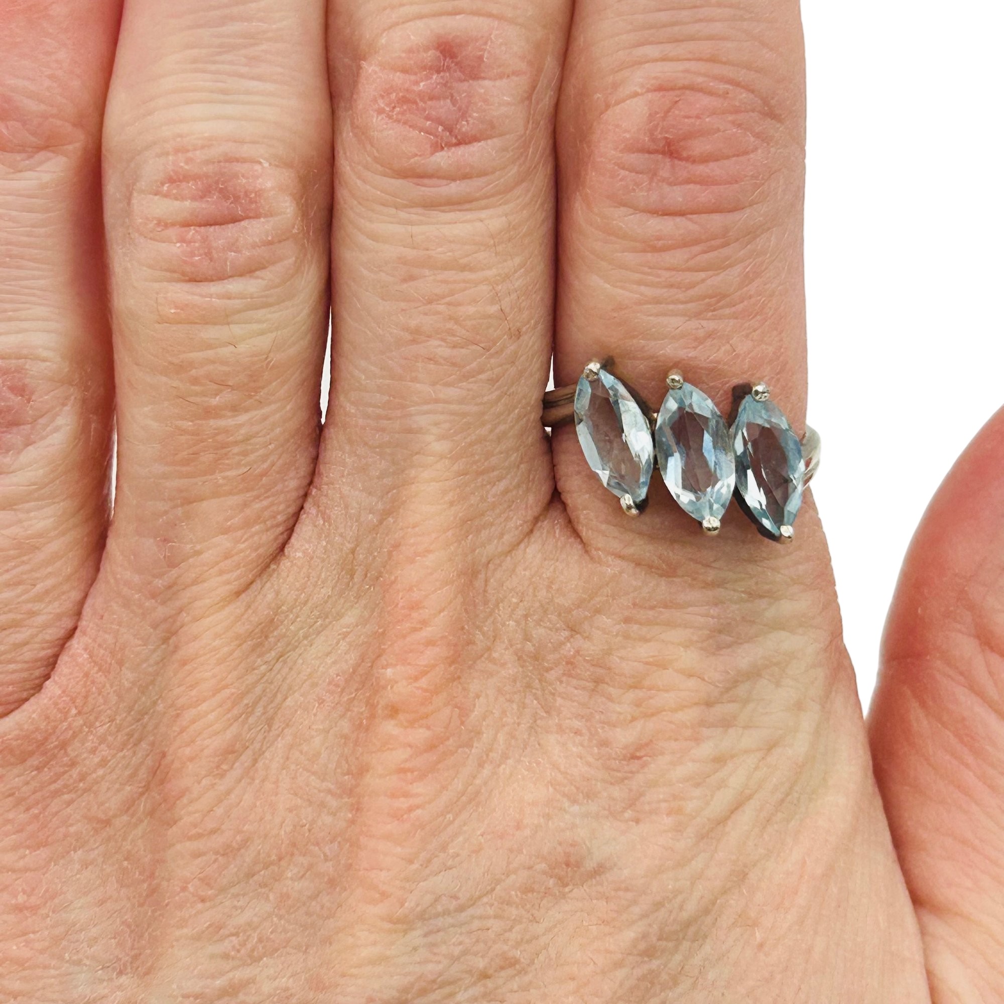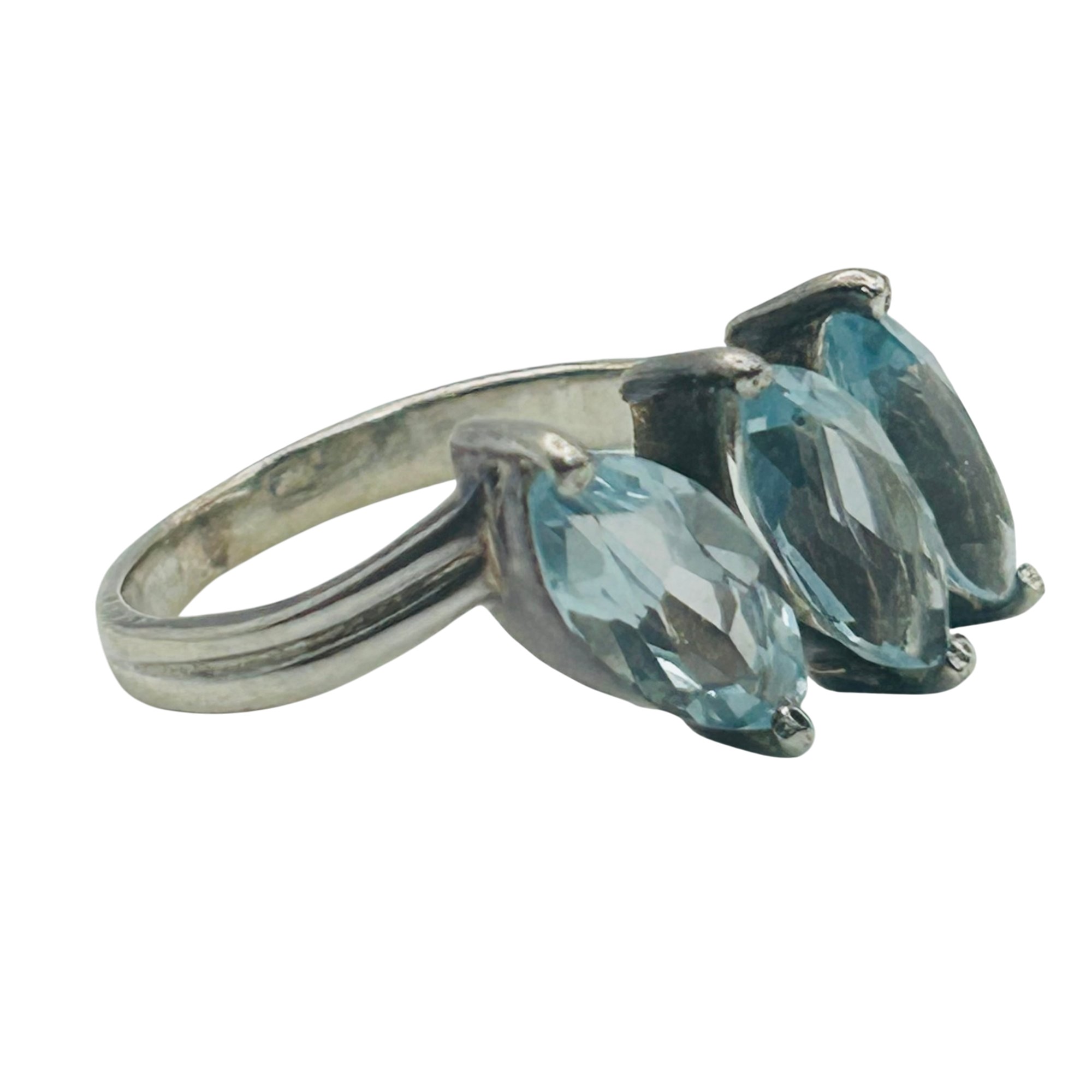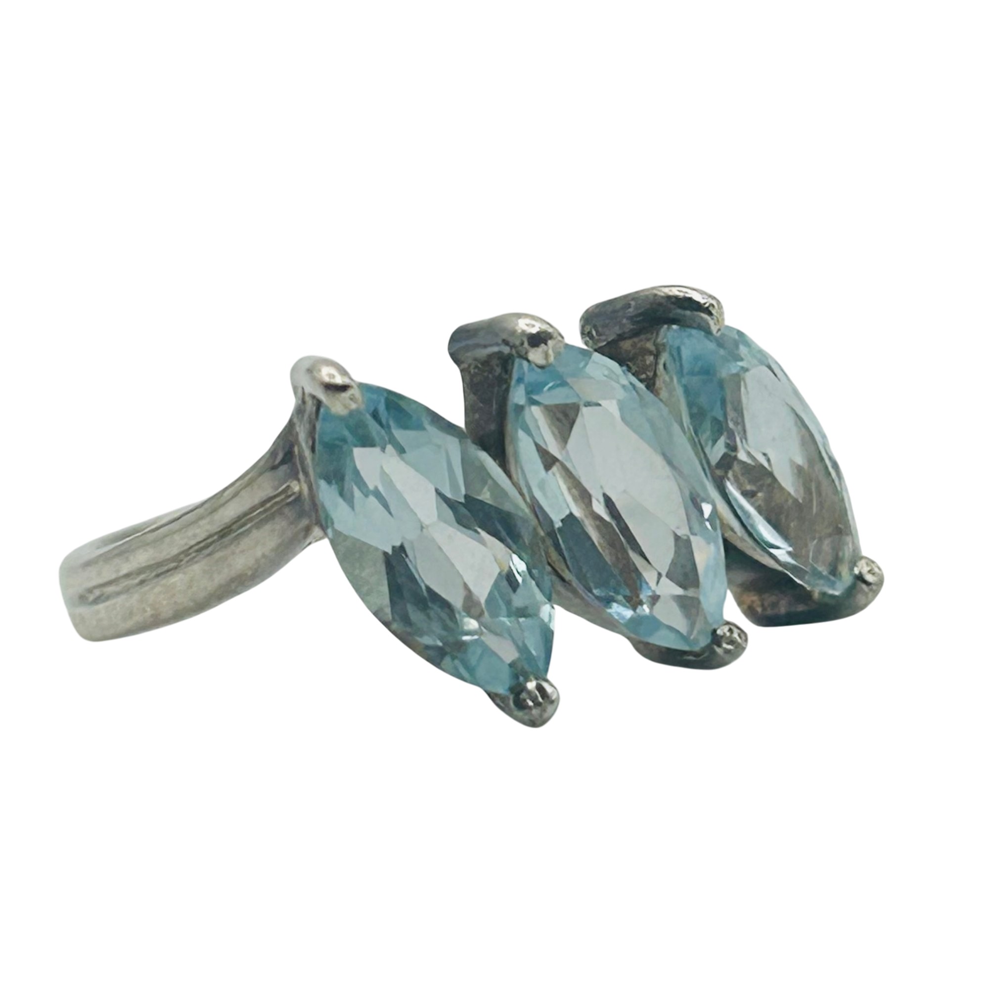 Sterling 3 marquise cut topaz ring. Size 8. 3.50g