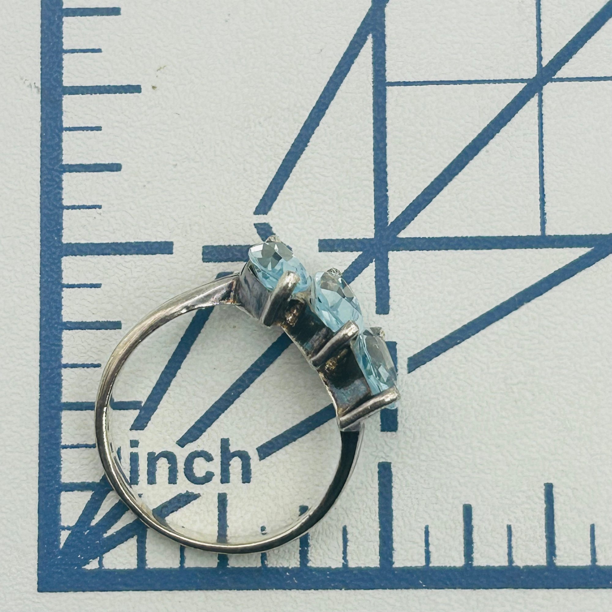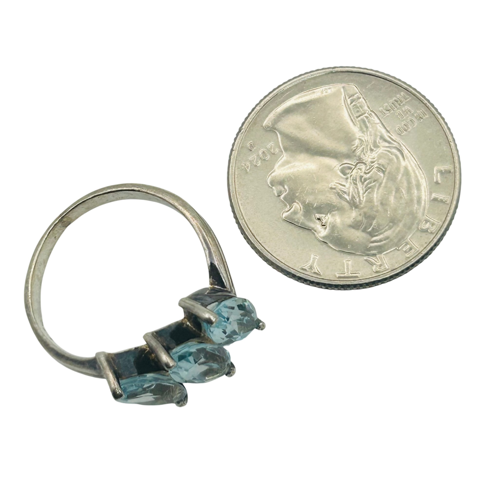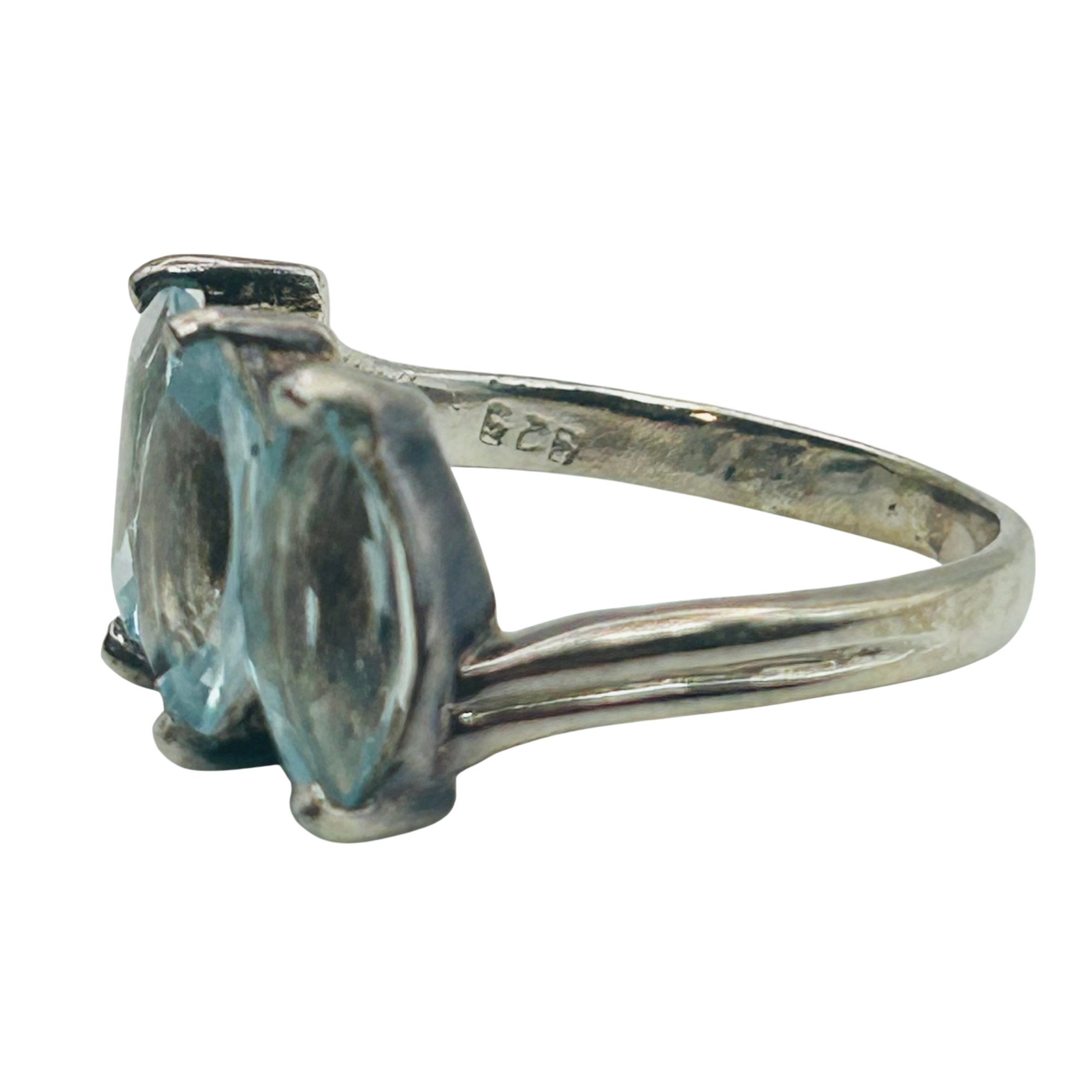 Sterling 3 marquise cut topaz ring. Size 8. 3.50g