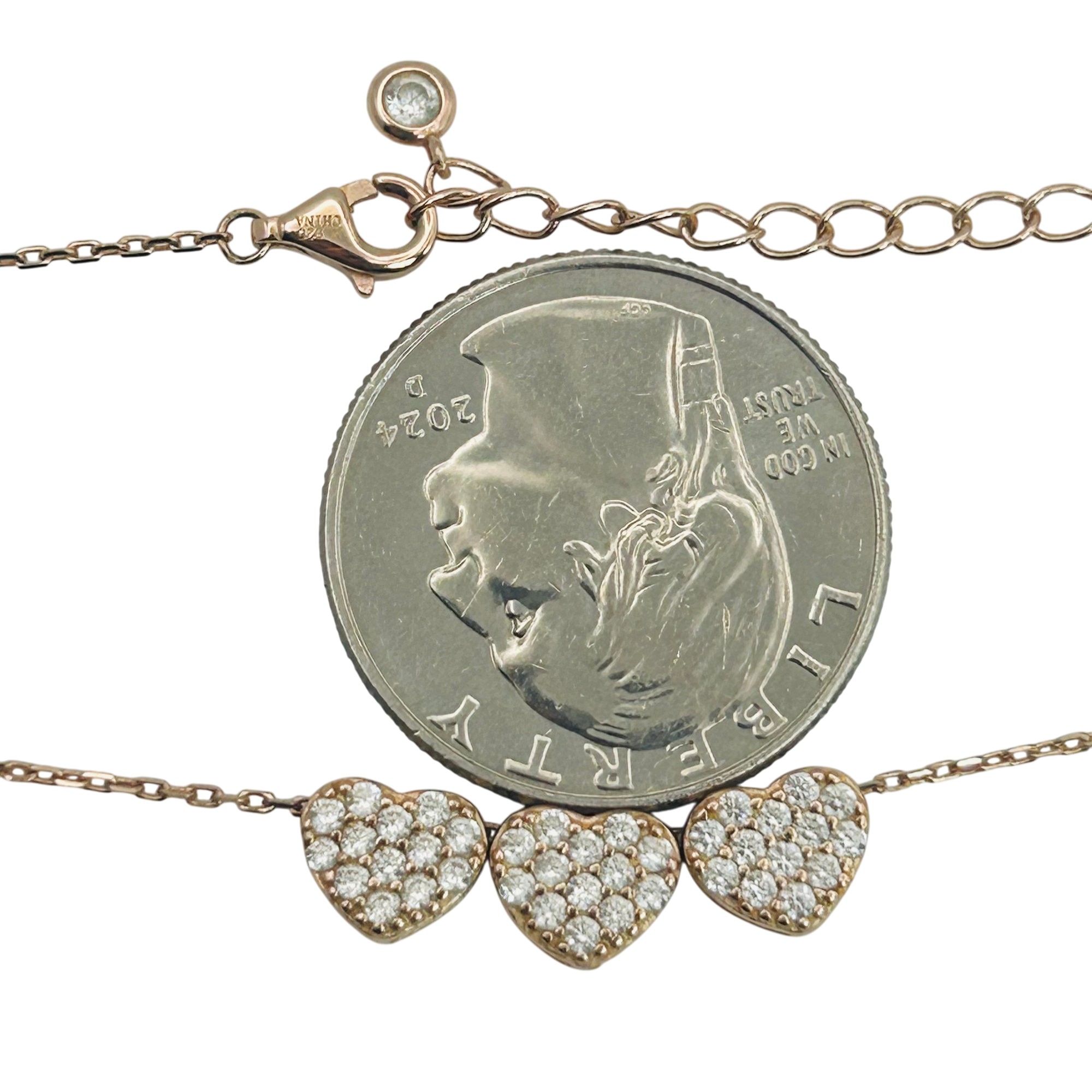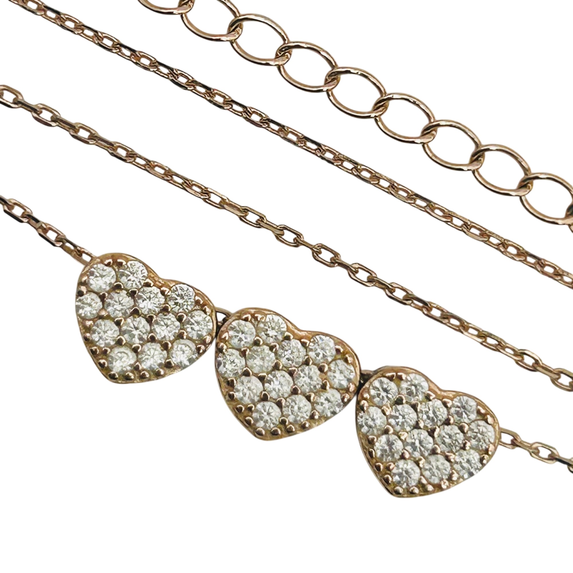 Sterling rhinestone heart cable chain necklace. 3.00g
