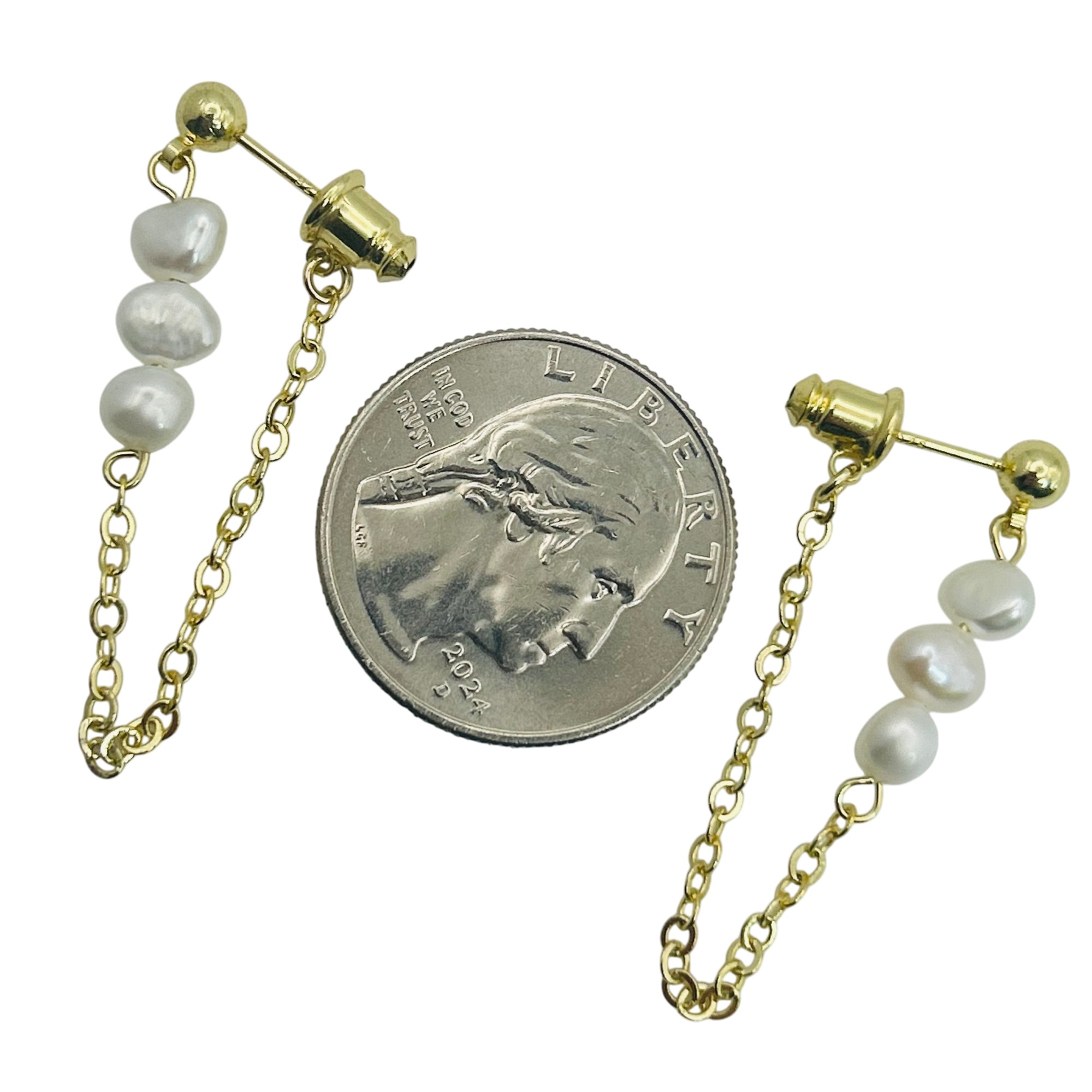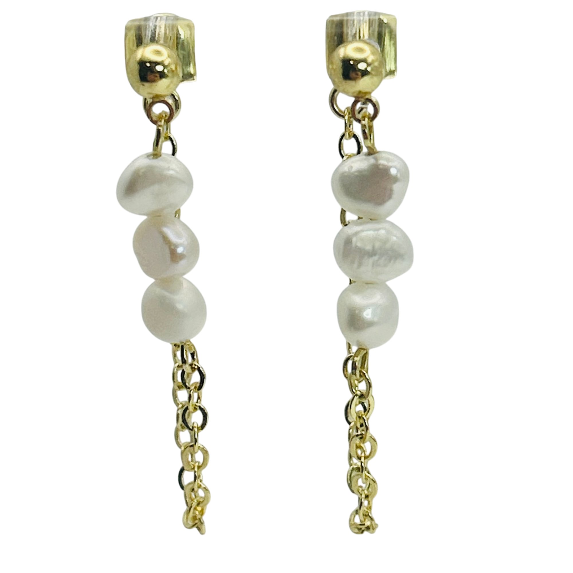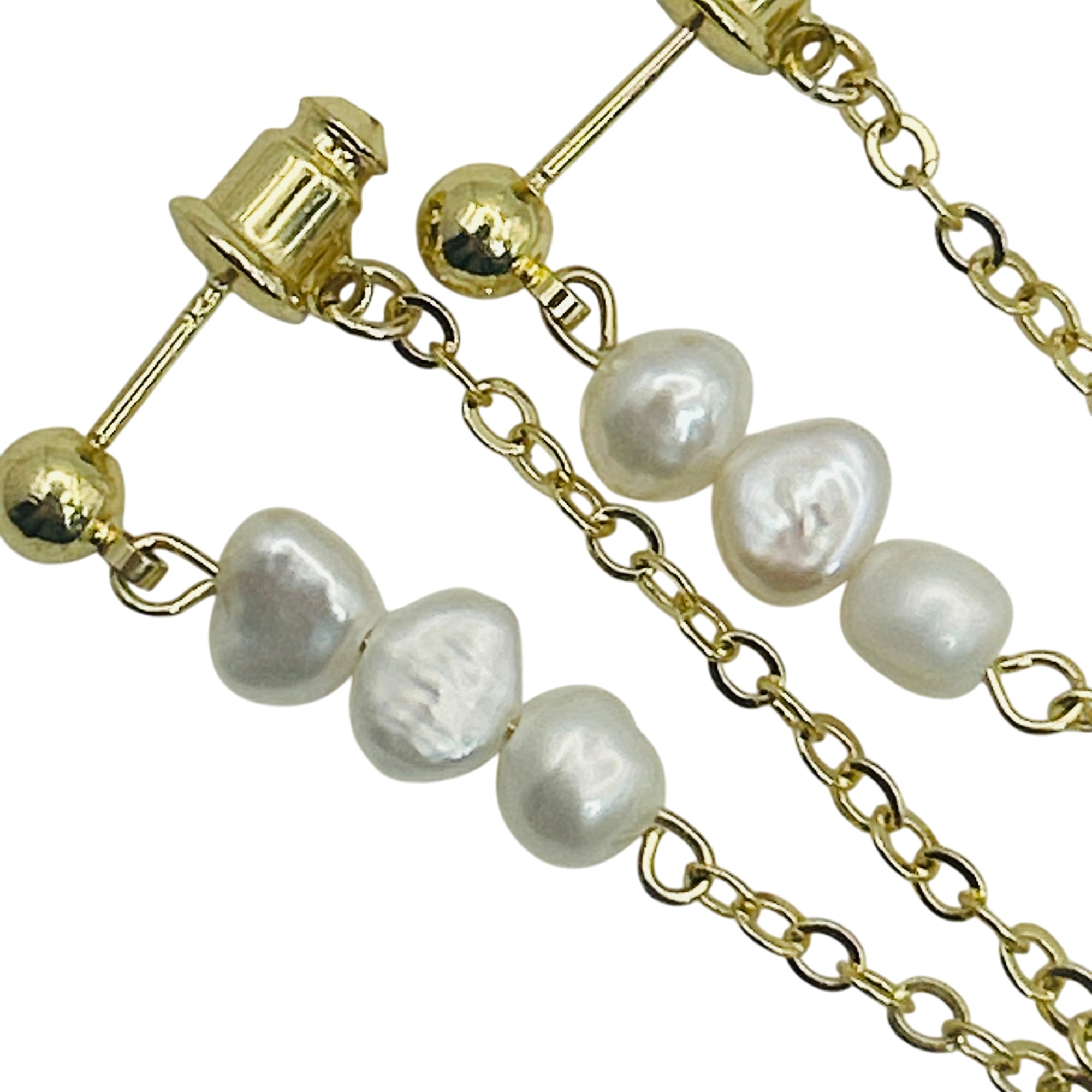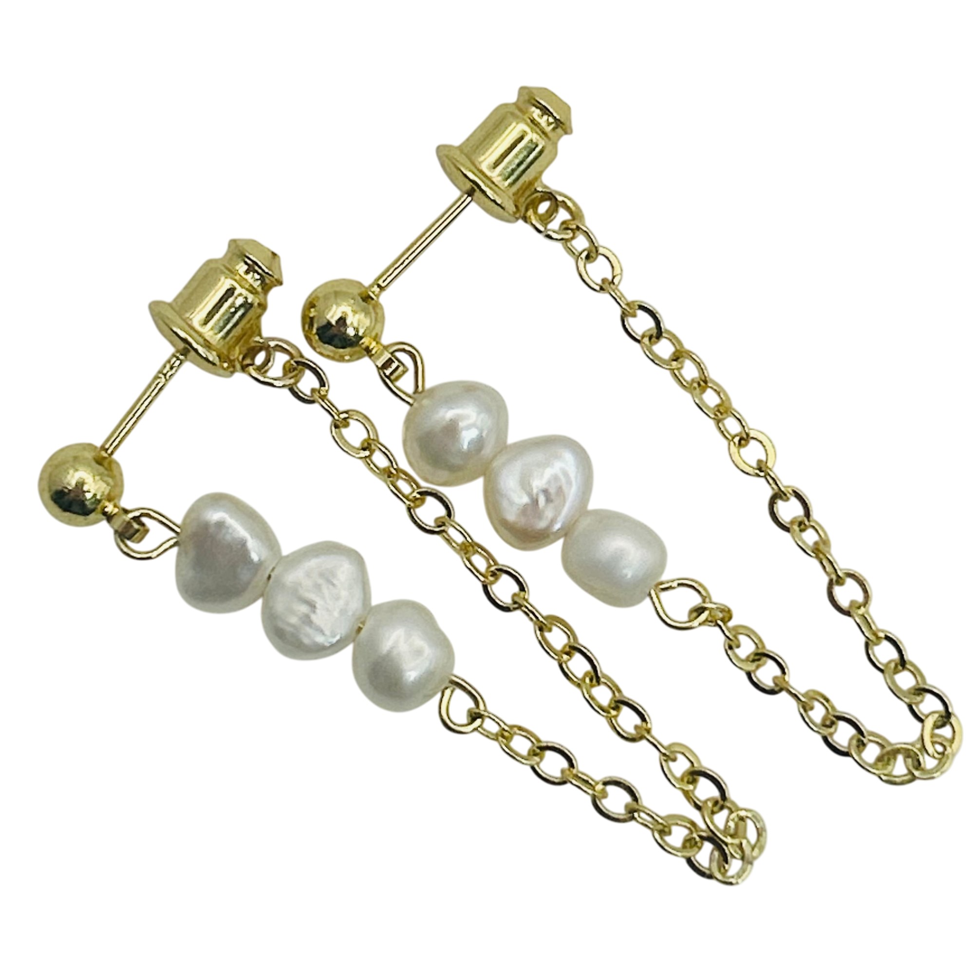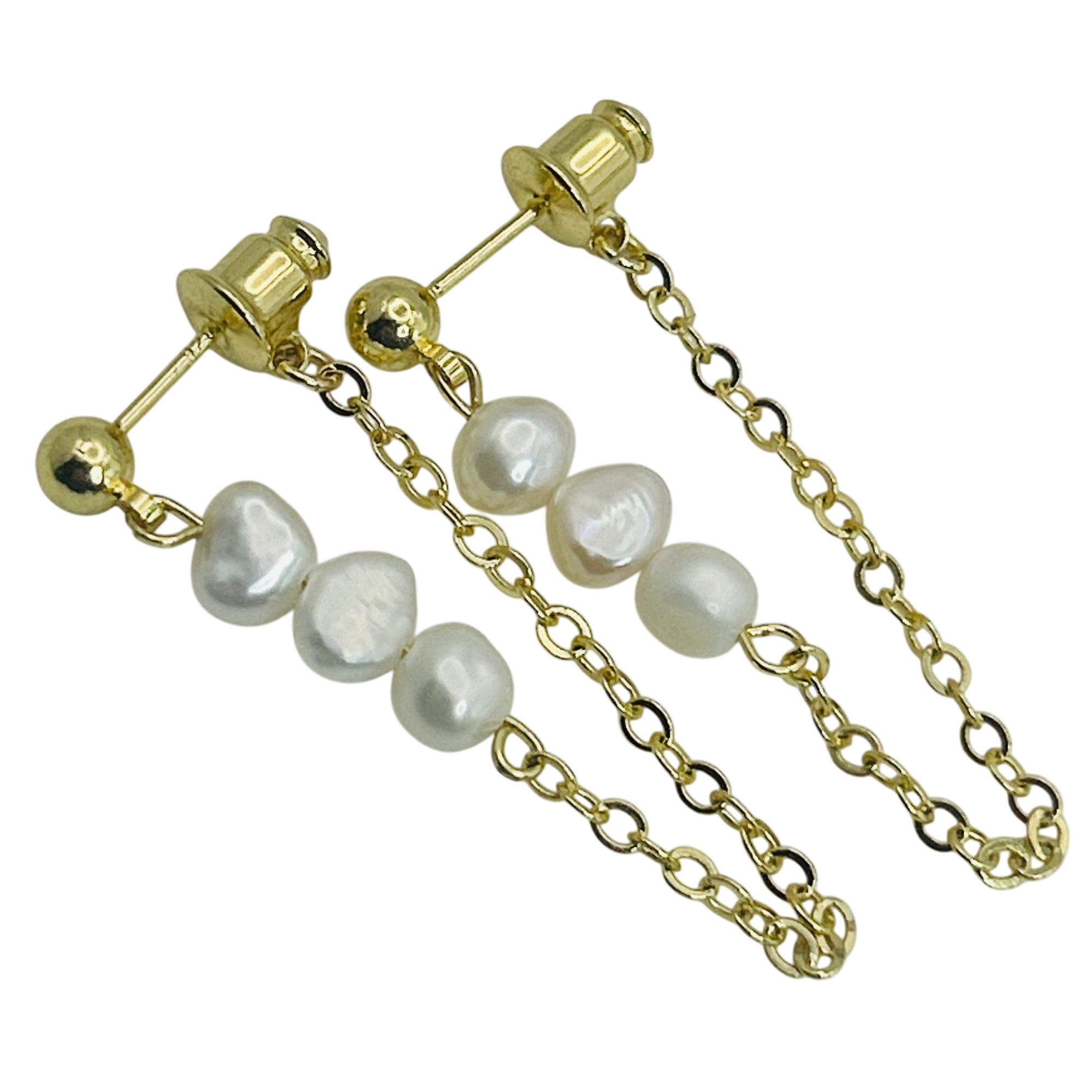 Sterling pearl cable chain stud earrings. 2.40g