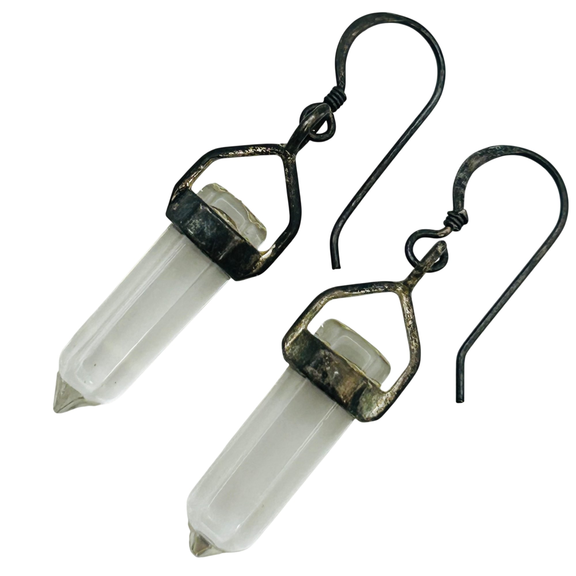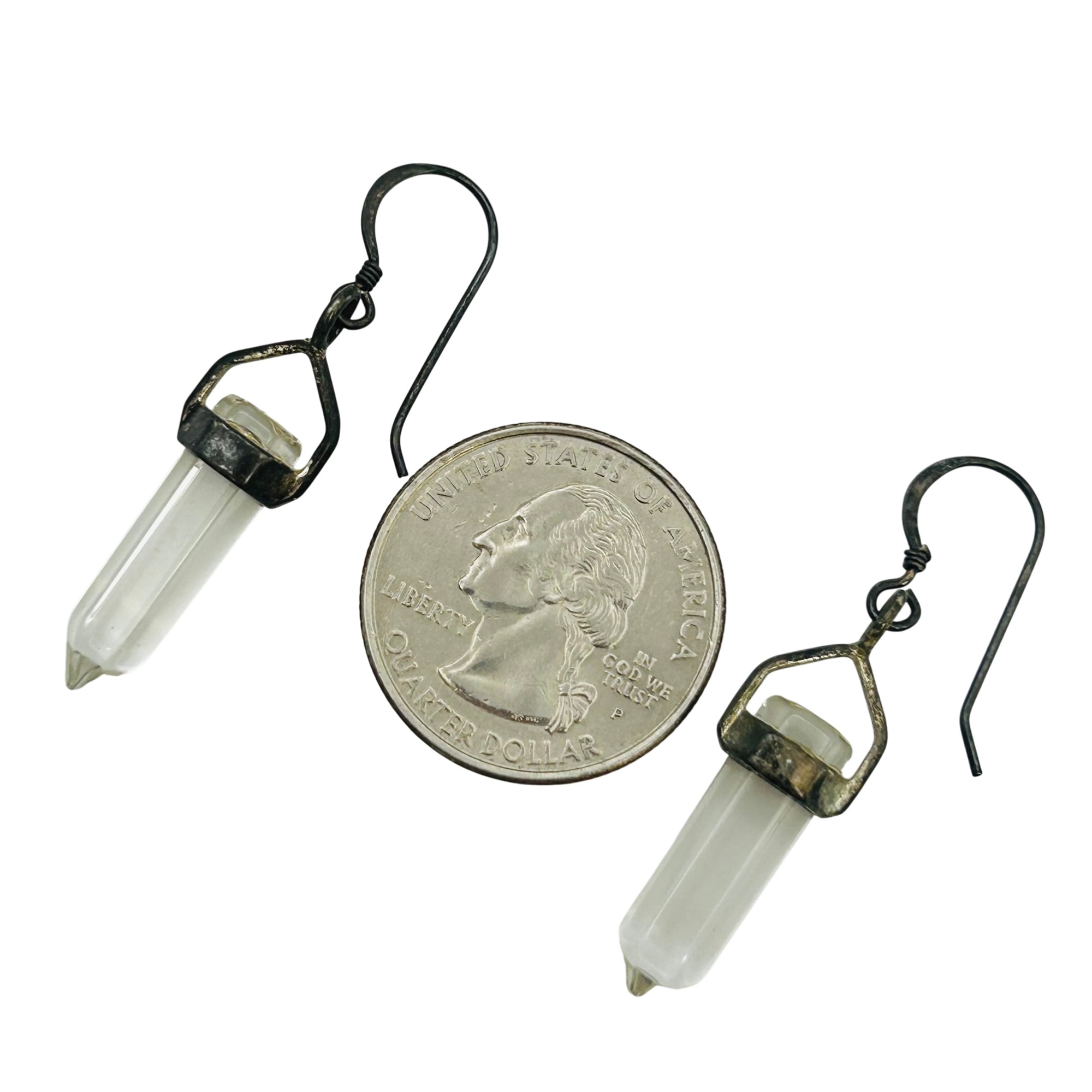 Sterling quartz hook back earrings. 4.80g