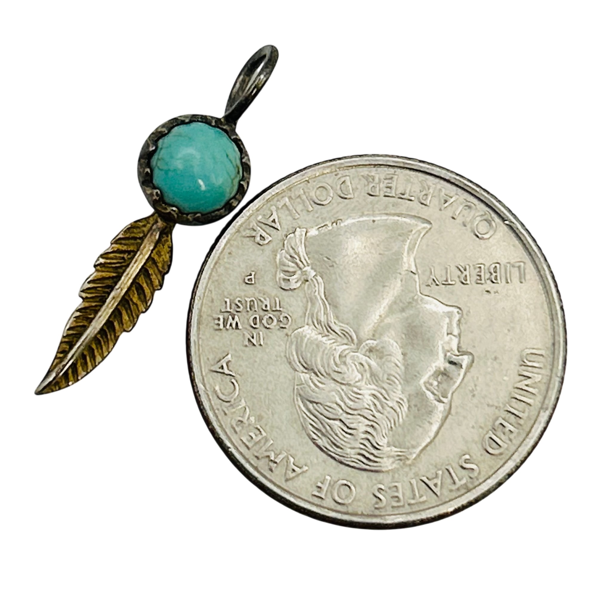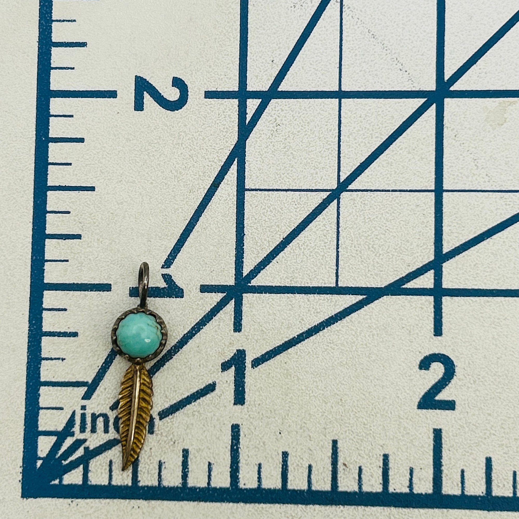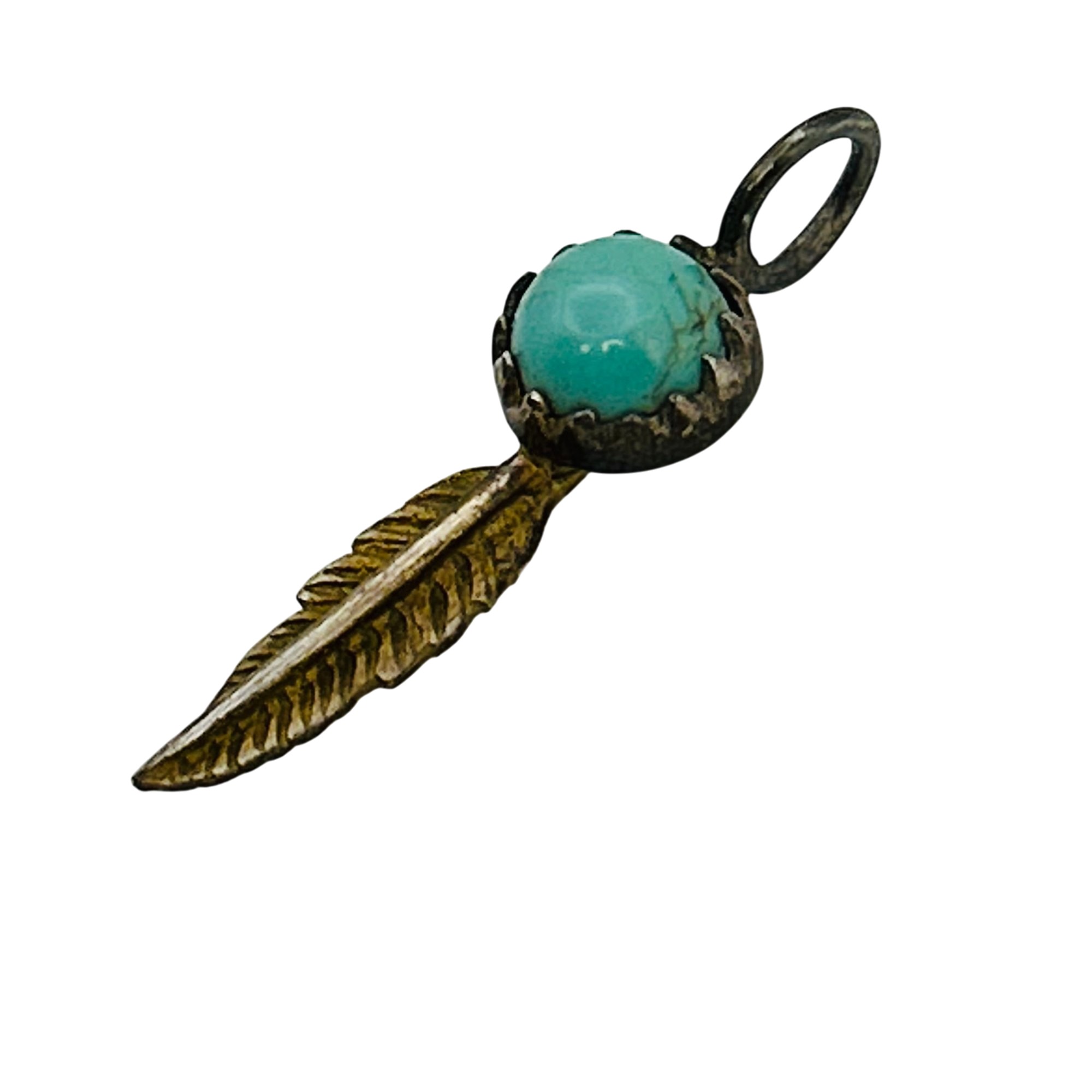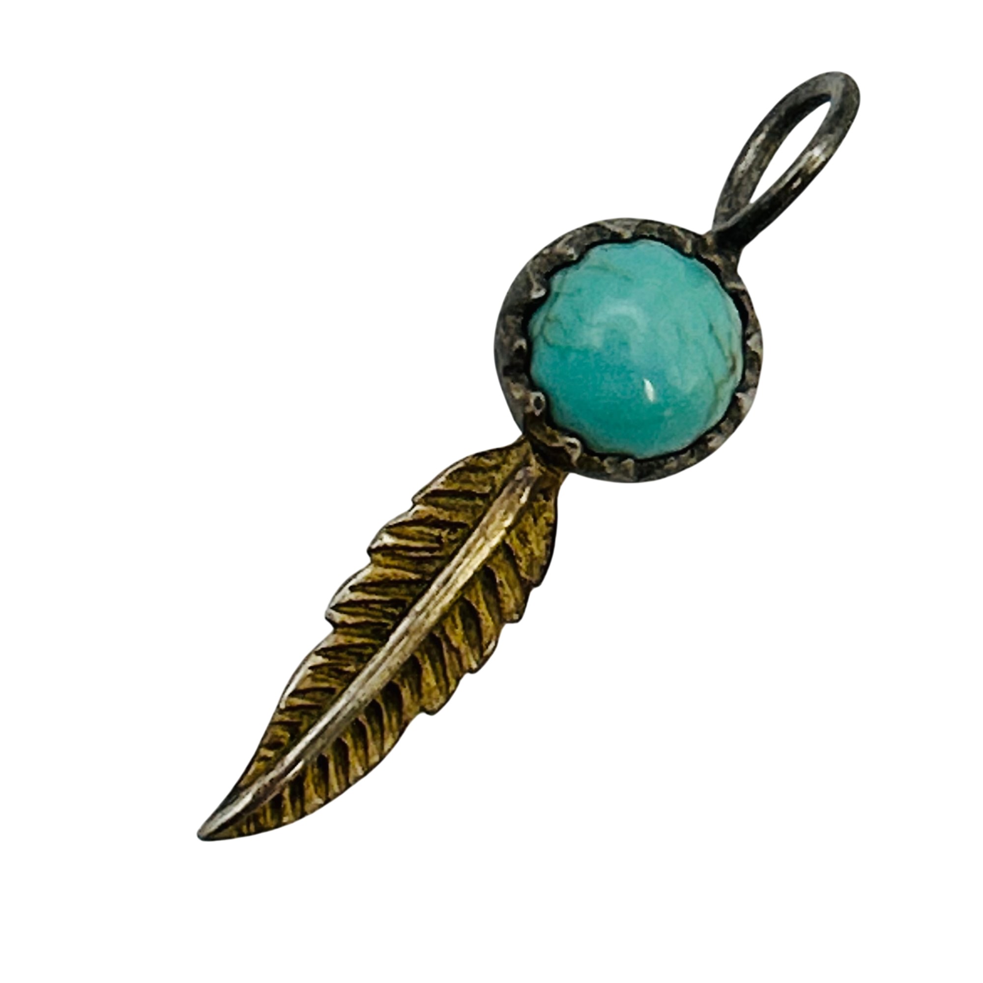 Sterling turquoise southwest feather pendant. 0.90g