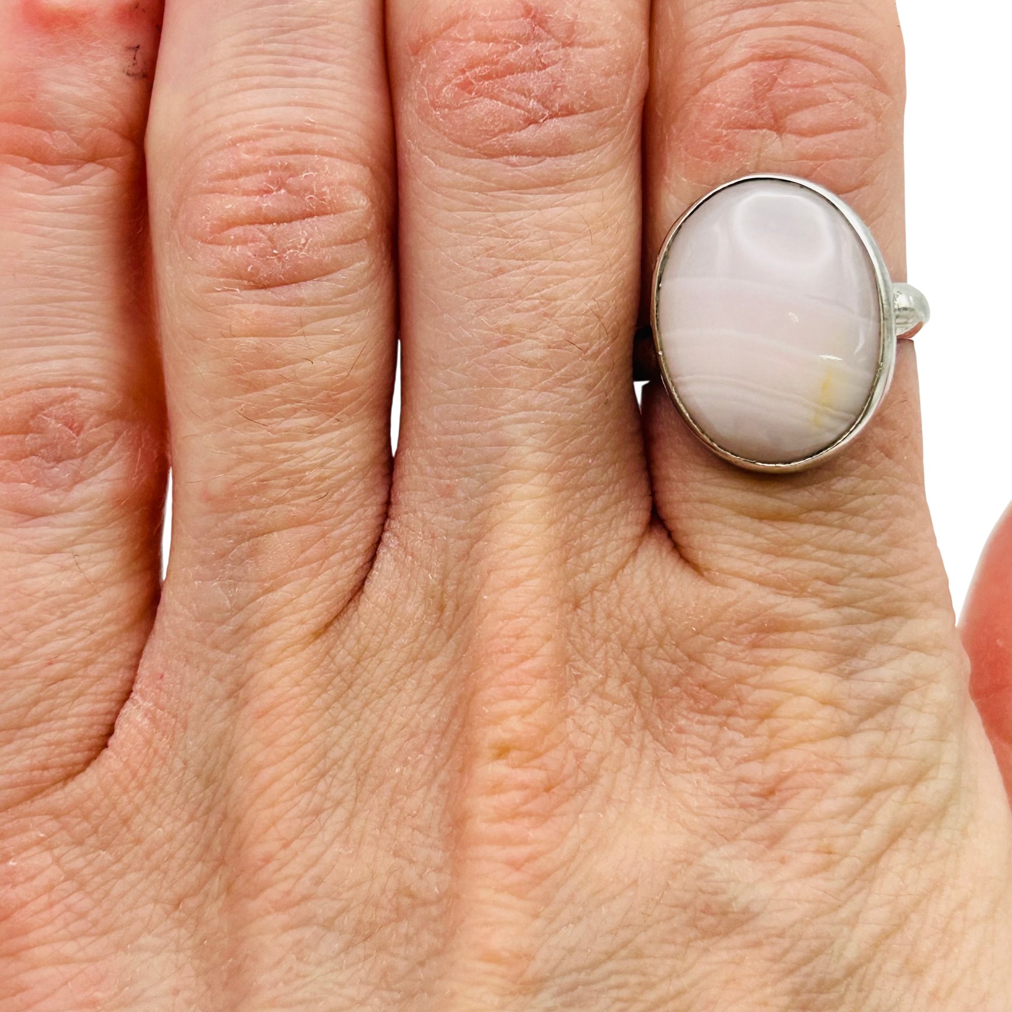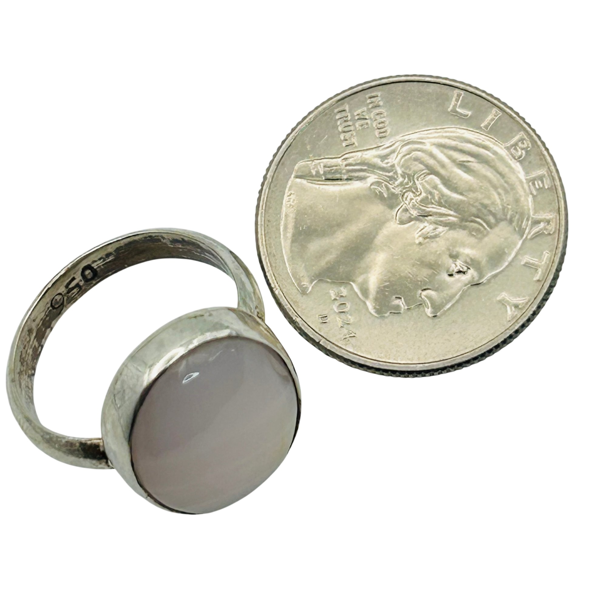 950 Silver Mother Of Pearl Oval Ring. Size 7